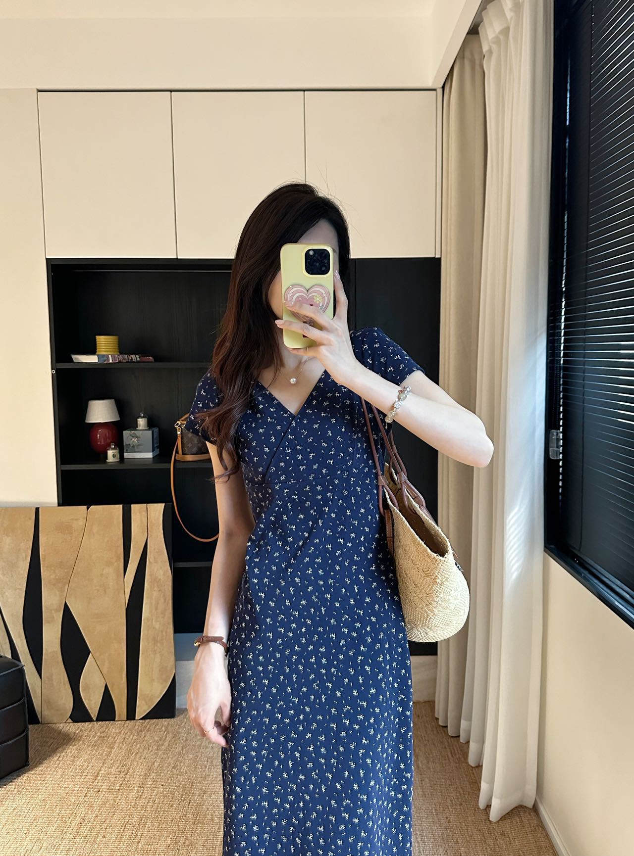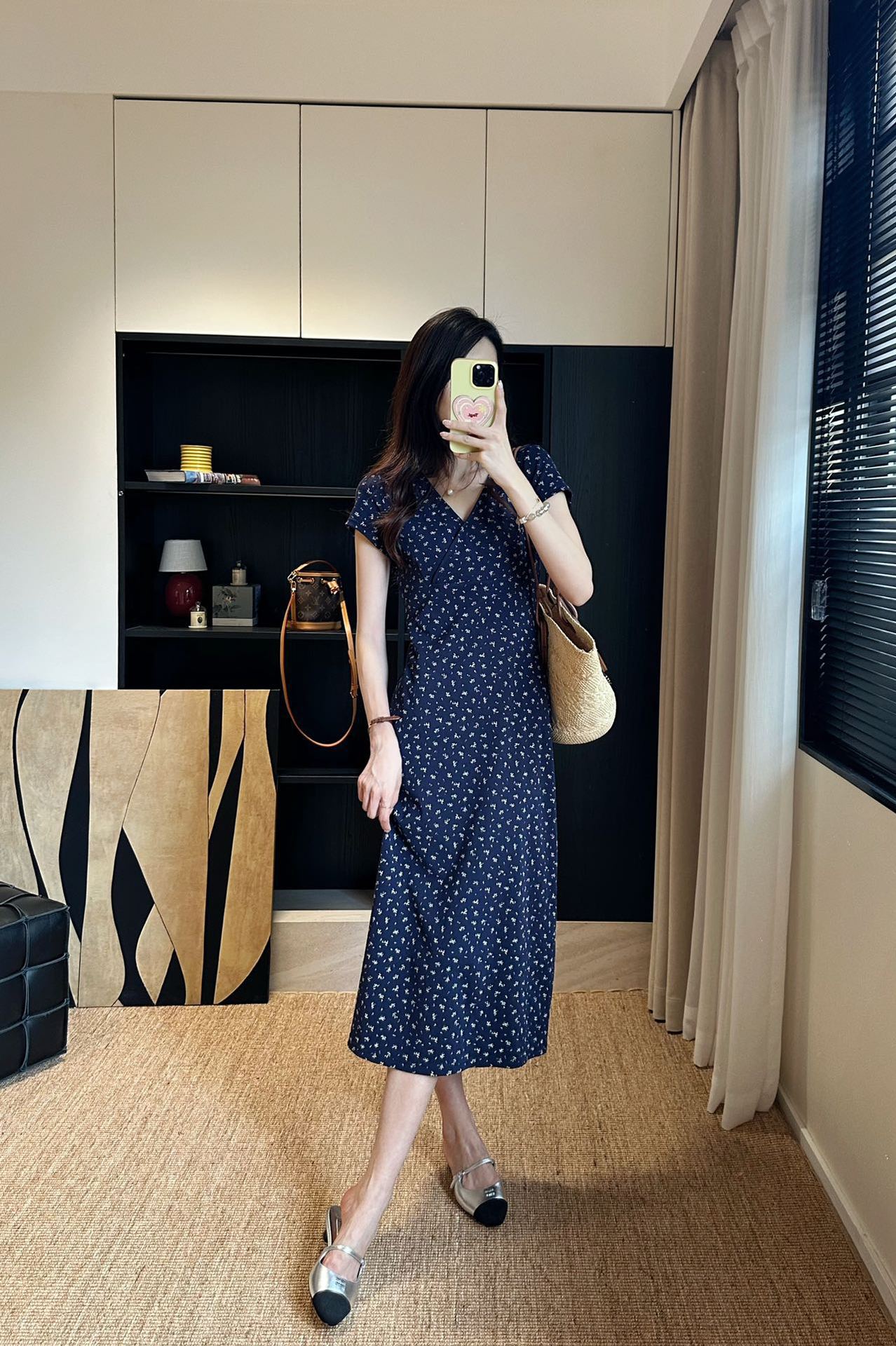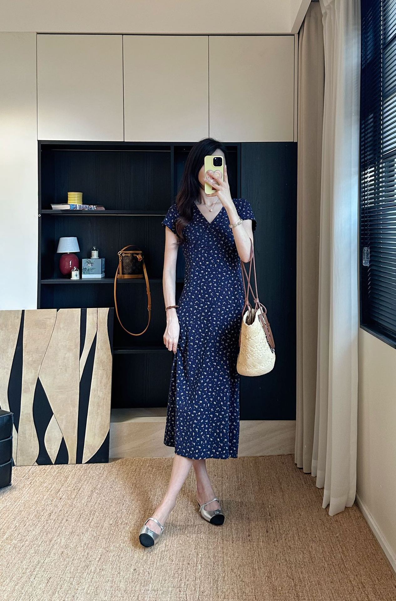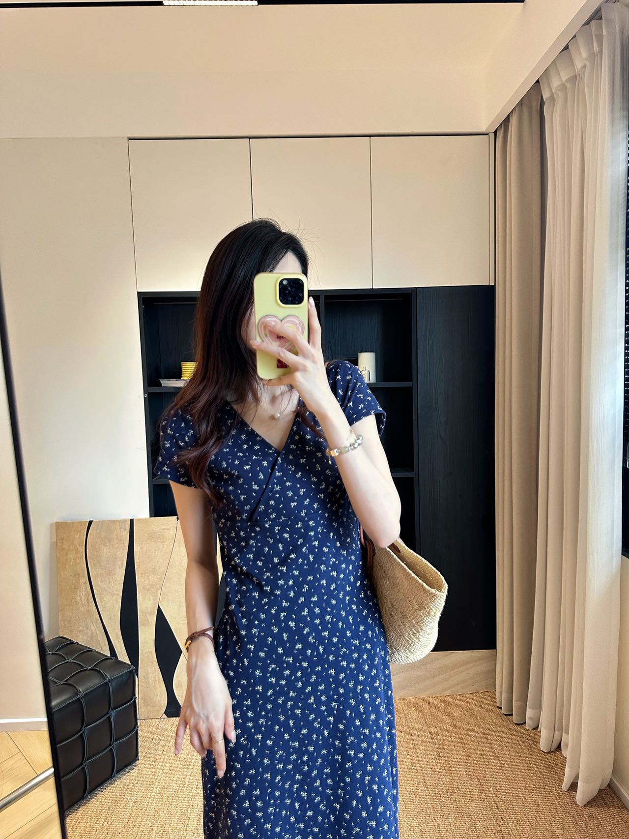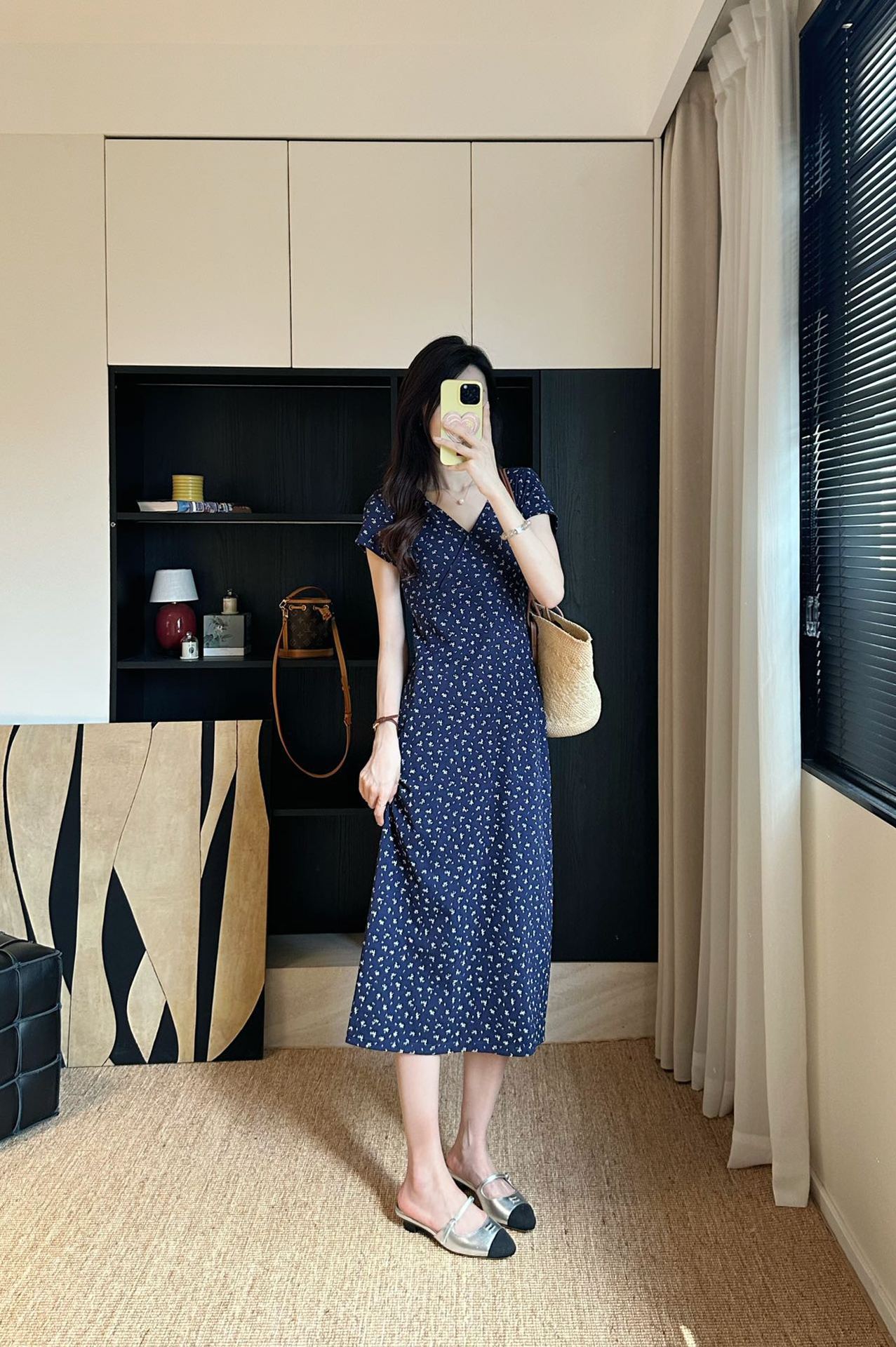裙身布满精致的碎花图案,仿佛将春日花园穿在身上