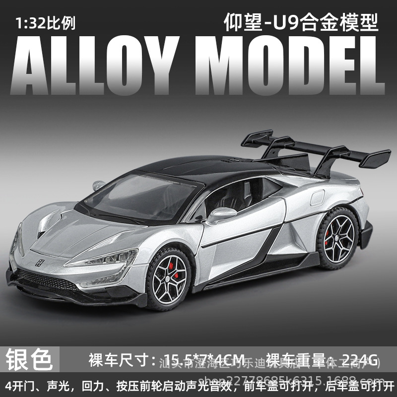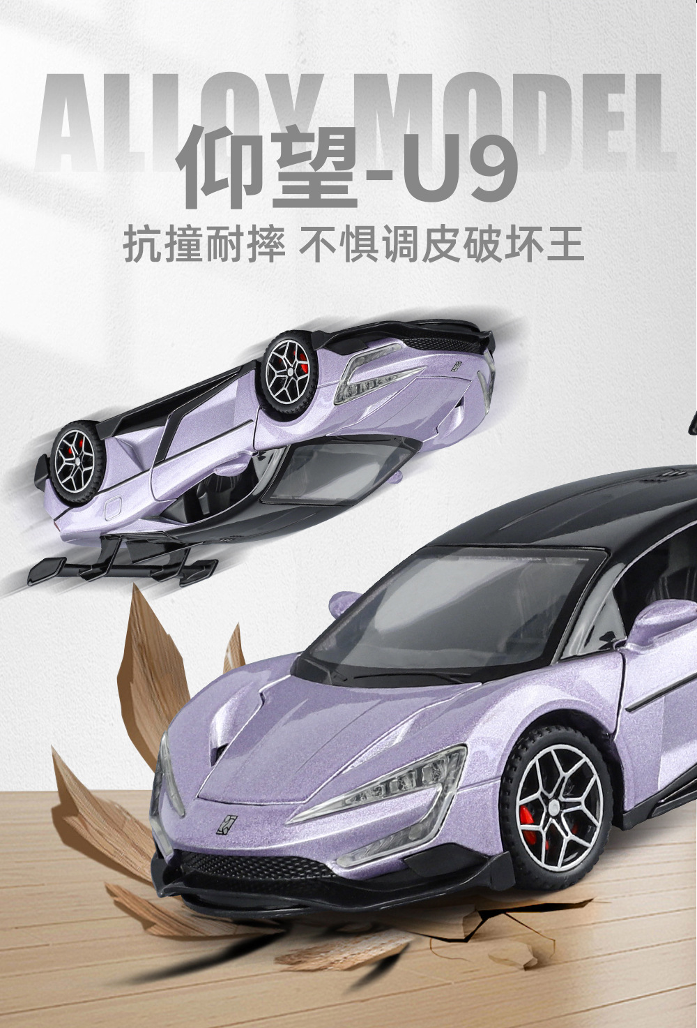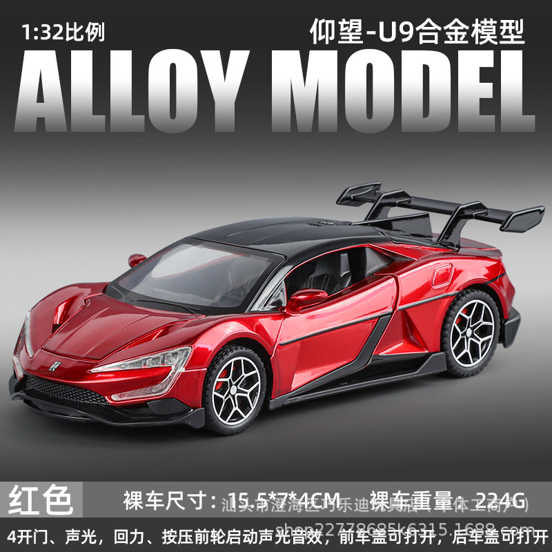 1:32 야우팡 U9 합금 자동차 스포츠카 모형, 후리어웨이 버터플라이 도어, 정교한 장식품, 소년 선물용, 레이싱카스토어 가기
