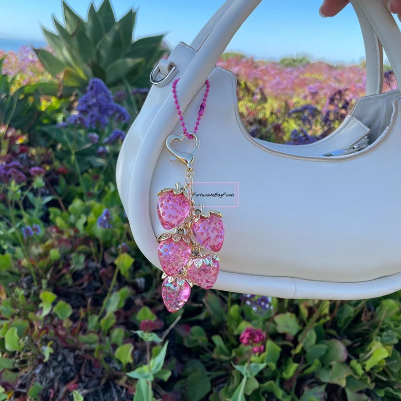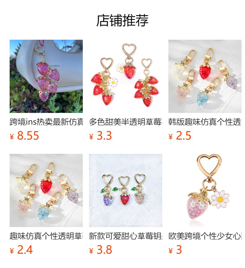 국경 간 ins 최신 시뮬레이션 딸기 키 체인 여성을위한 다채로운 수지 과일 쥬얼리 학생 학교 가방 펜던트스토어 가기