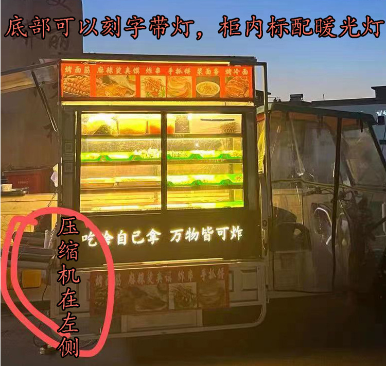 꼬치튀김 냉장 진열장, 꼬치튀김 푸드트럭 진열장, 삼륜차 냉장 진열장, 꼬치튀김 진열장, 매점용품