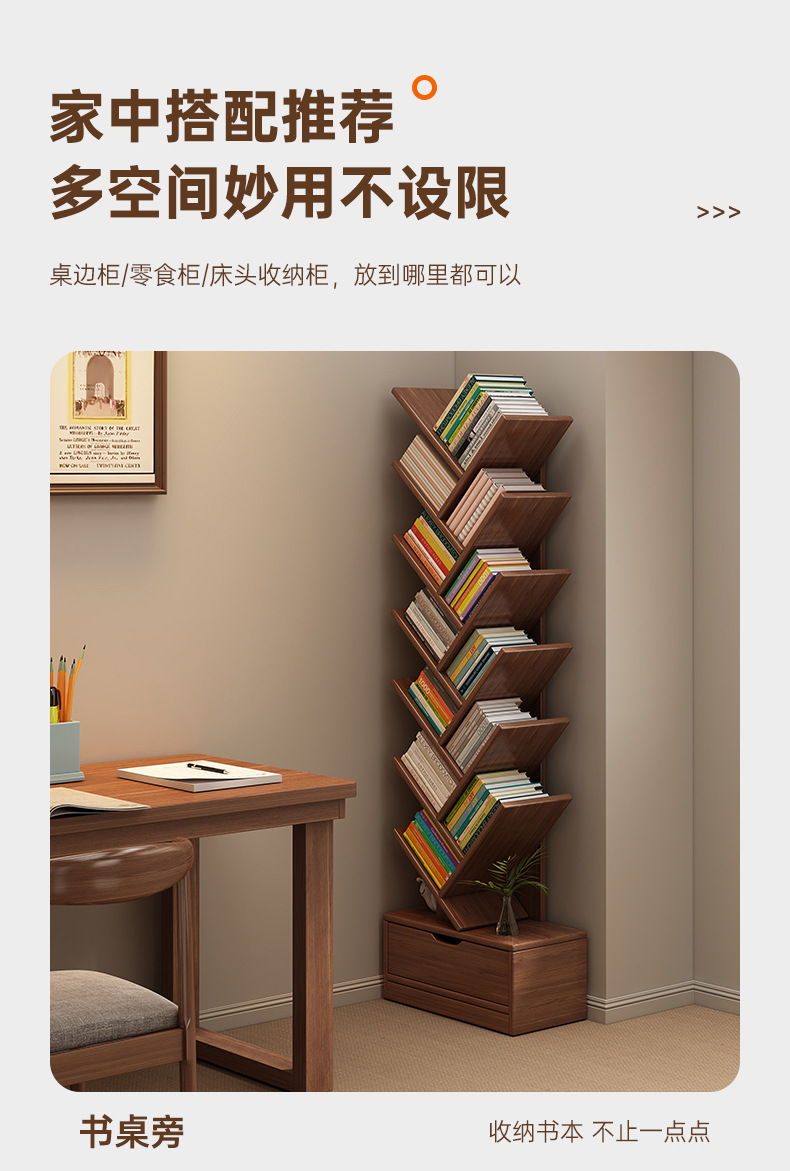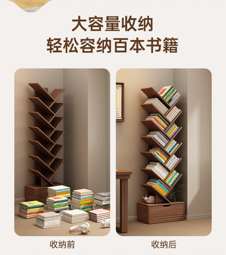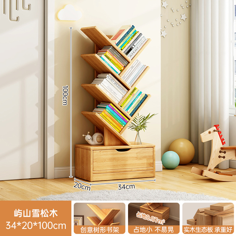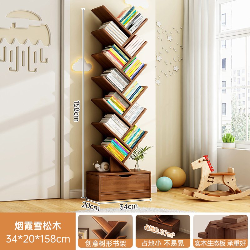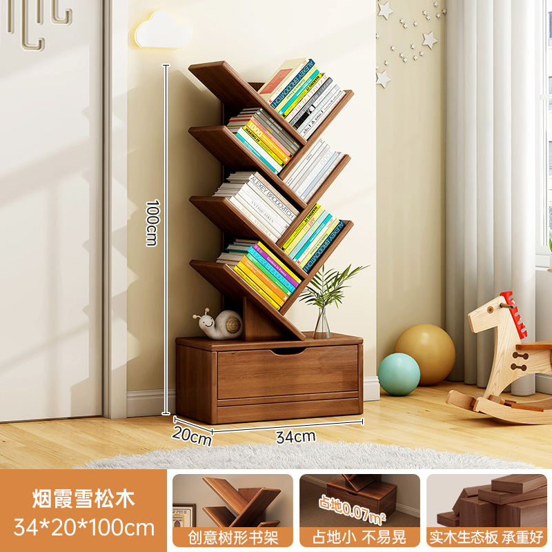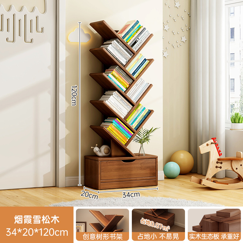 단단한 나무 책장 창조적 인 나무 모양의 바닥 보관 랙 가정용 거실 보관 랙 벽 코너 책장 어린이 보관 캐비닛