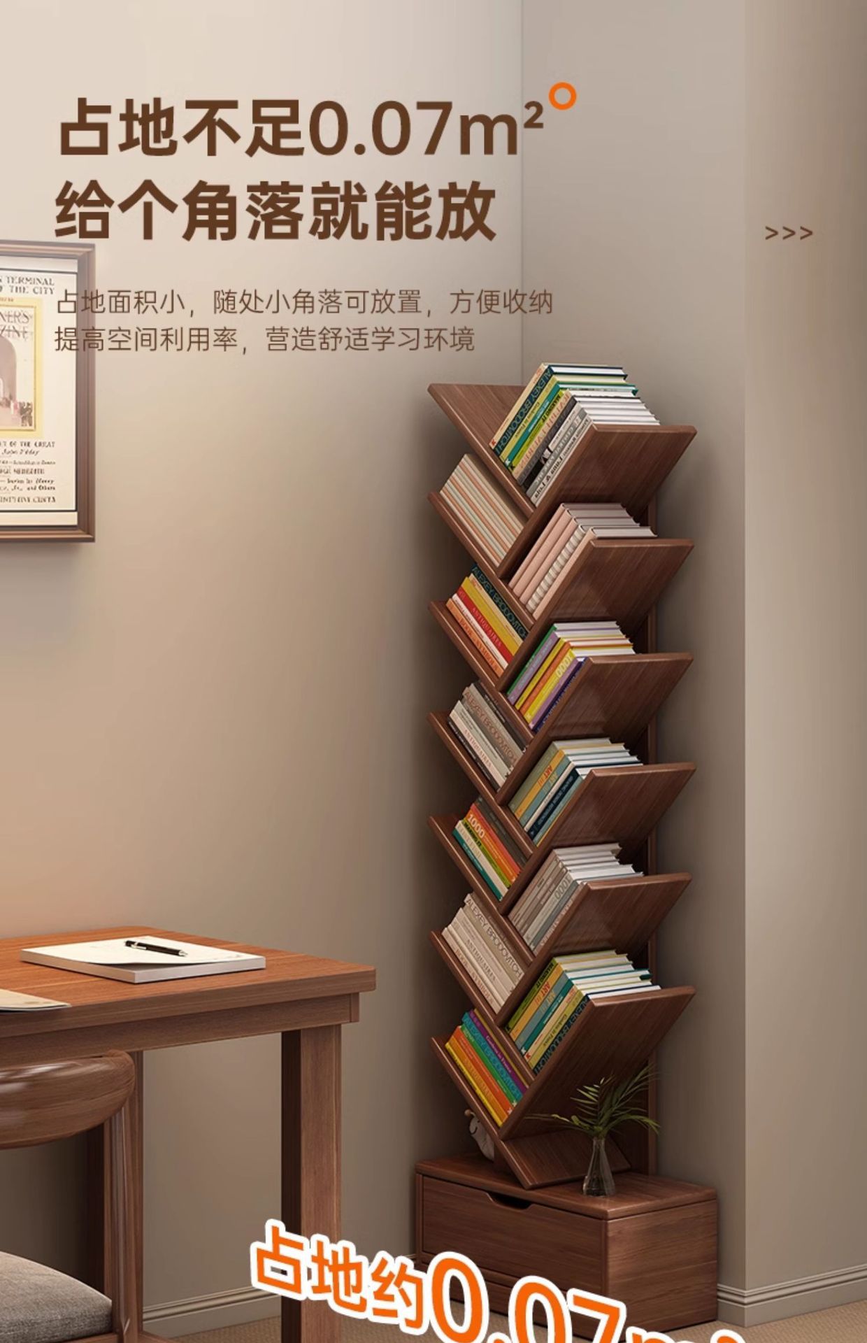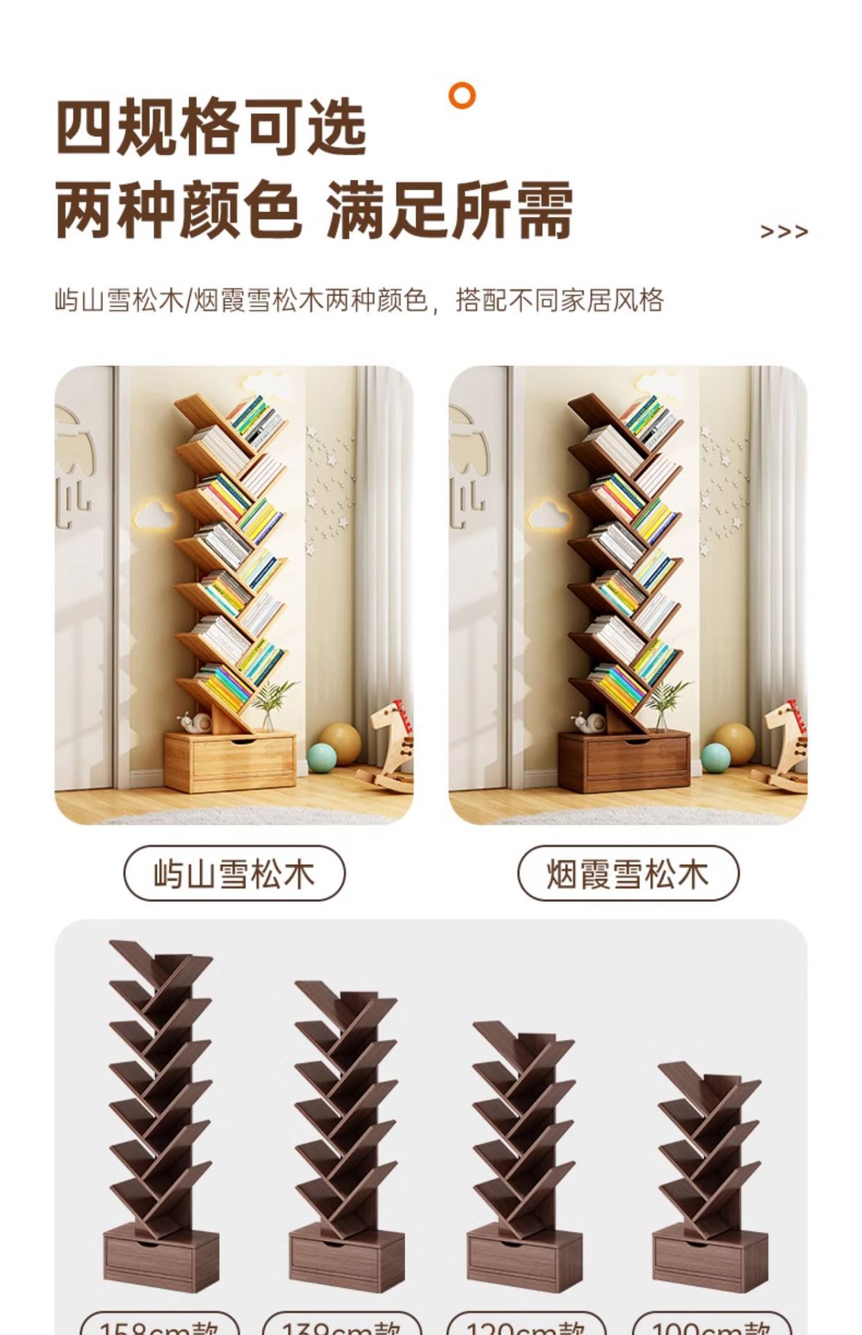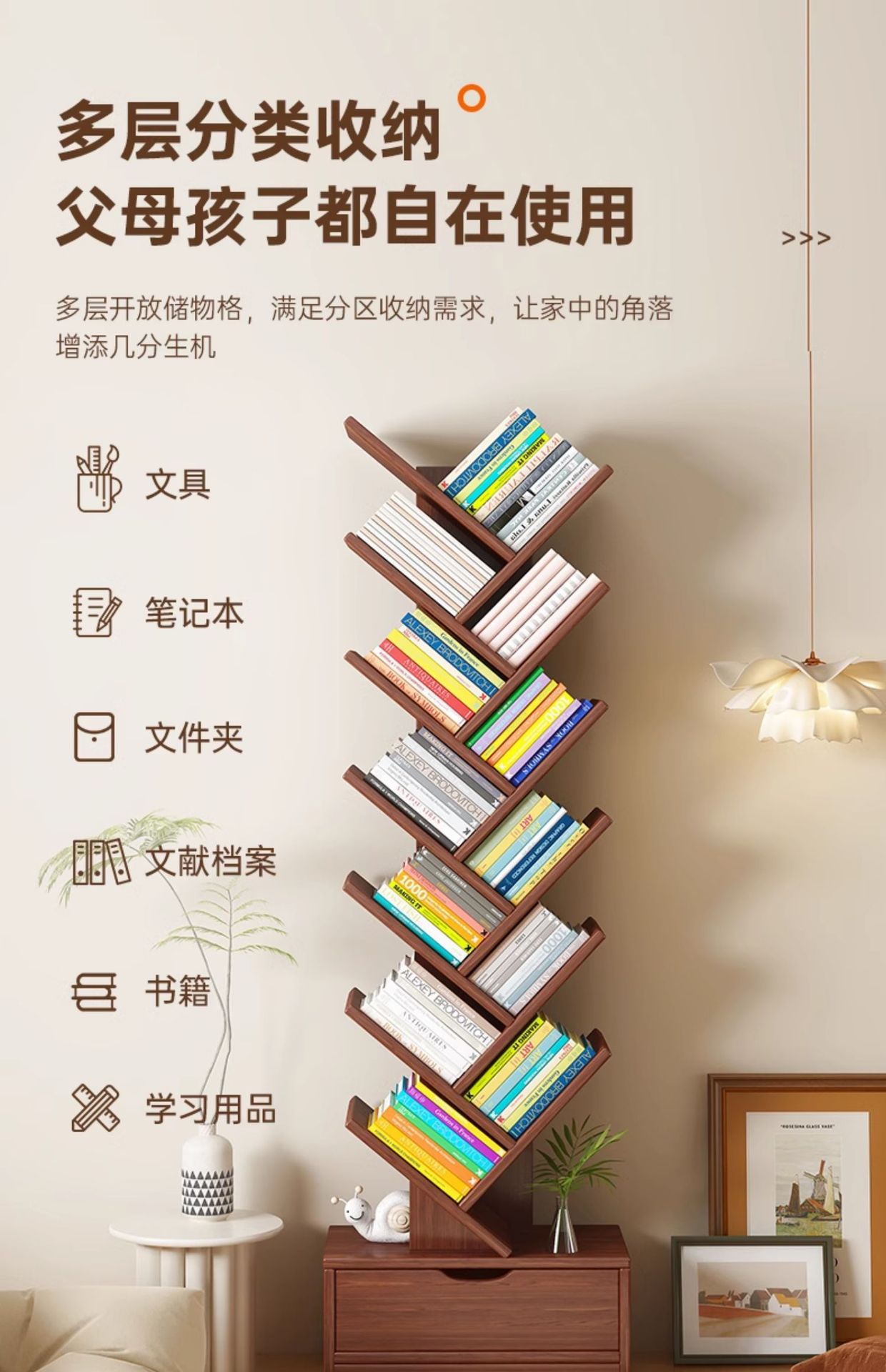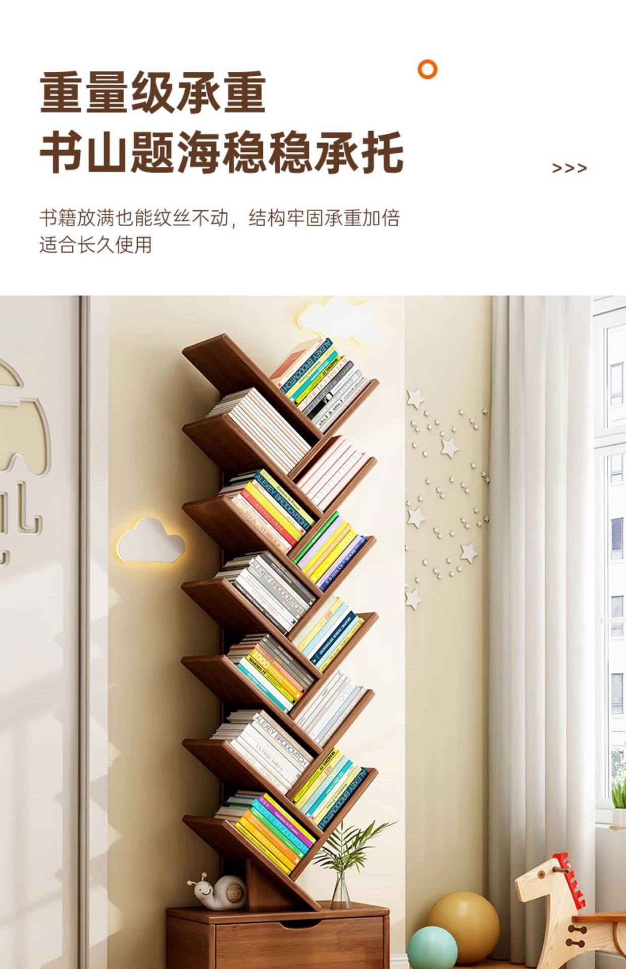 단단한 나무 책장 창조적 인 나무 모양의 바닥 보관 랙 가정용 거실 보관 랙 벽 코너 책장 어린이 보관 캐비닛