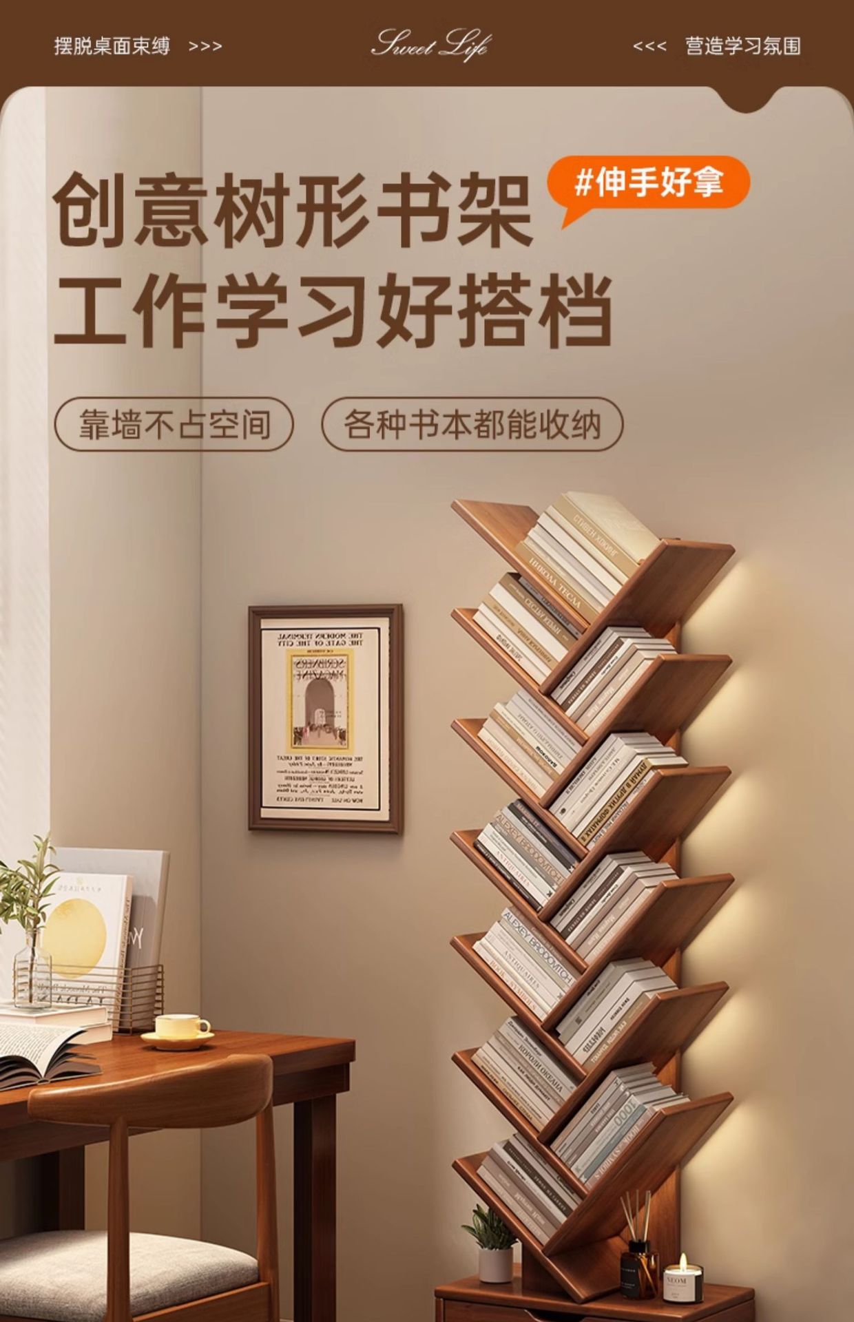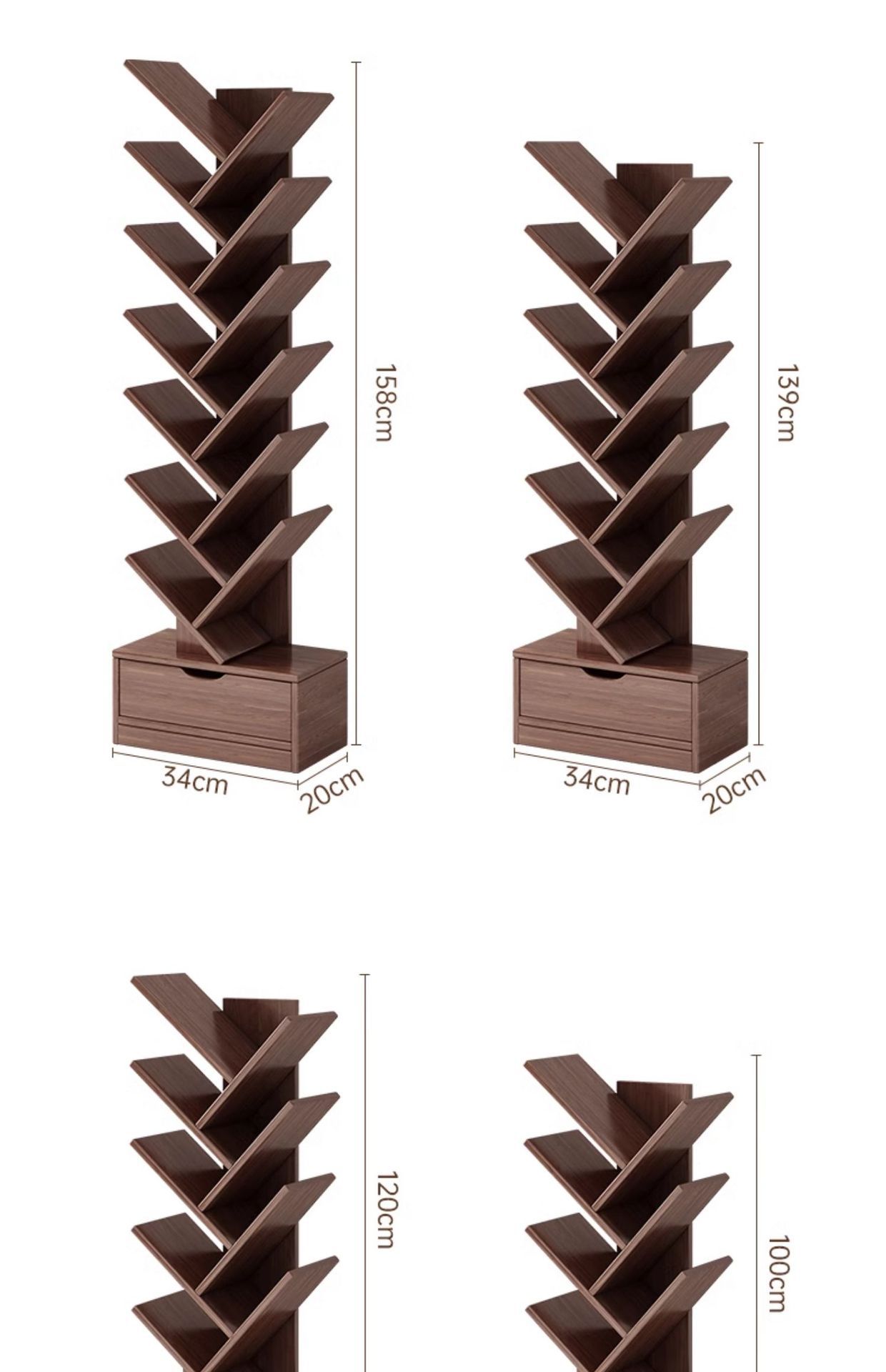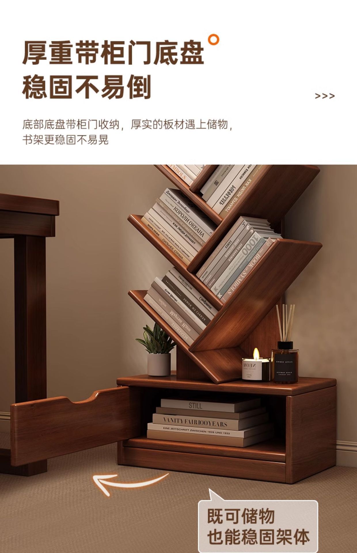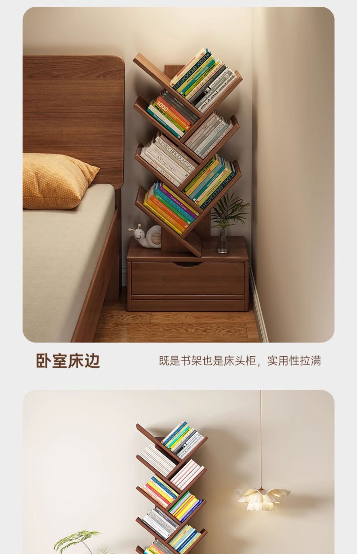 단단한 나무 책장 창조적 인 나무 모양의 바닥 보관 랙 가정용 거실 보관 랙 벽 코너 책장 어린이 보관 캐비닛