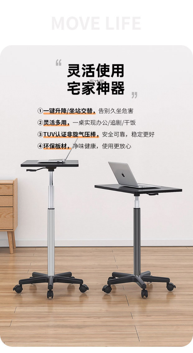 2025 새로운 금속 소재 리프팅 이동식 풀리 스탠딩 오피스 책상 노트북 책상스토어 가기