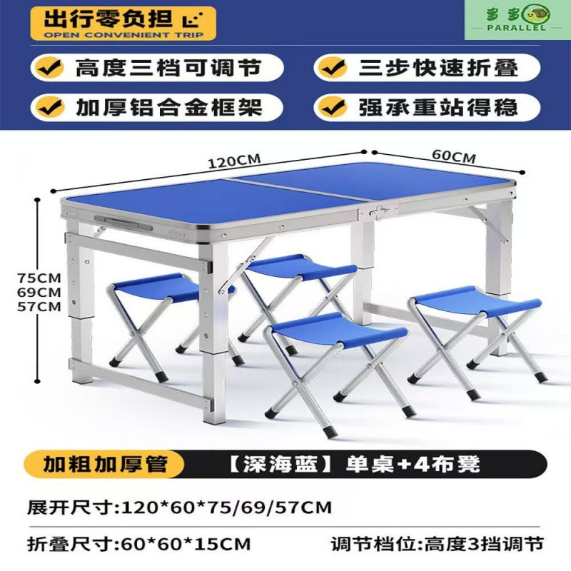 야외 매점, 푸시 테이블, 야시장, 가정용으로 사용하기 위한 휴대용 간단한 접이식 테이블을 위한 알루미늄 합금 접이식 식탁 및 의자스토어 가기