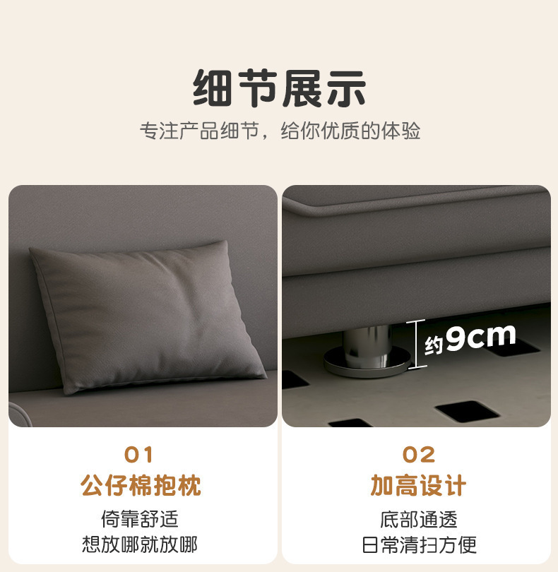 • 다크 그레이 [고양이 발 천 스펀지 스타일] 1.8m * 1m (무료 팔걸이 2개 + 허리 베개 2개)