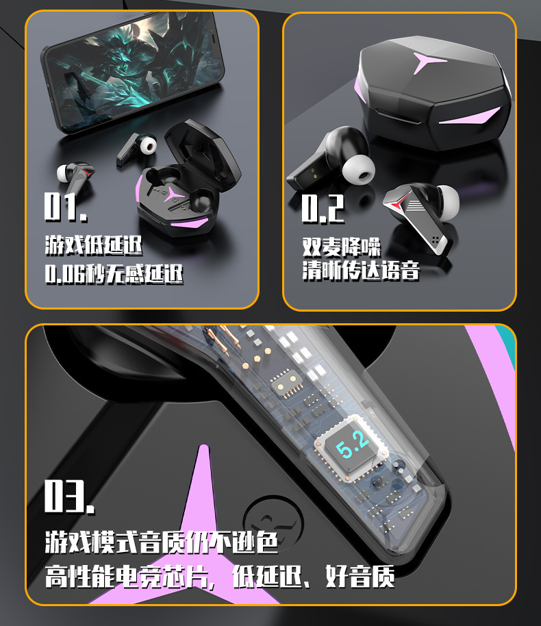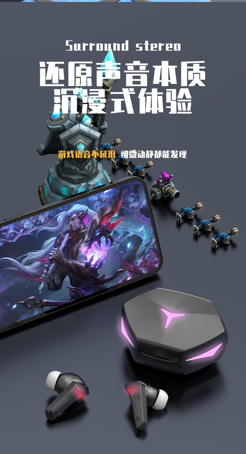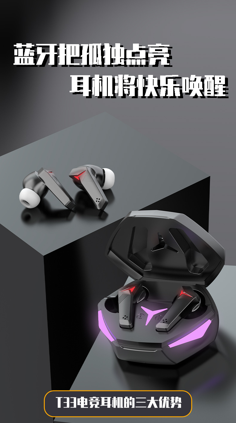 T33 블루투스 헤드셋 국경 간 새로운 개인 모델 기계 TWS 이어폰 형 낮은 대기 시간 e-스포츠 게임 멋진 공장 재고스토어 가기
