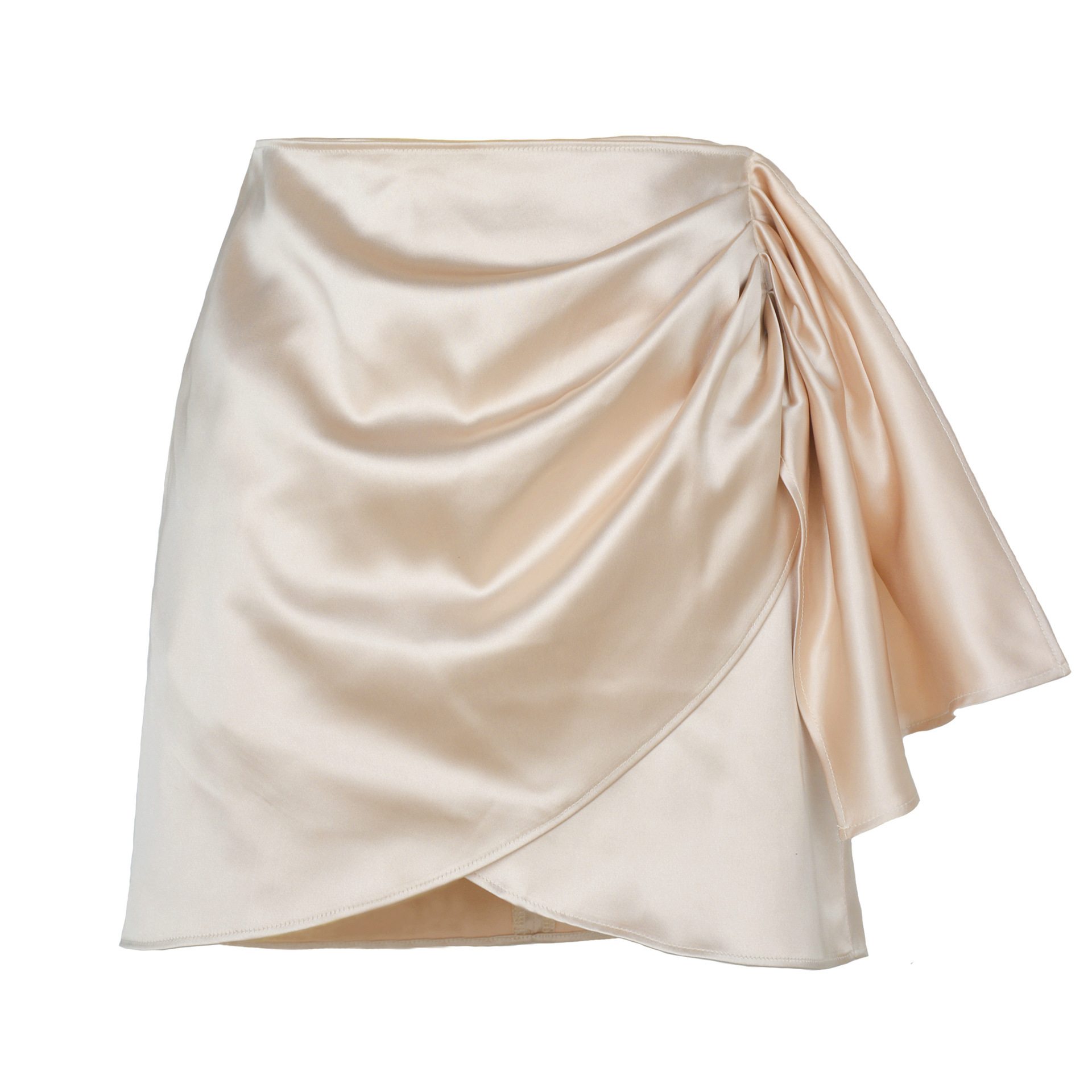 2025 여름 크로스 클래스 디자인 연회 새틴 미니 솔리드 컬러 유럽과 미국 패션 여성 스커트 섹시한 짧은 스커트