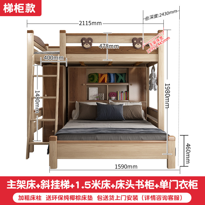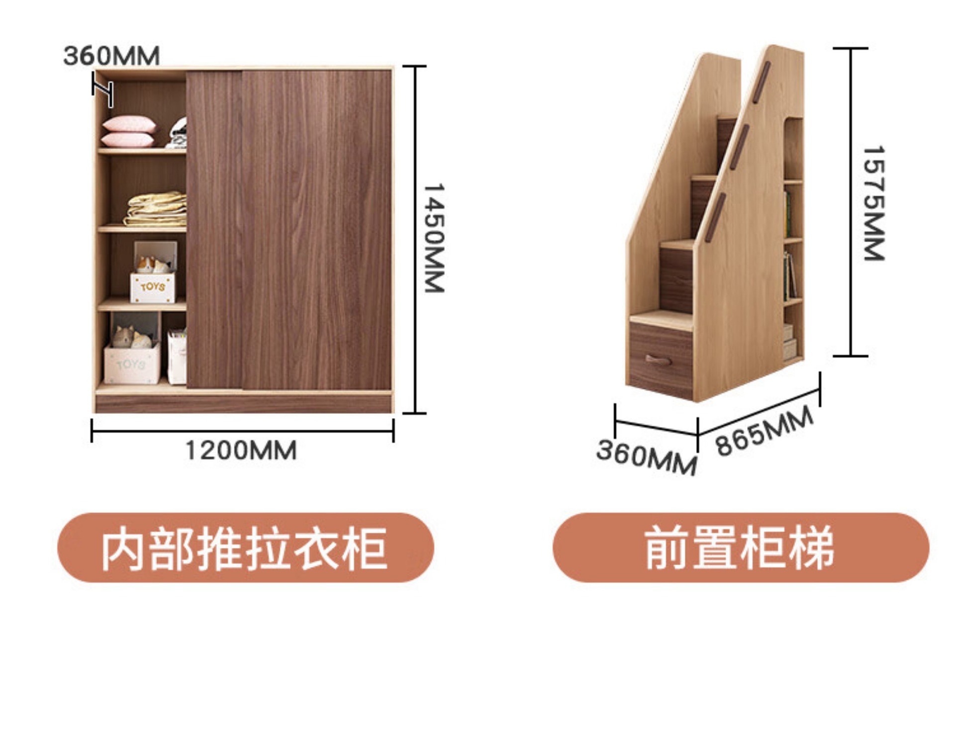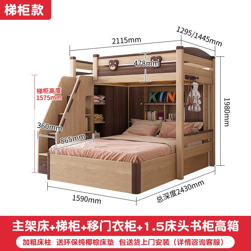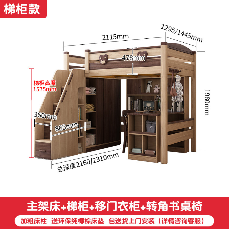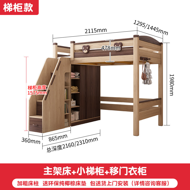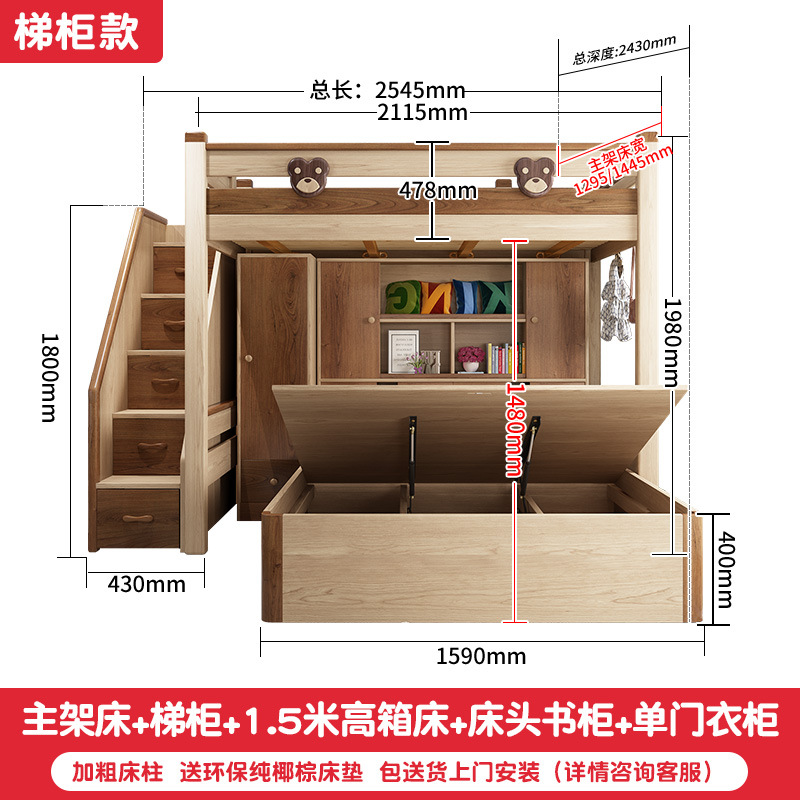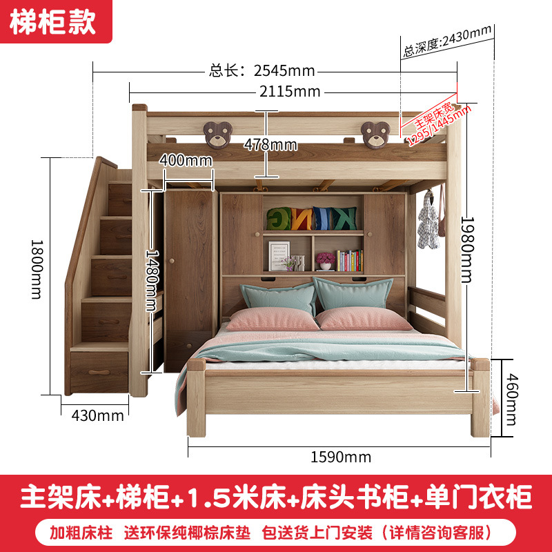 • 메인 프레임 침대 + 사다리 캐비닛 + 옷장 + 1.5 높이 상자