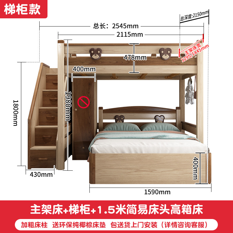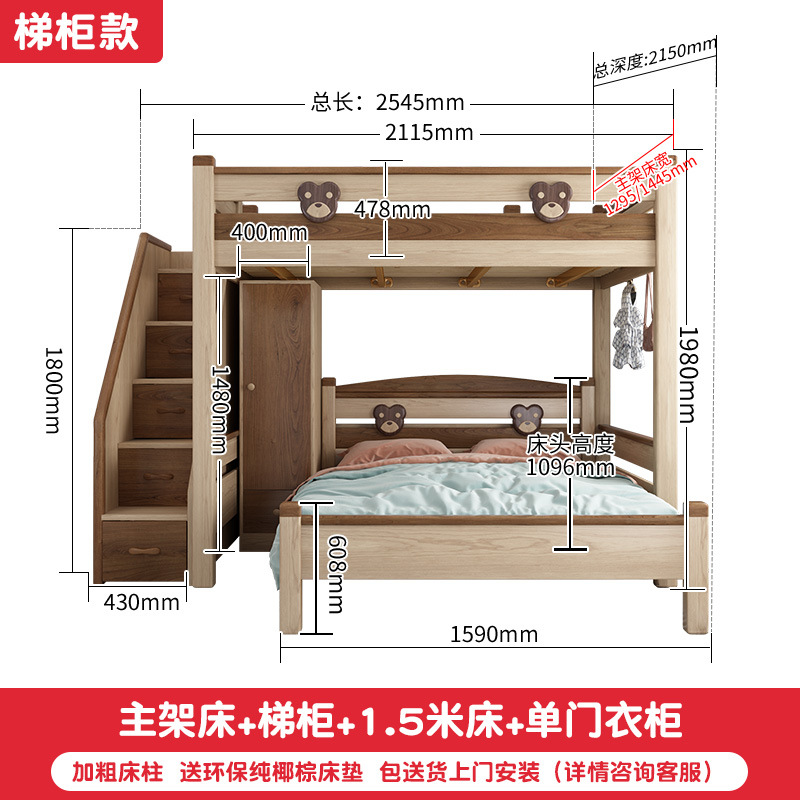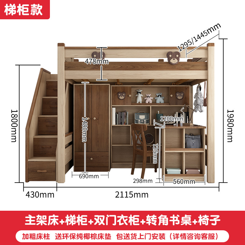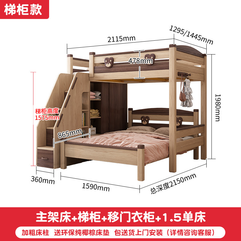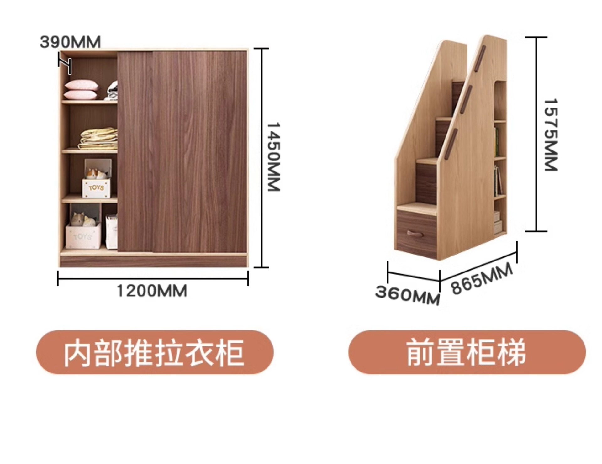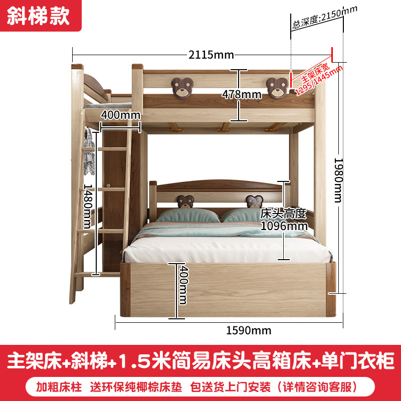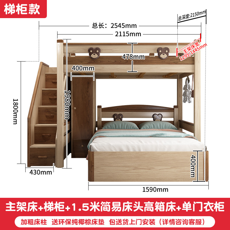 • 메인 프레임 침대 + 사다리 캐비닛 + 옷장 + 1.5 높이 상자
