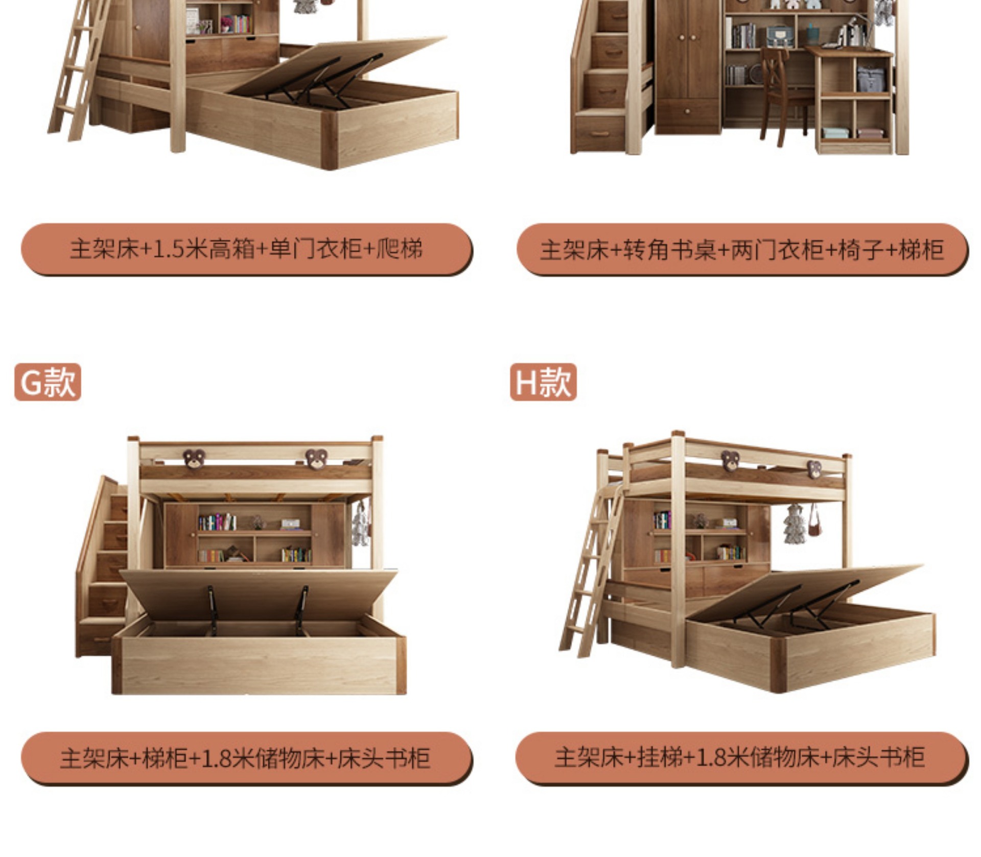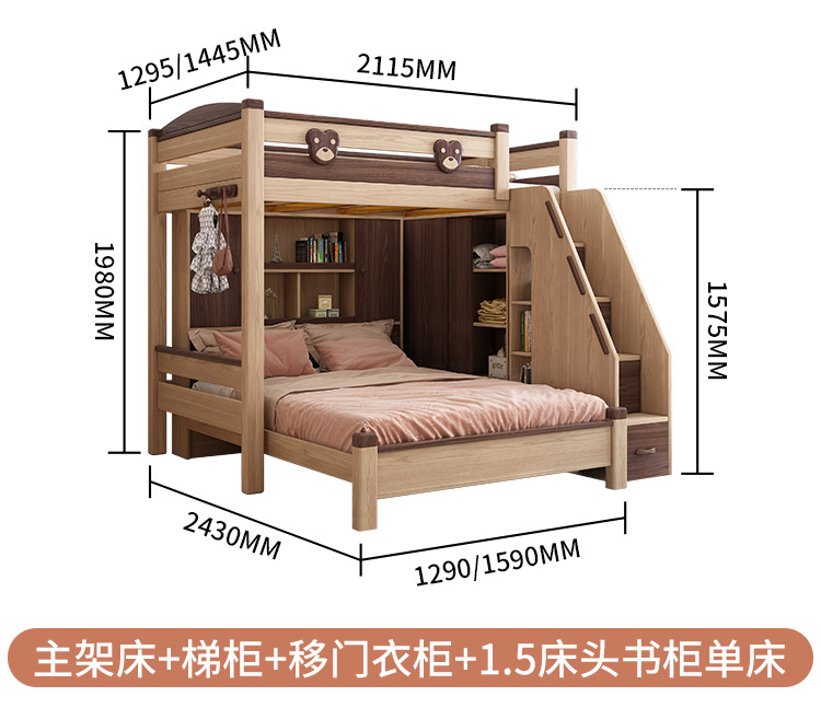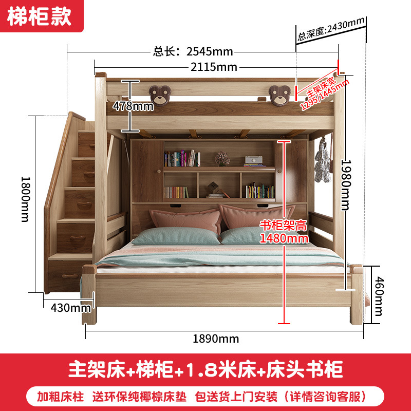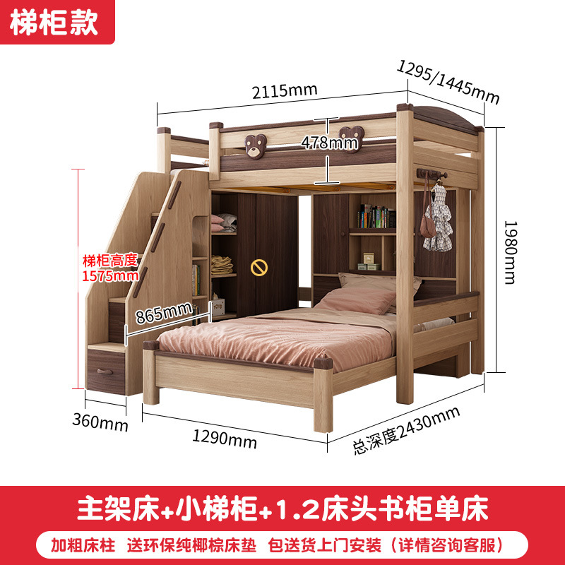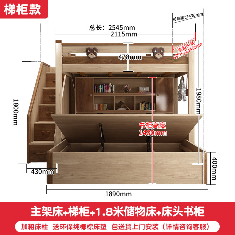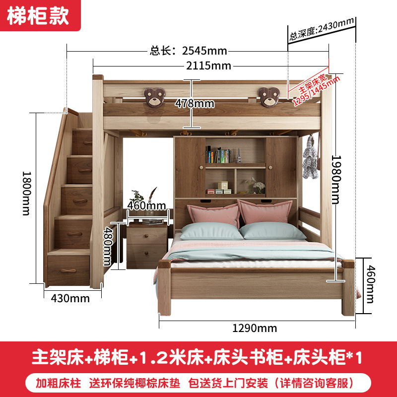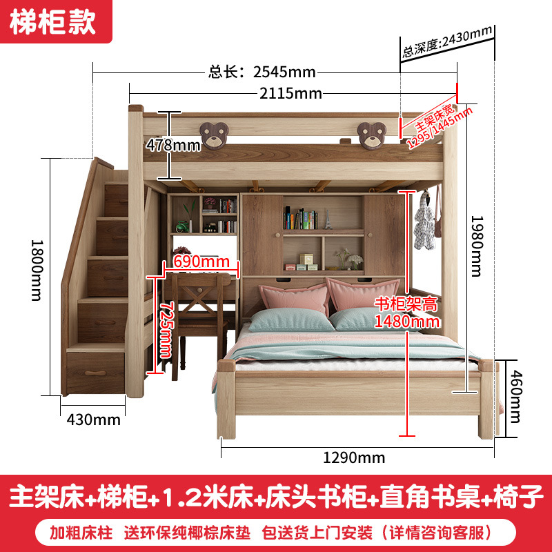 • 메인 프레임 침대 + 사다리 캐비닛 + 옷장 + 1.5 높이 상자