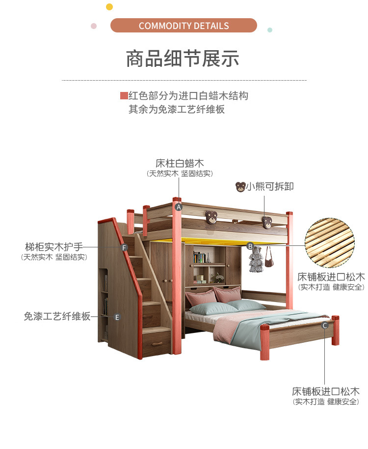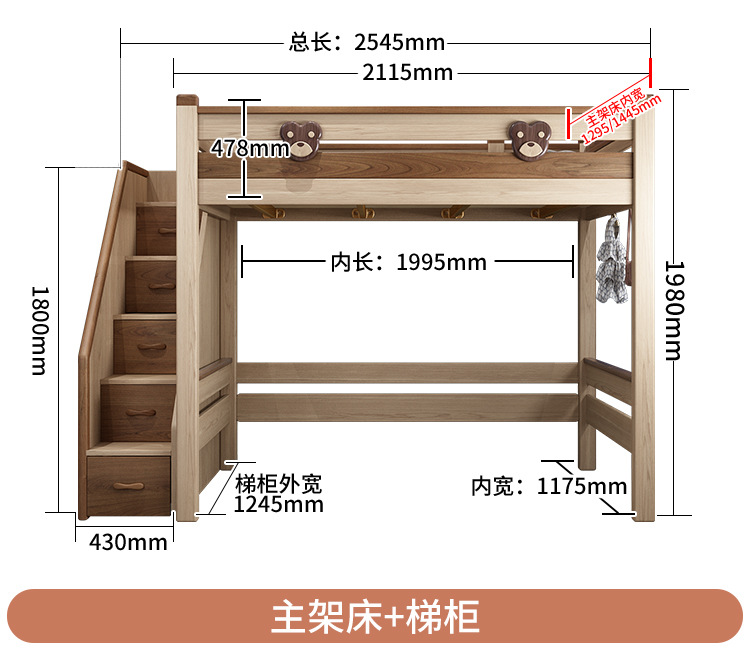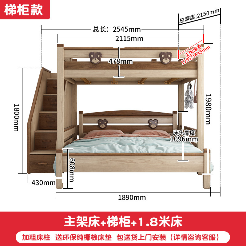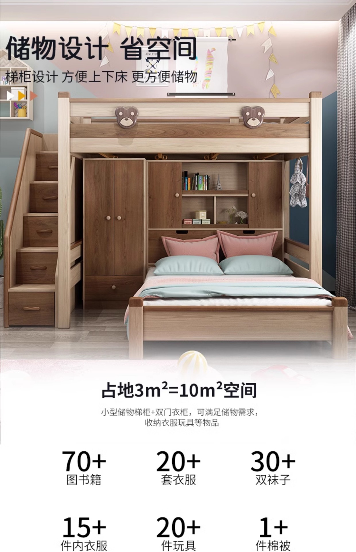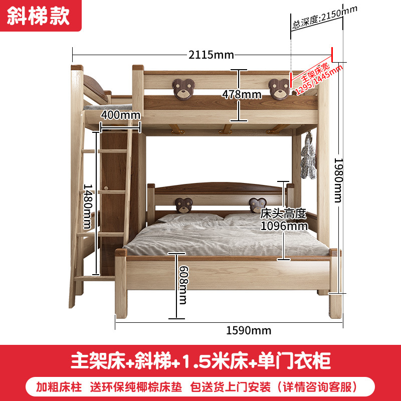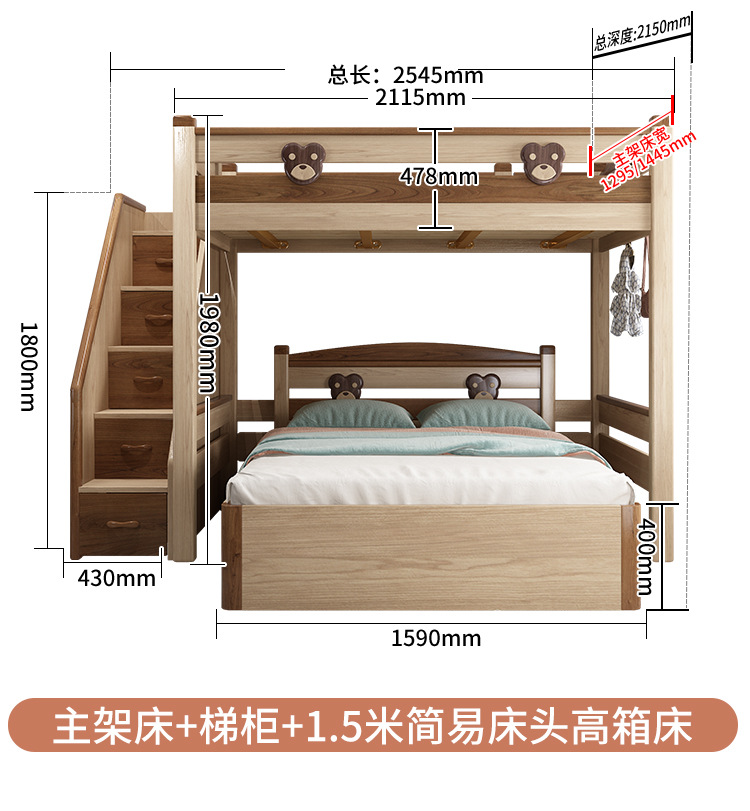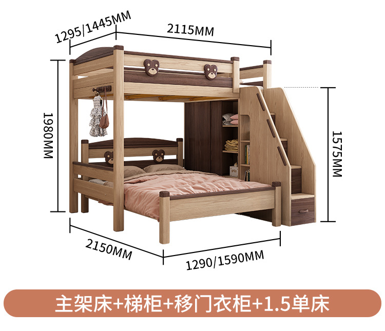 • 메인 프레임 침대 + 사다리 캐비닛 + 옷장 + 1.5 높이 상자