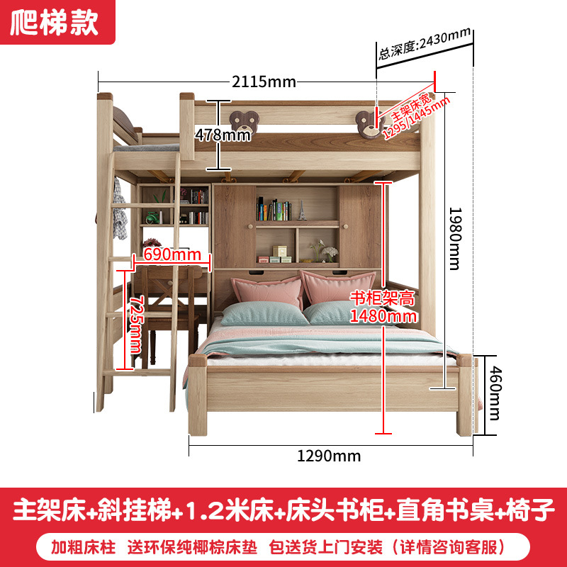 • 메인 프레임 침대 + 사다리 캐비닛 + 1.2 침대 + 책장 + 책상 및 의자