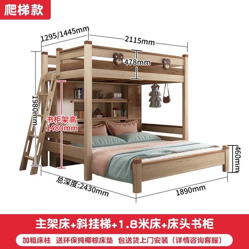 • 메인 프레임 침대 + 작은 사다리 캐비닛 + 1.2 침대 옆 책장 싱글 침대