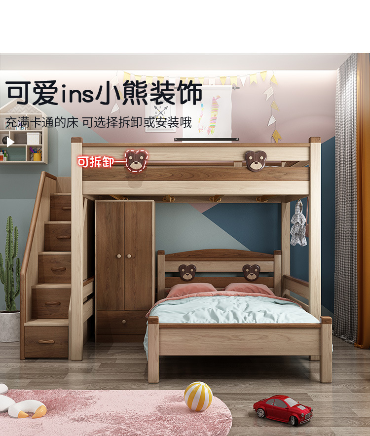 교차 이층 침대, 침대 책상 일체형, 상단 침대 및 하단 캐비닛, 소형 이층 침대, 원목 이층 침대