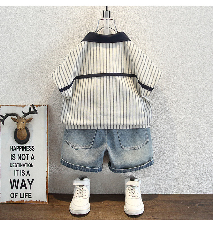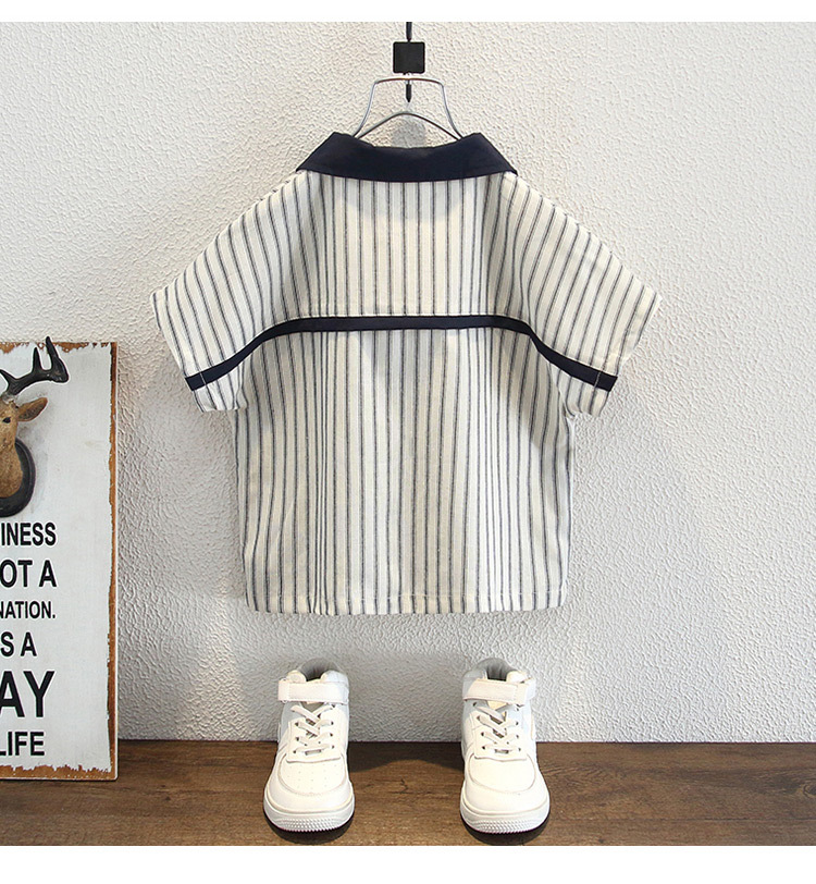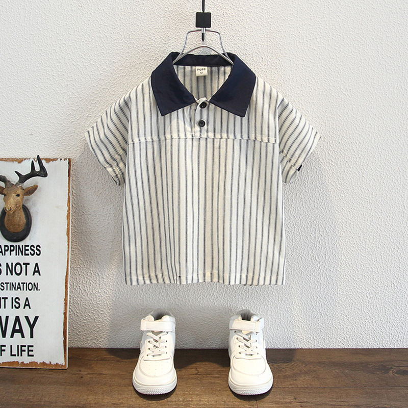 소년 반팔 셔츠 2025 새로운 한국 스타일 줄무늬 반팔 폴로 셔츠 여름 어린이 얇은 캐주얼 탑스토어 가기
