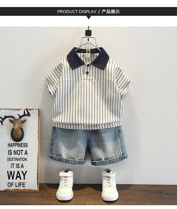소년 반팔 셔츠 2025 새로운 한국 스타일 줄무늬 반팔 폴로 셔츠 여름 어린이 얇은 캐주얼 탑