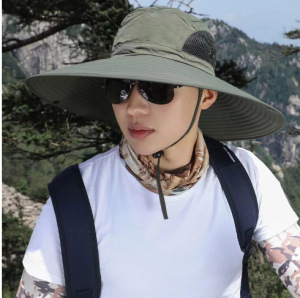 • 속건 카우보이 모자 [밀리터리 그린] - 12CM 챙 (야외용 자외선 차단용)