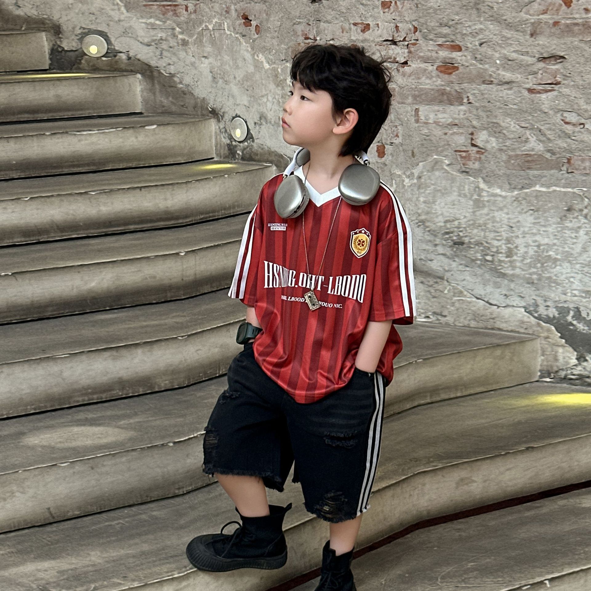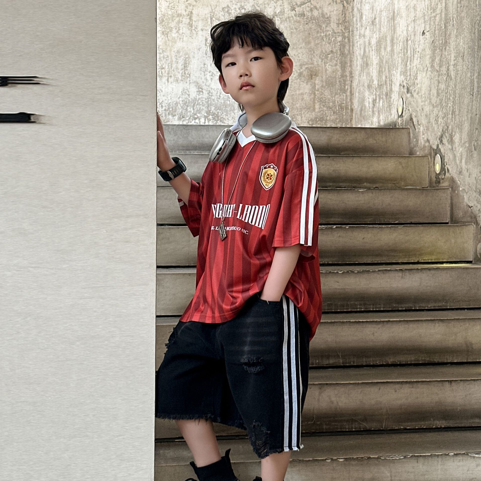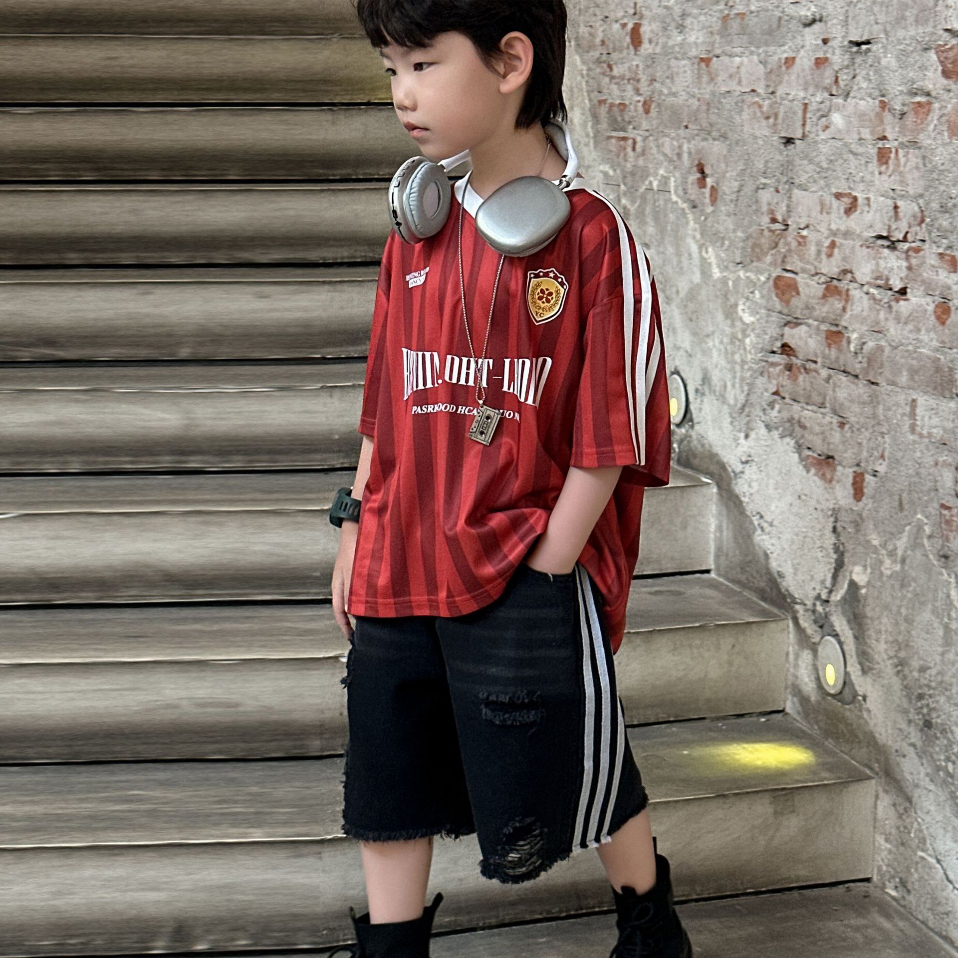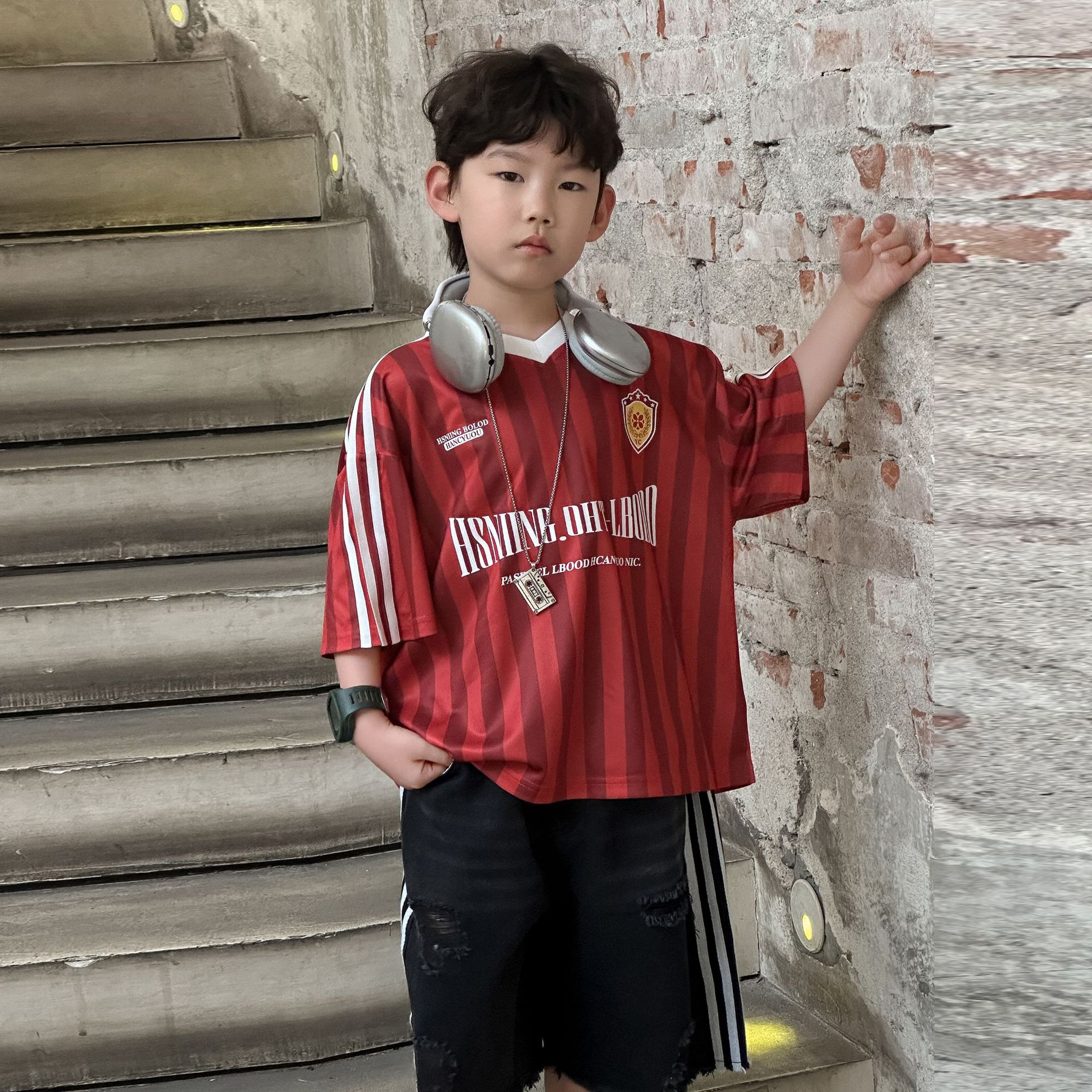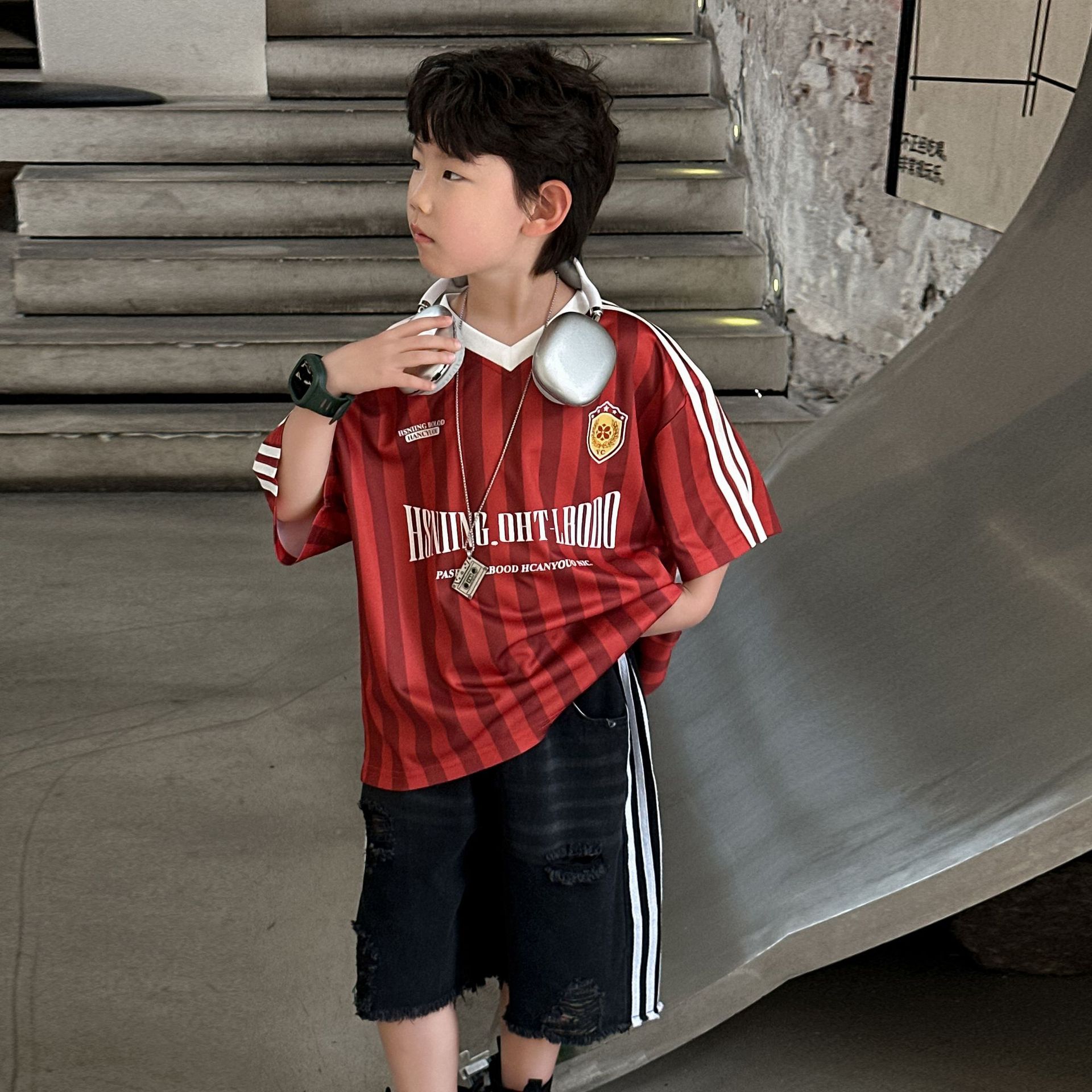 아동복 아동 여름 신작 티셔츠 반팔 소년 캐주얼 핸섬 탑 반팔 T2025 아동 5부 소매스토어 가기