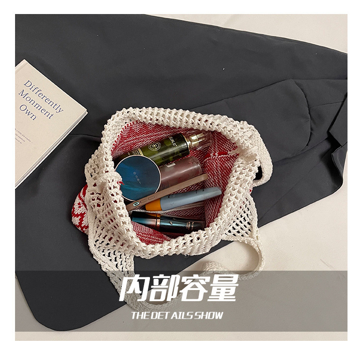 2025 새로운 여성 사랑 중공 가방 니트 가방 ins 쇼핑 가방 대용량 토트 백 비치 가방 여성 가방스토어 가기