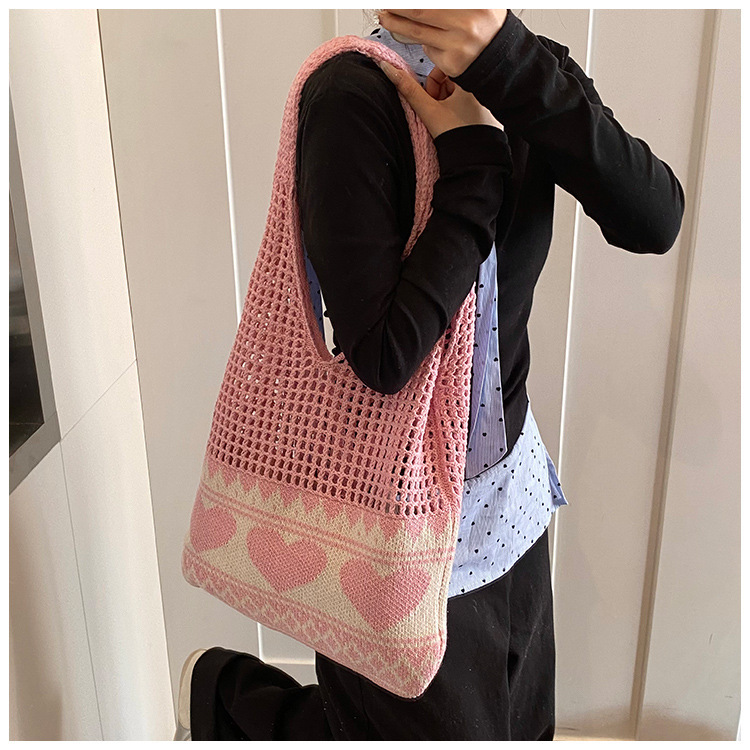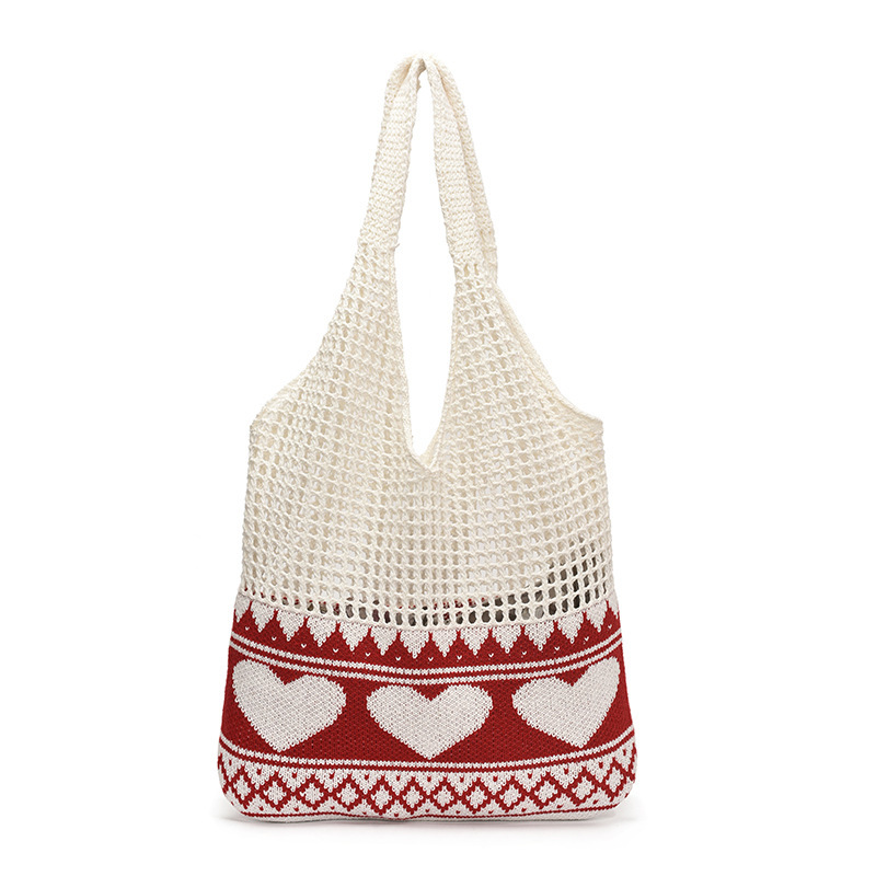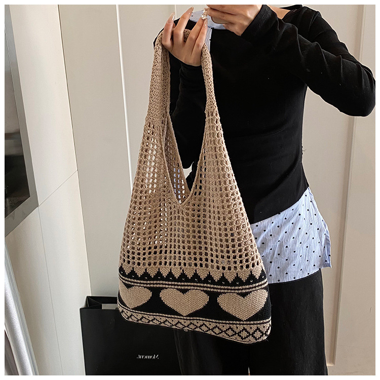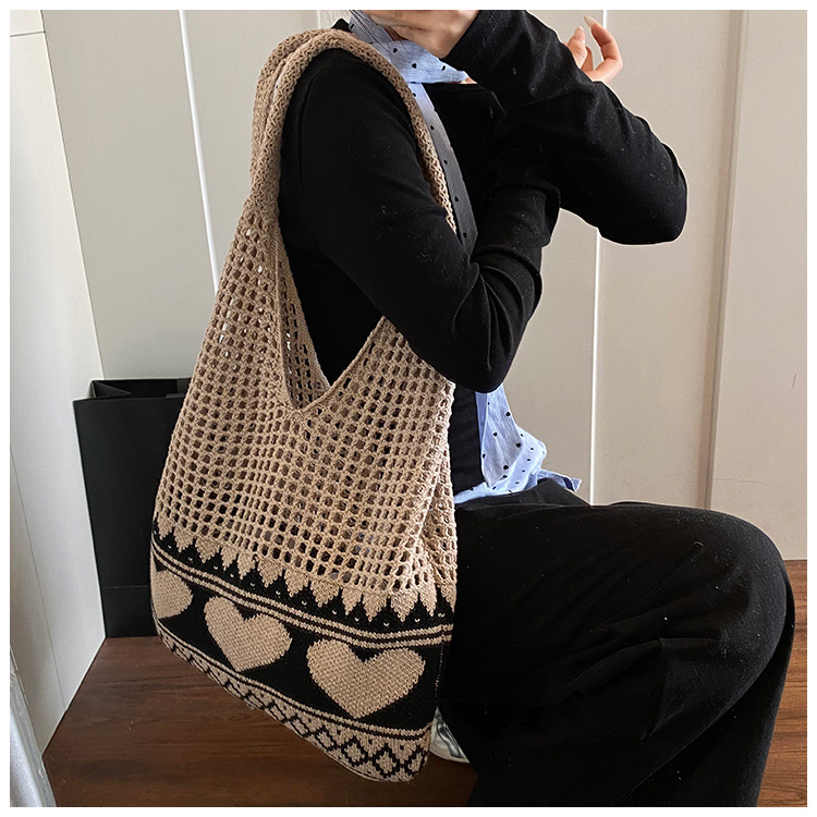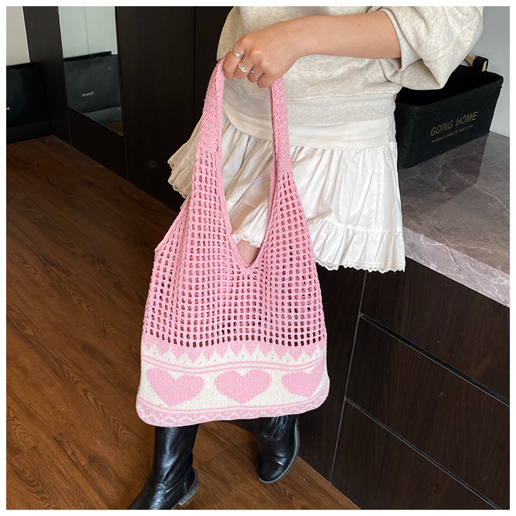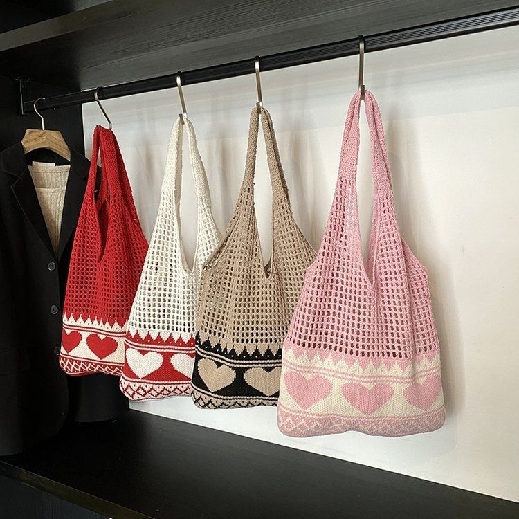 2025 새로운 여성 사랑 중공 가방 니트 가방 ins 쇼핑 가방 대용량 토트 백 비치 가방 여성 가방