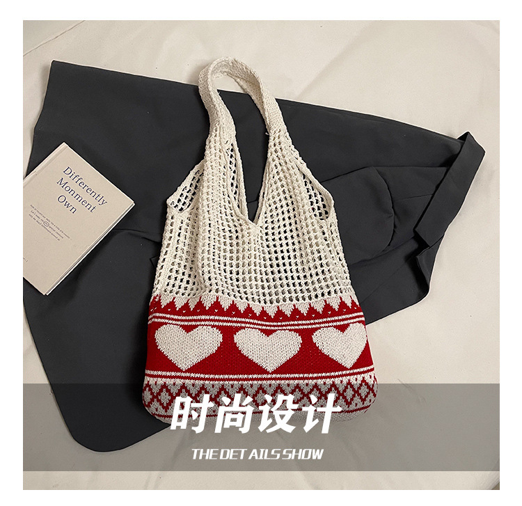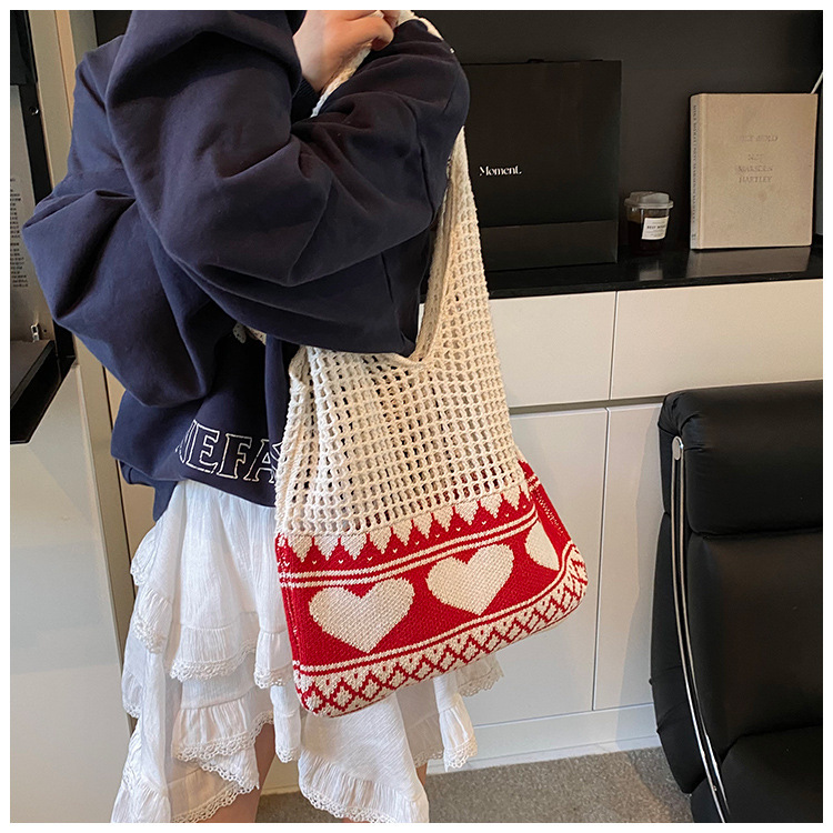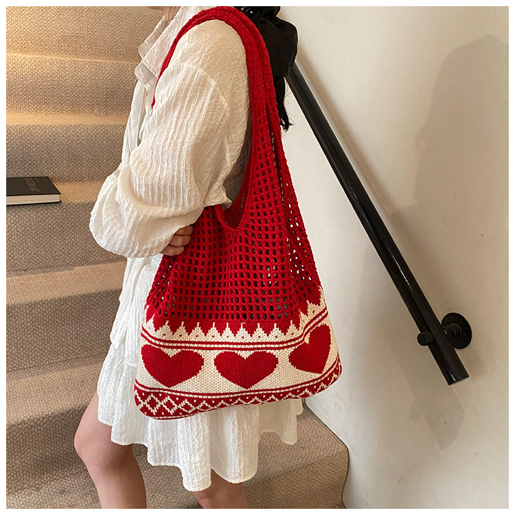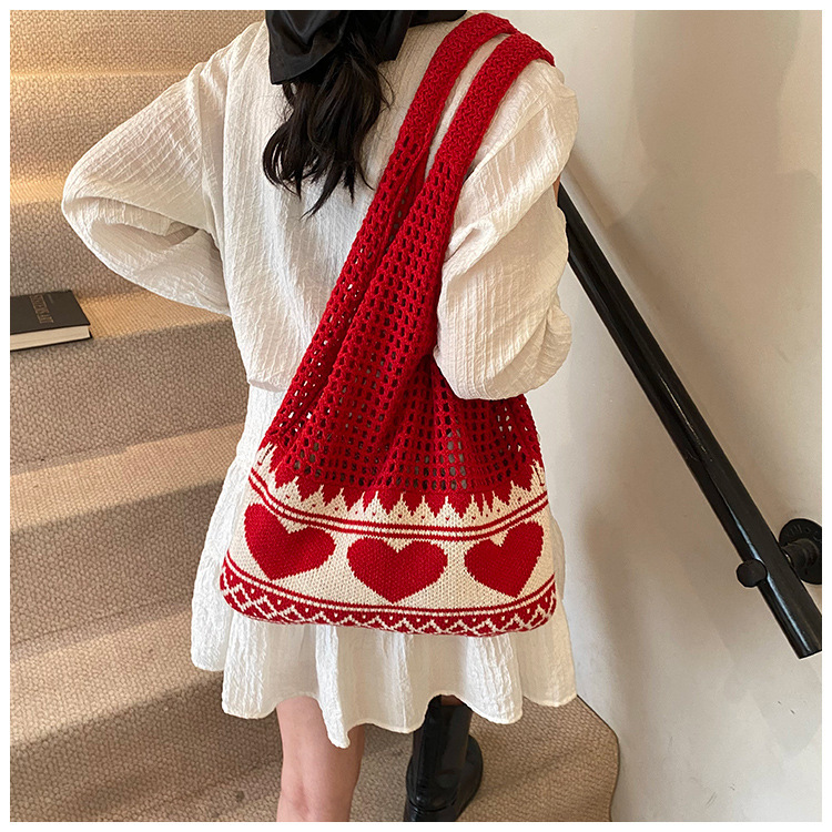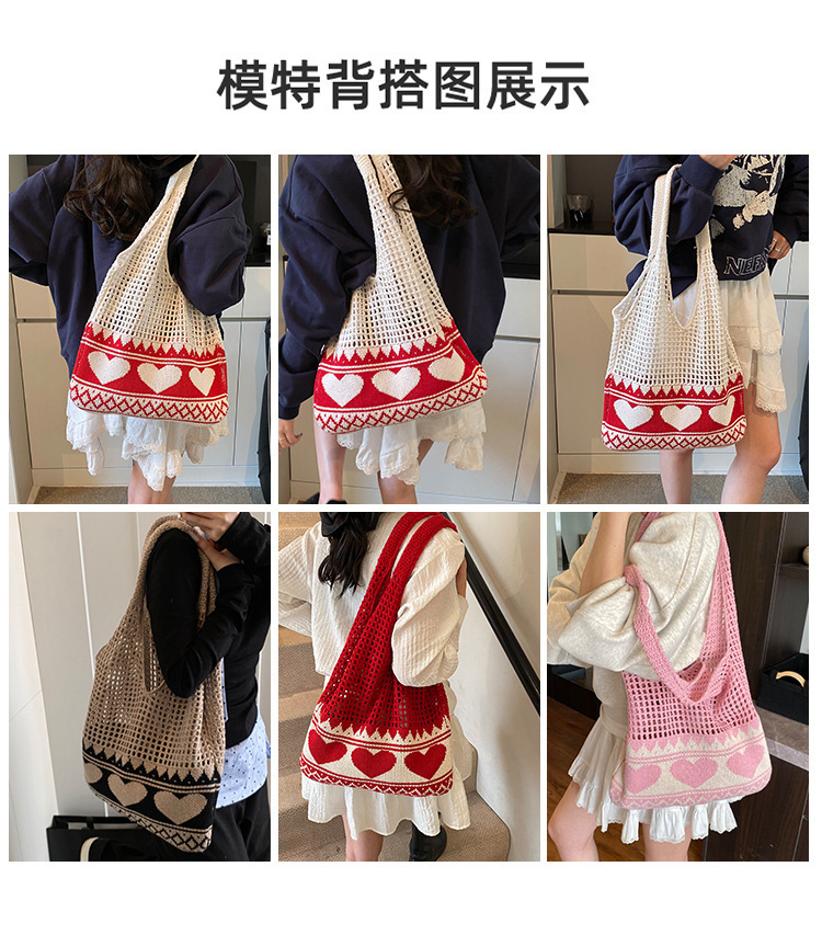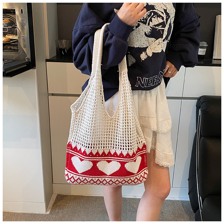 2025 새로운 여성 사랑 중공 가방 니트 가방 ins 쇼핑 가방 대용량 토트 백 비치 가방 여성 가방