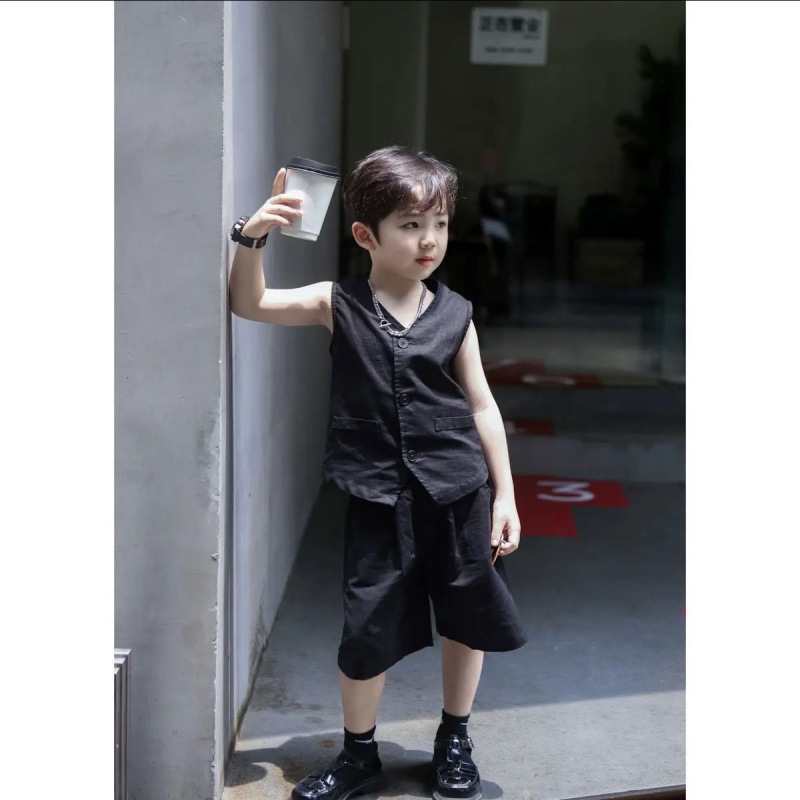 아동용 민소매 셔츠 정장 여름 2025 새로운 스타일 소년 소녀 탑 반바지 투피스 한국 스타일 캐주얼 투피스 세트스토어 가기