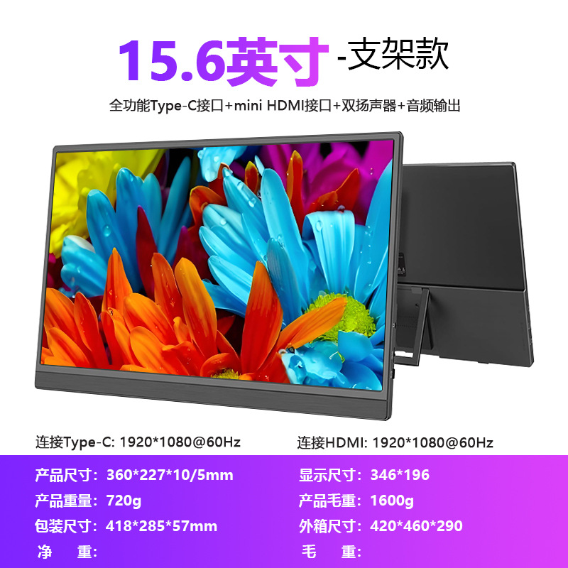 15.6inch 휴대용 모니터 노트북 보조 화면 PS4/5 스위치 원라인 연결 IPS 화면 휴대용