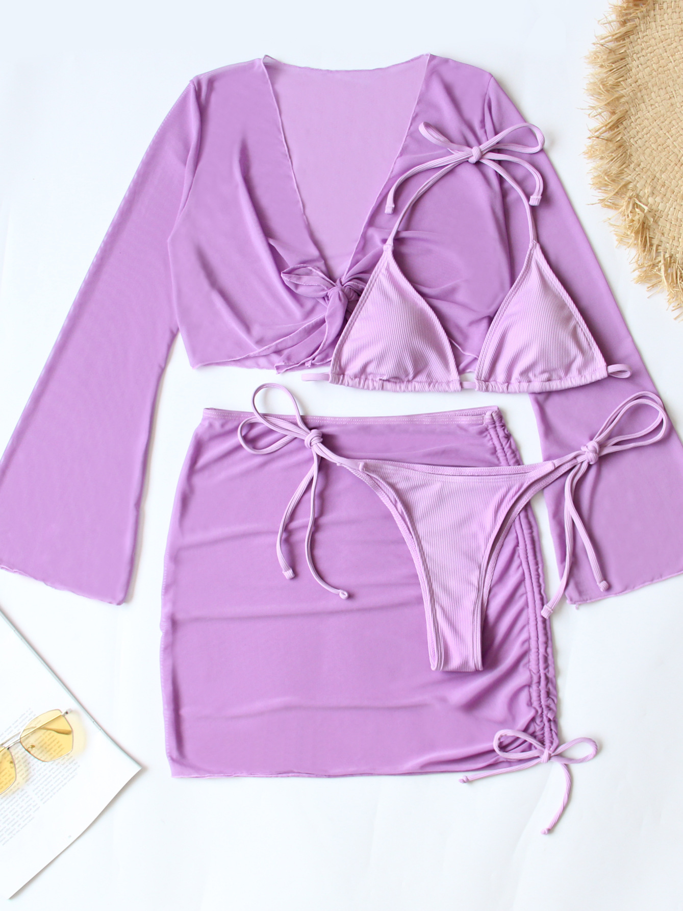 유럽과 미국의 메쉬 4 피스 비키니 수영복 여성 섹시한 Купальник 대외 무역 러시아스토어 가기