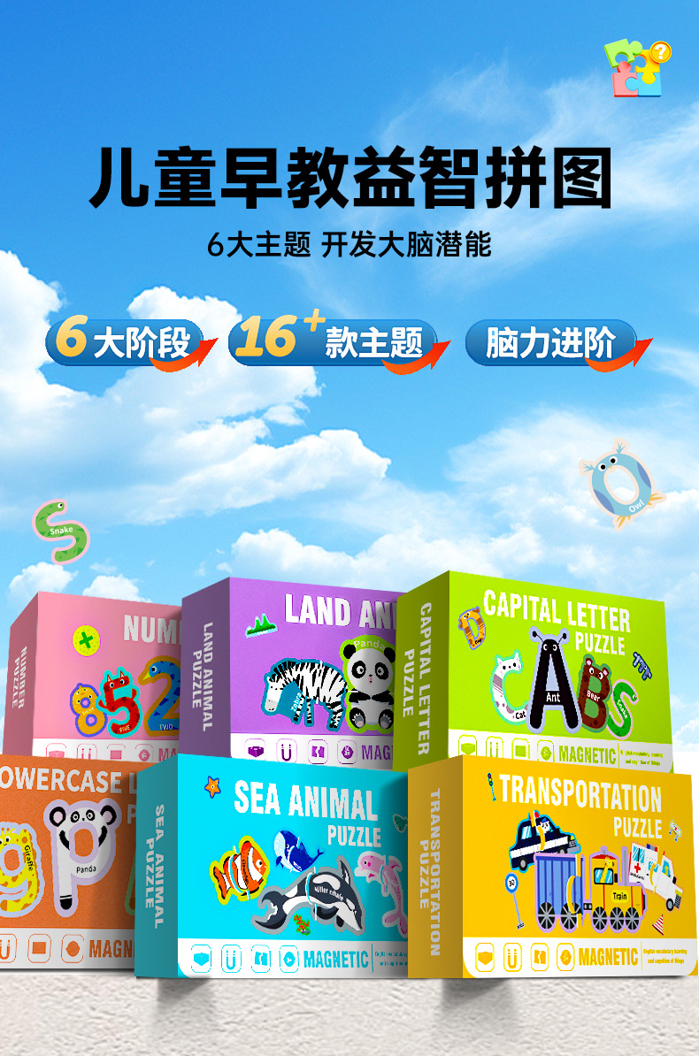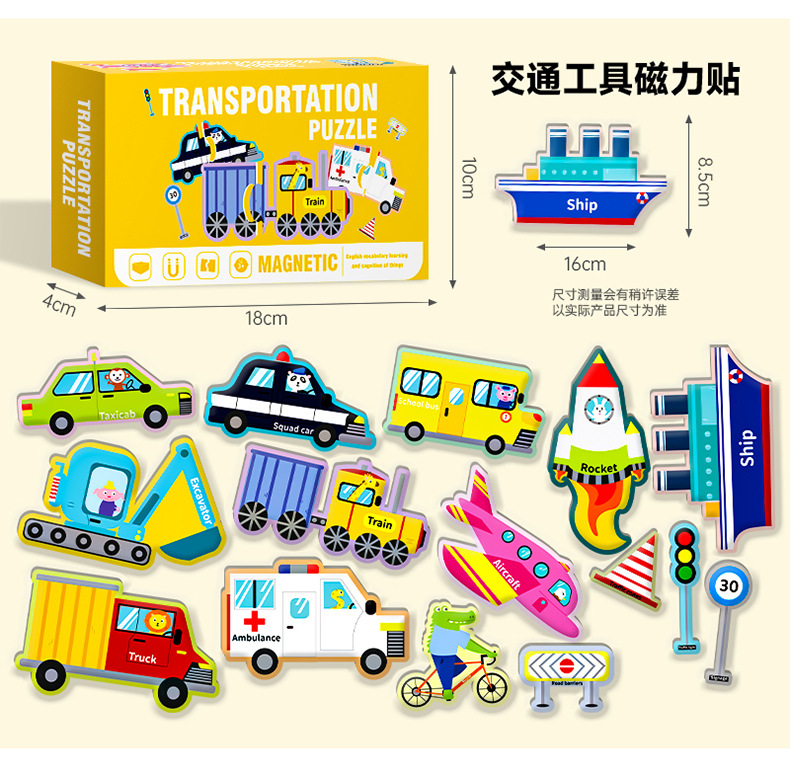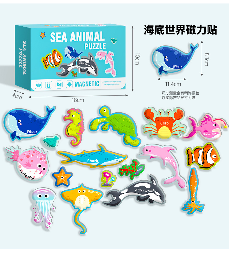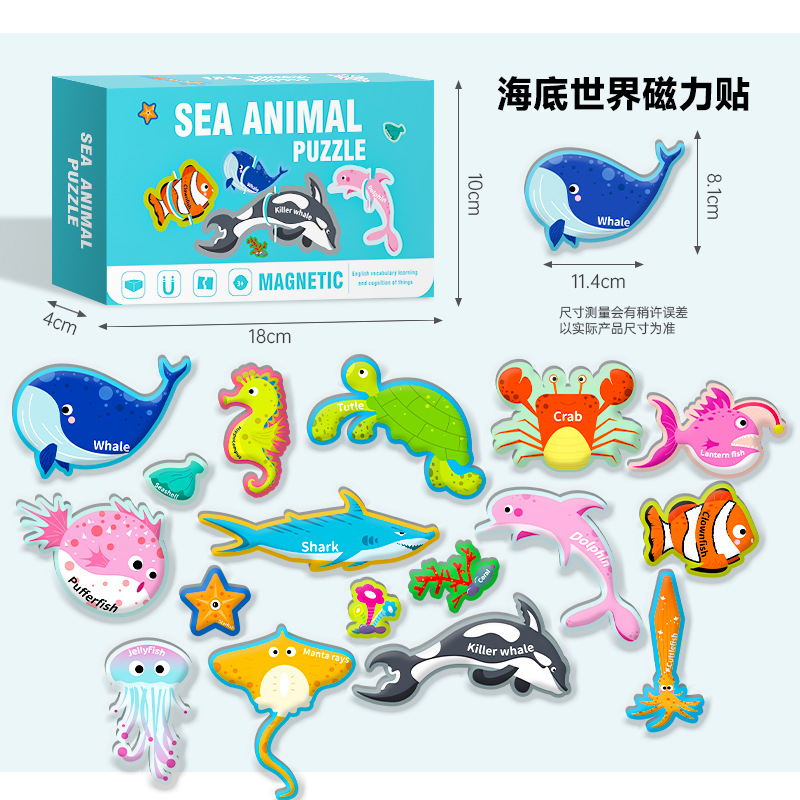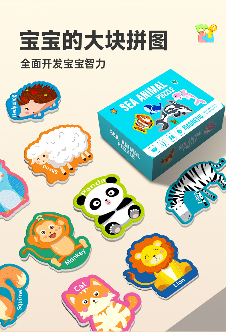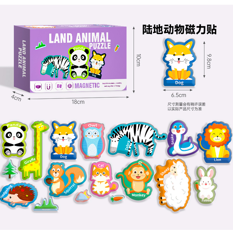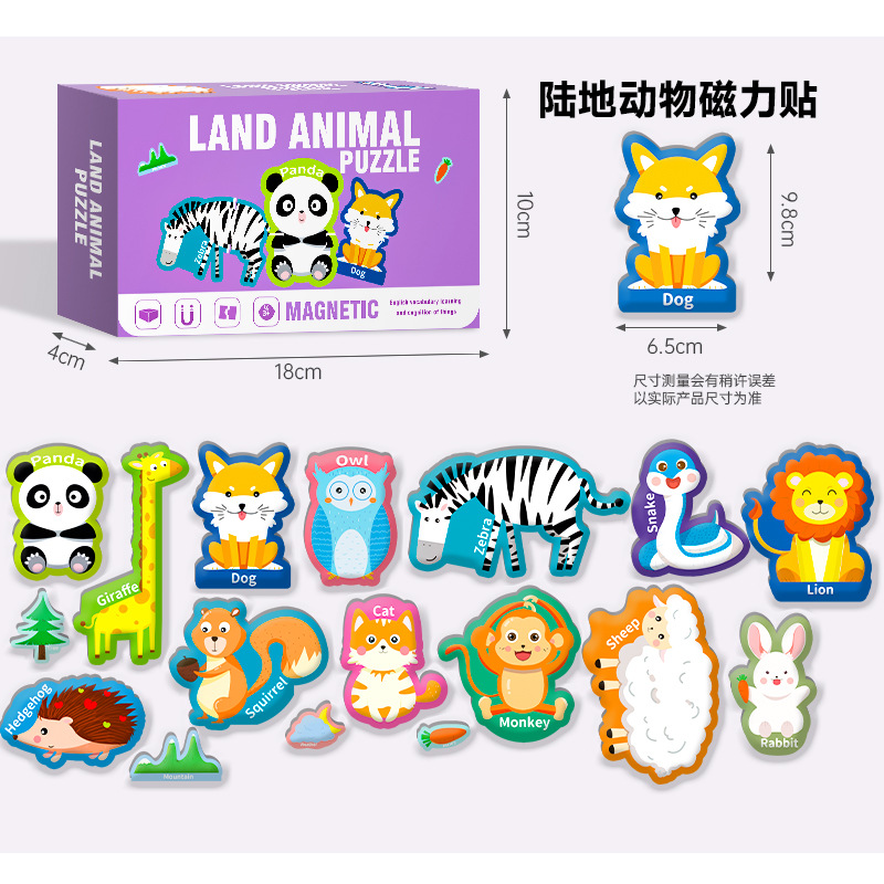 영어 버전 자기 블록 퍼즐 박스형 어린이 조기 교육 매칭 대형 자기 장난감 동물 문자 인식