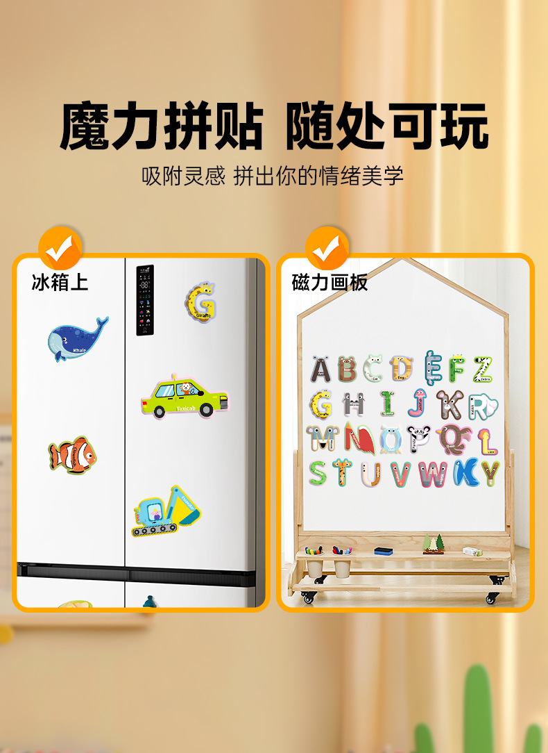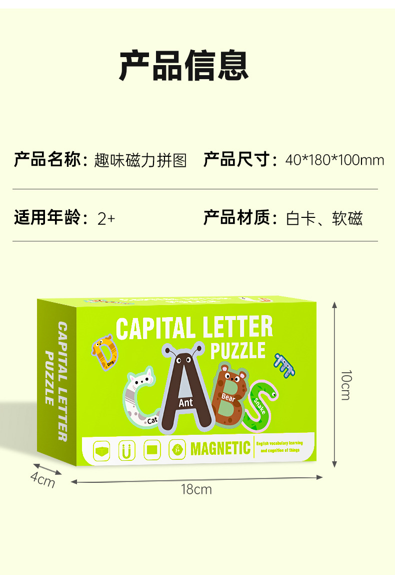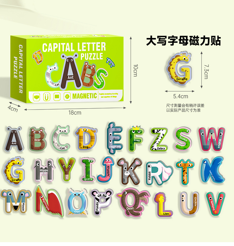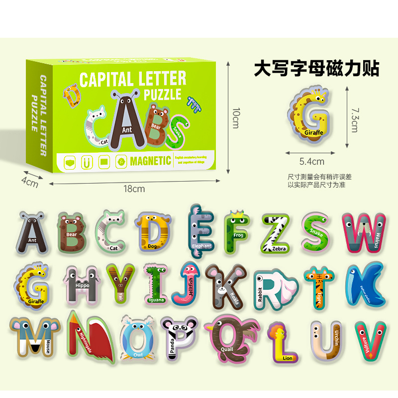 영어 버전 자기 블록 퍼즐 박스형 어린이 조기 교육 매칭 대형 자기 장난감 동물 문자 인식스토어 가기