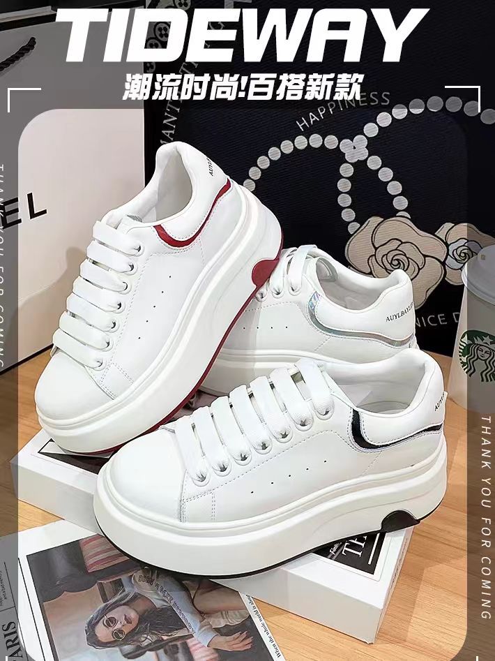 키높이 캐주얼 슈즈, 활용도 높은 두꺼운 밑창의 흰색 신발, 여성화, 2025 봄 신상 플랫폼 슈즈스토어 가기