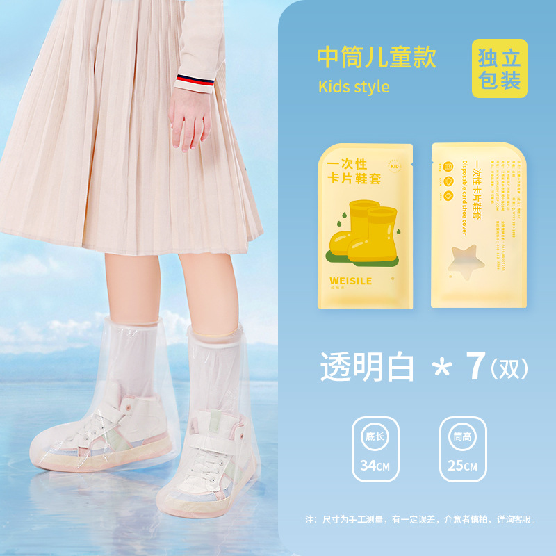 • 어린이용 일회용 신발 커버, 투명 흰색, 7켤레 [독립 카드 포장]