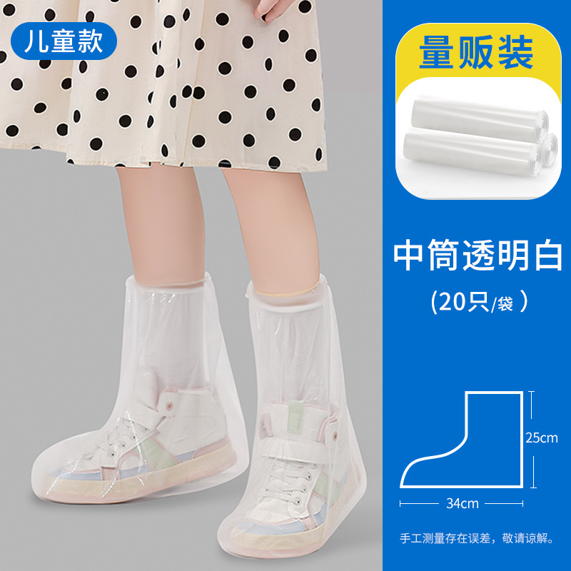 • 어린이용 일회용 신발 커버, 중통, 투명 흰색, 20개입 [대량 판매 팩]