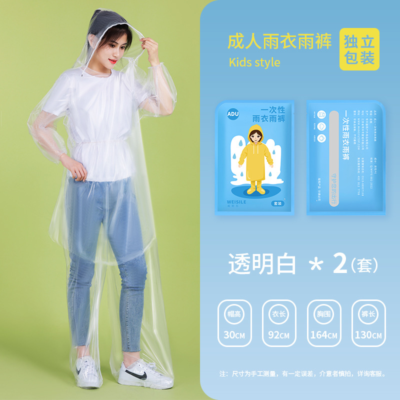 • 성인용 일회용 비옷과 비옷, 투명 흰색, 2세트(카드 포장)