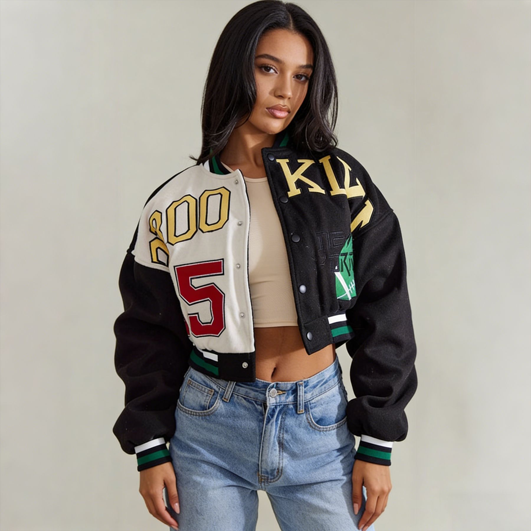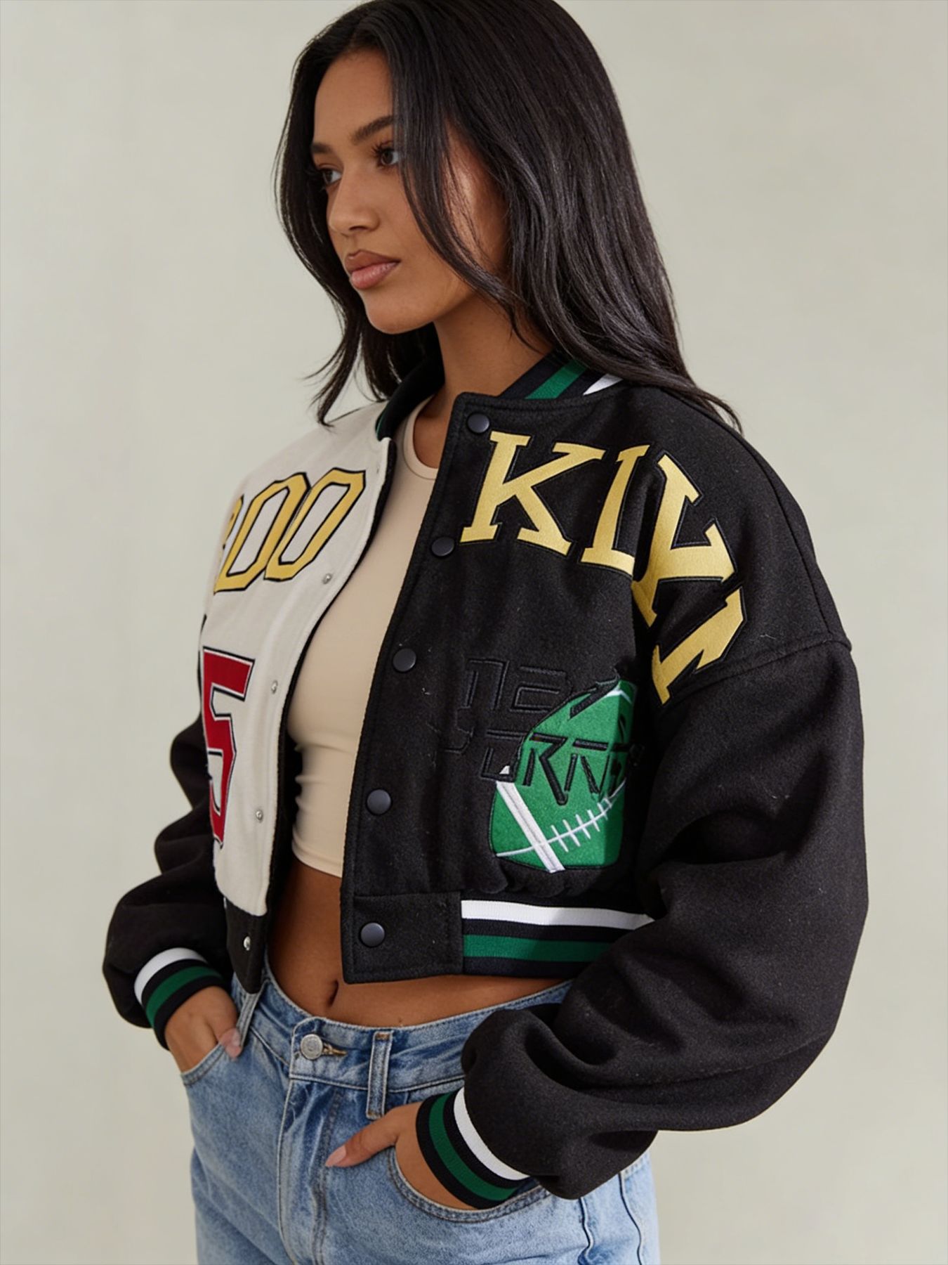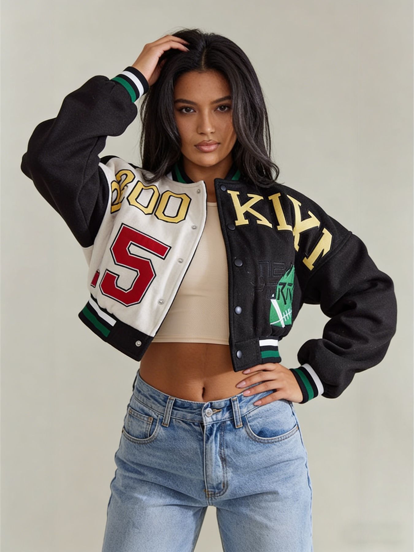 3. 百搭款式:短款设计,易搭配各类上衣和裤子,打造时尚休闲造型。