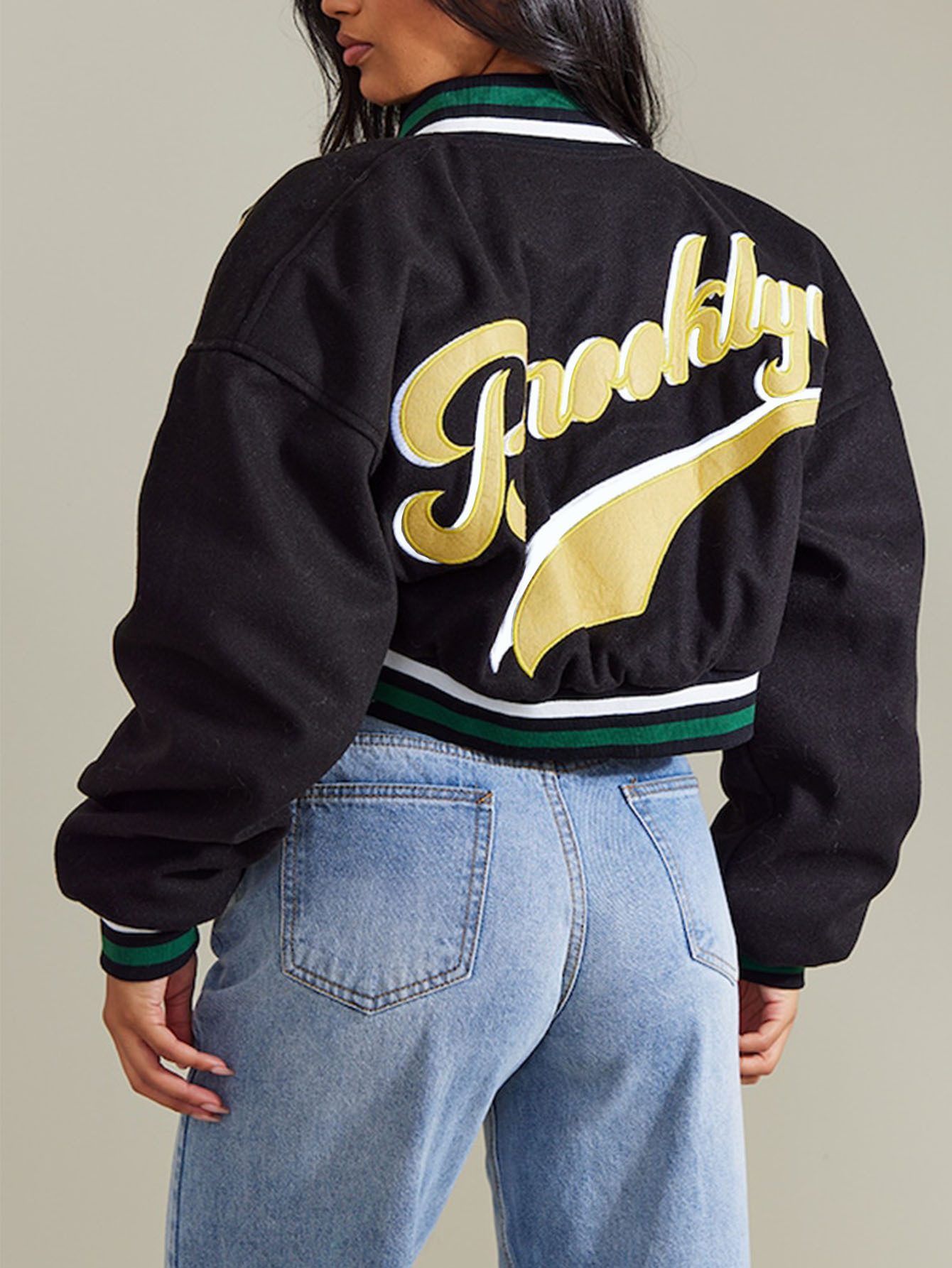 HZ029 레트로 스포츠 레터 프린트 플라이트 재킷 여성 짧은 캐주얼 패션 스트리트 스타일 재킷스토어 가기