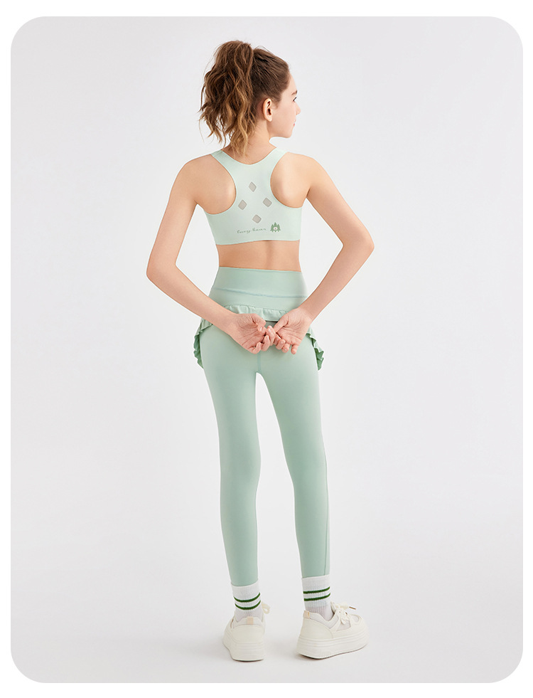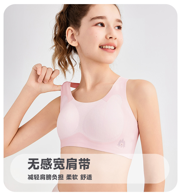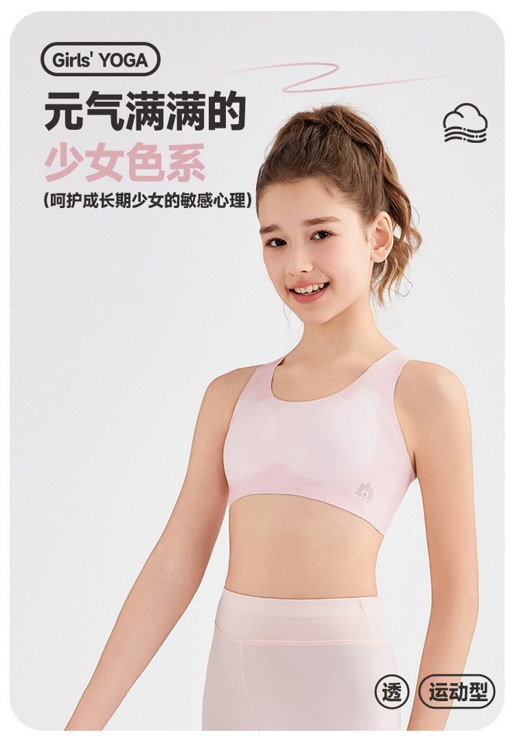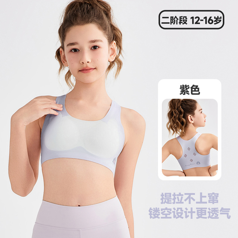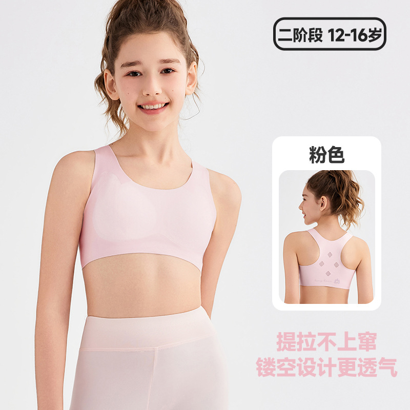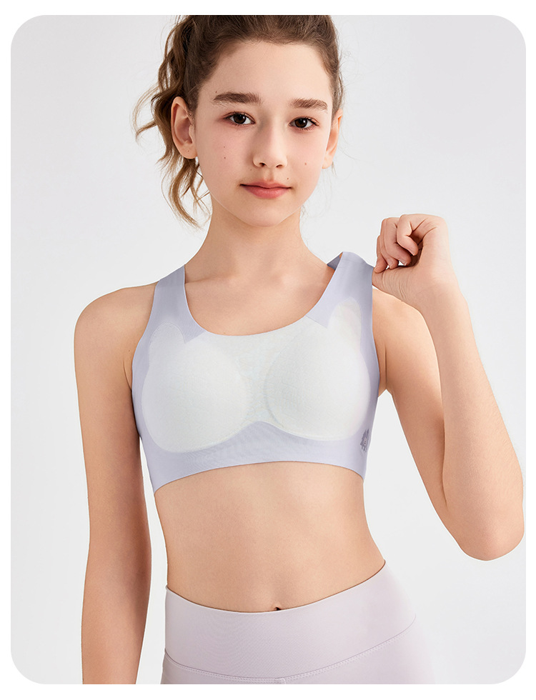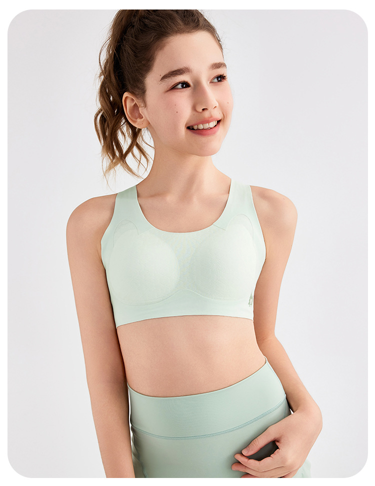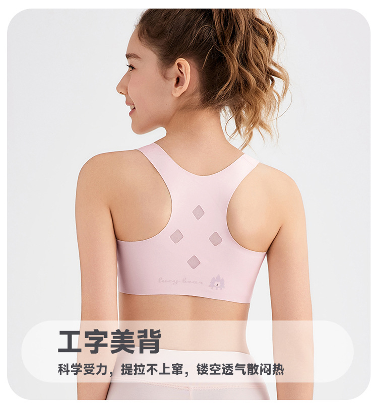 흔적없는 소녀 브래지어 고정 컵 I 자형 충격 방지 발달 조끼 중공 아름다운 등 통기성 소녀 스포츠 브래지어
