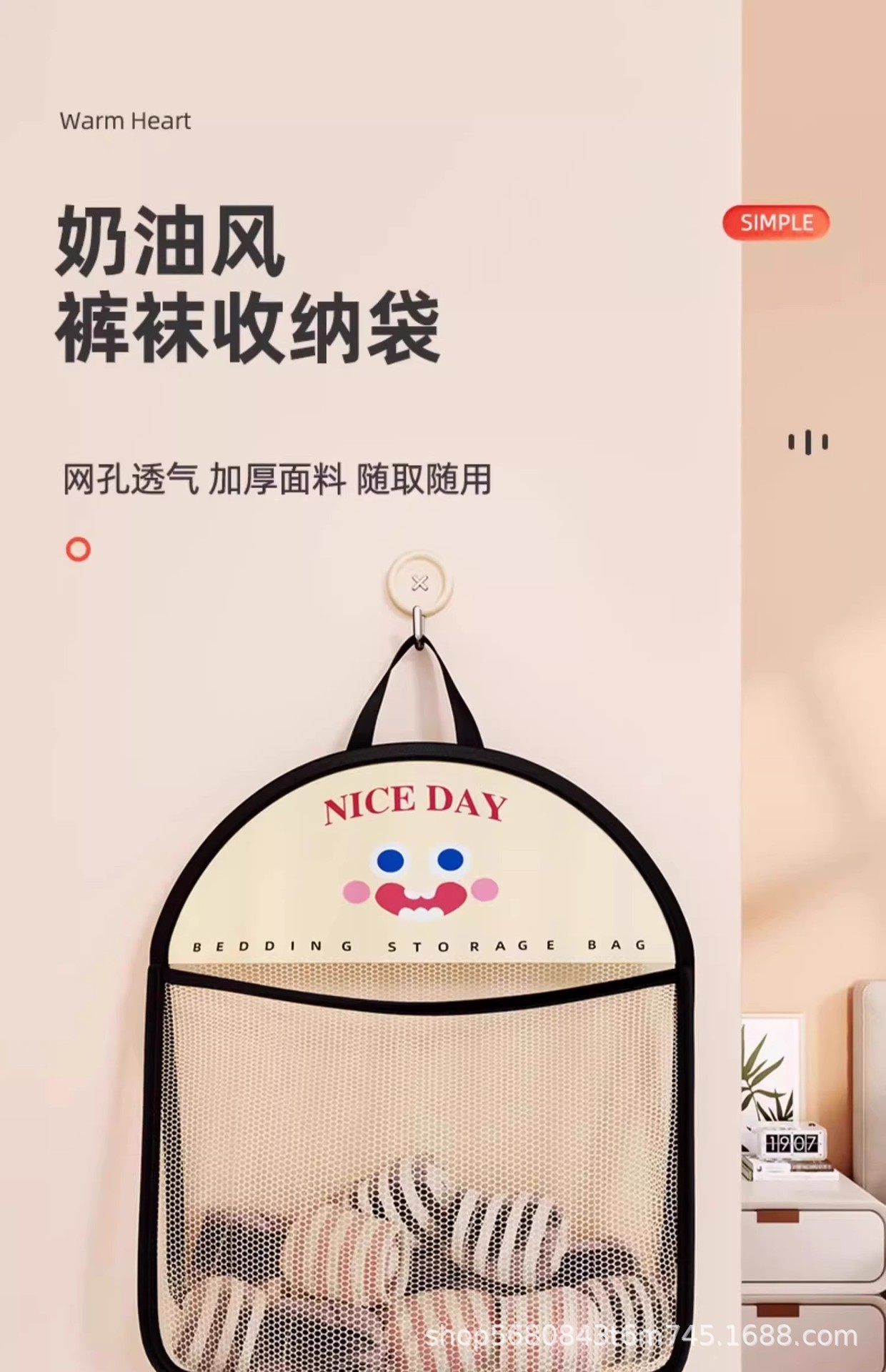 새로운 속옷 양말 보관 웃는 얼굴 교수형 가방 옷장 마감 보관 아티팩트 매달려 통기성 그물 가방 보관 가방스토어 가기