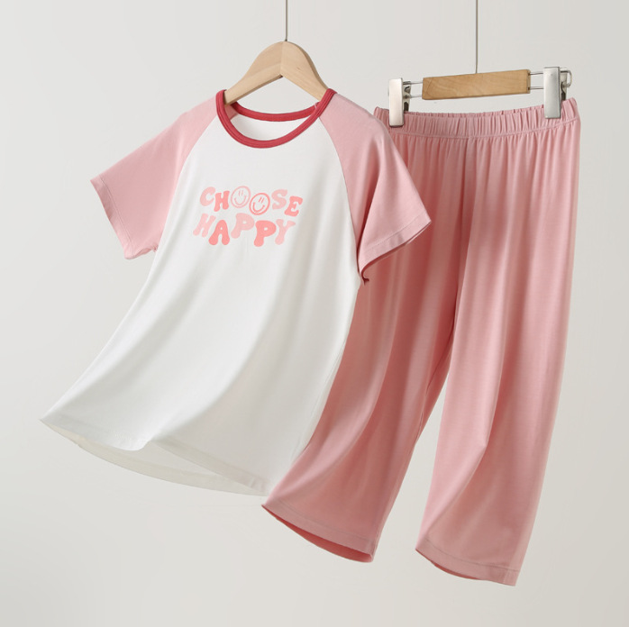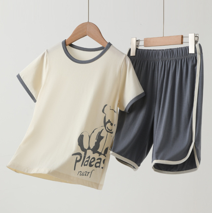 어린이 2025 가정복 세트 여름 남아 반팔 잠옷 모달 소재 여아 얇은 에어컨 의류 편안함