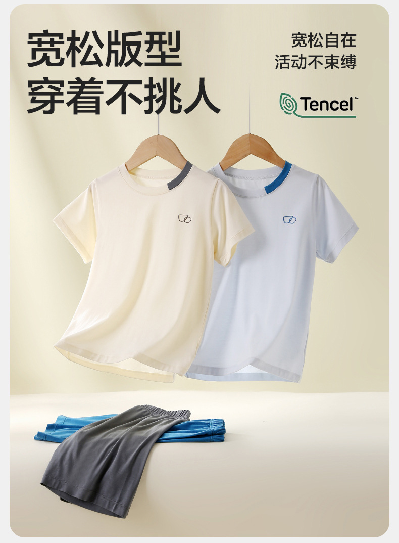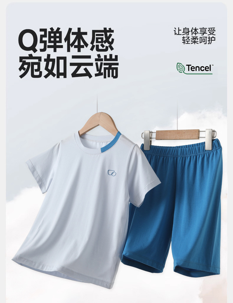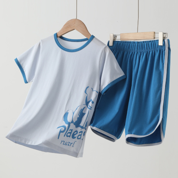 어린이 2025 가정복 세트 여름 남아 반팔 잠옷 모달 소재 여아 얇은 에어컨 의류 편안함스토어 가기