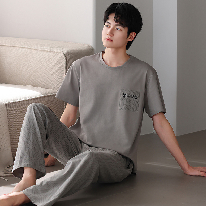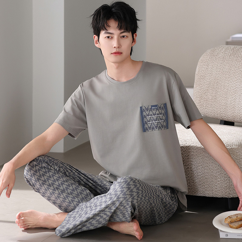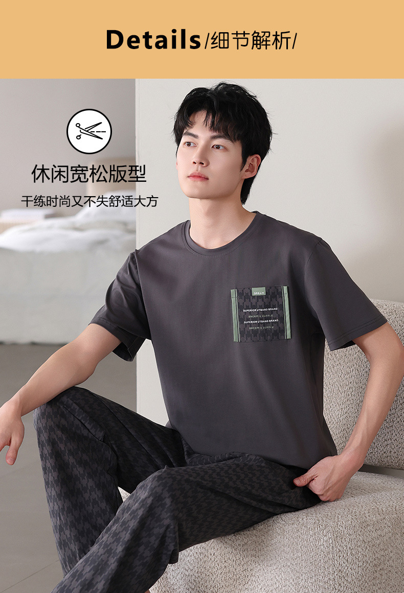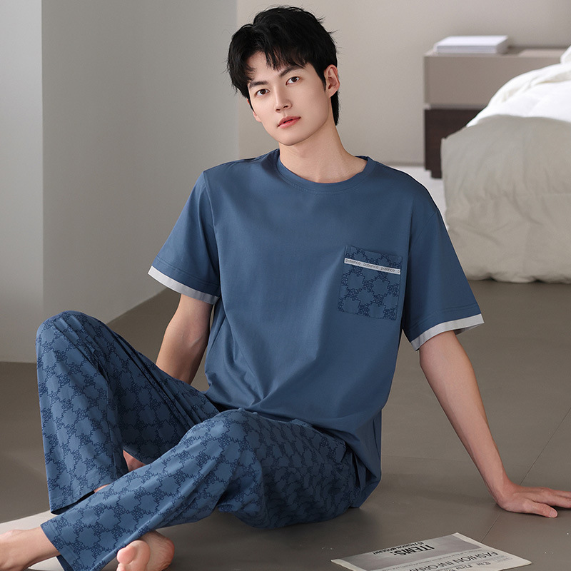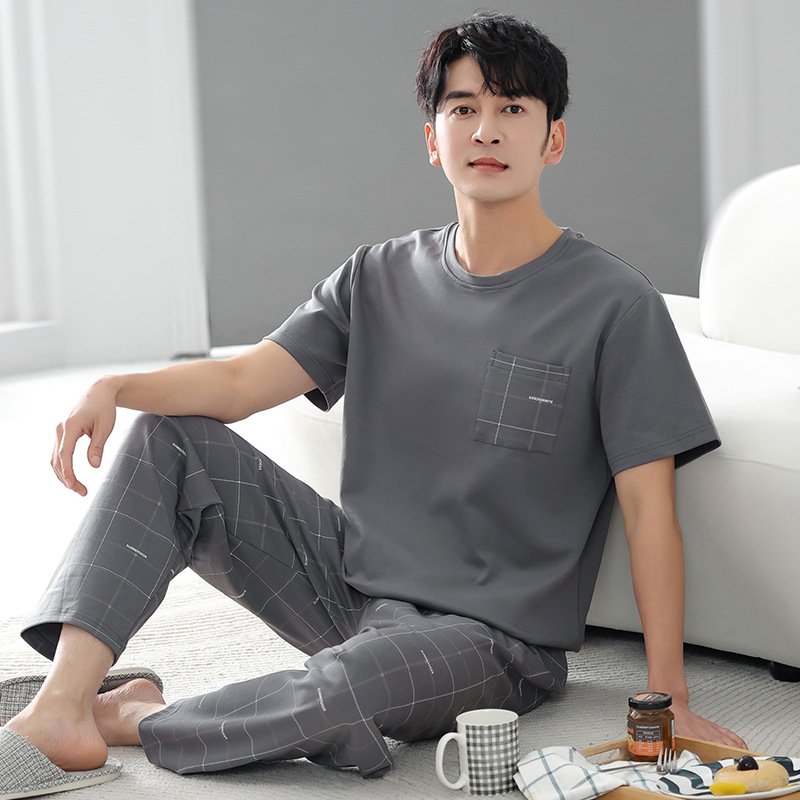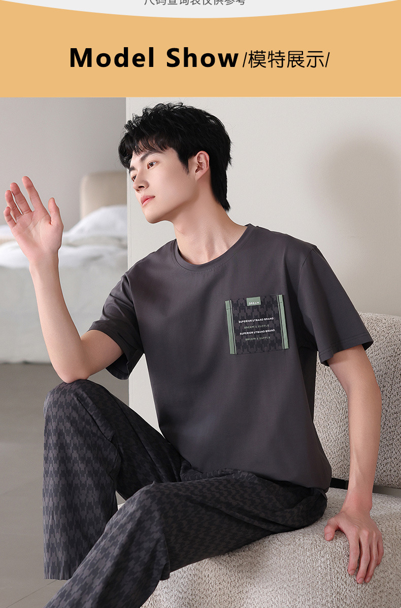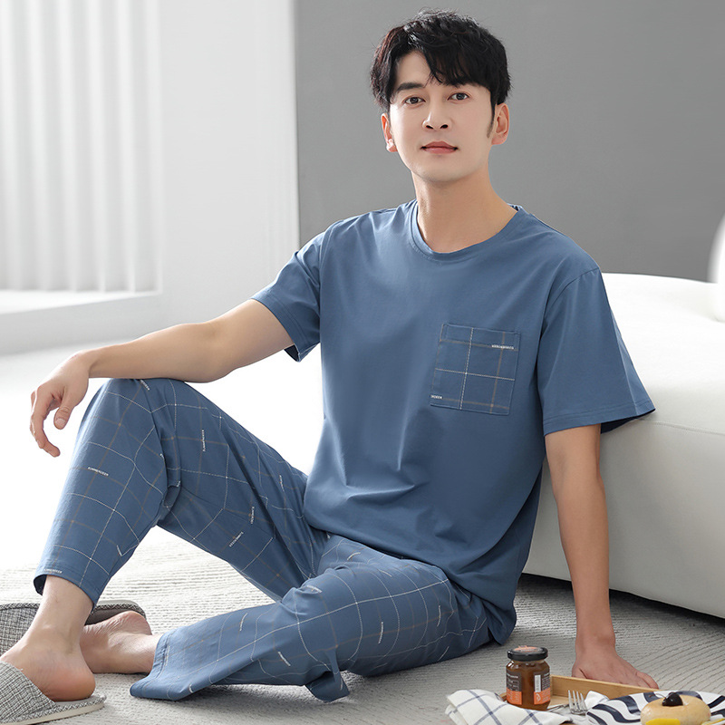 남성 잠옷 여름 순면 반팔 얇은 풀오버 대형 2025 새로운 여름 홈웨어 세트는 밖에서 착용 가능스토어 가기