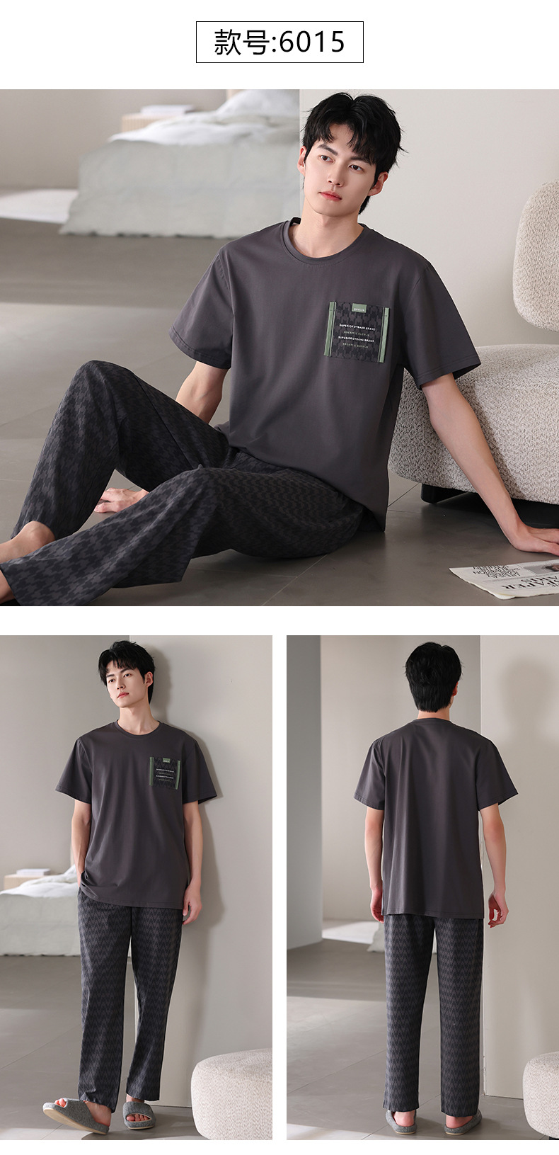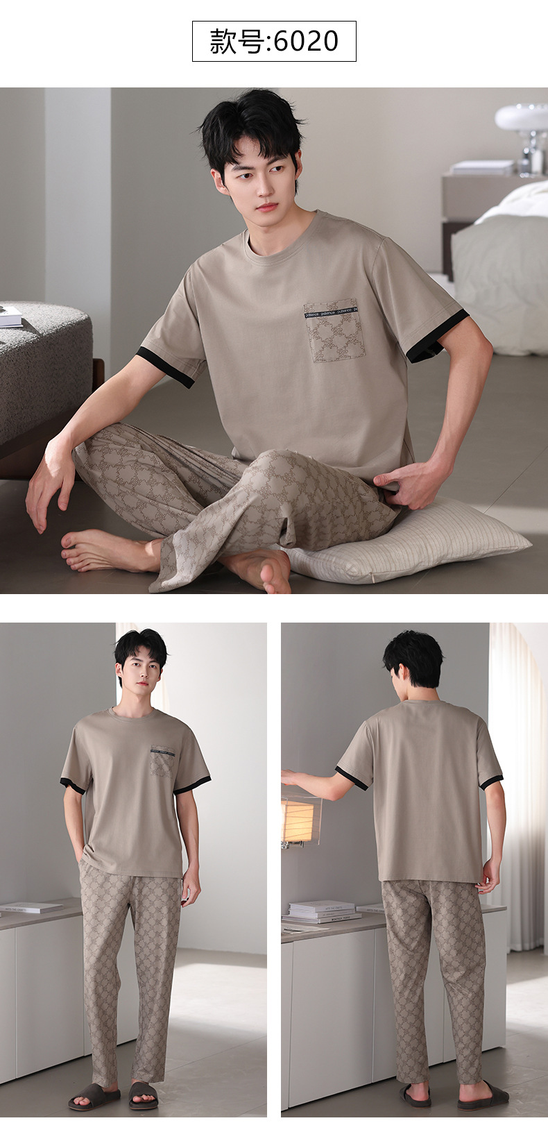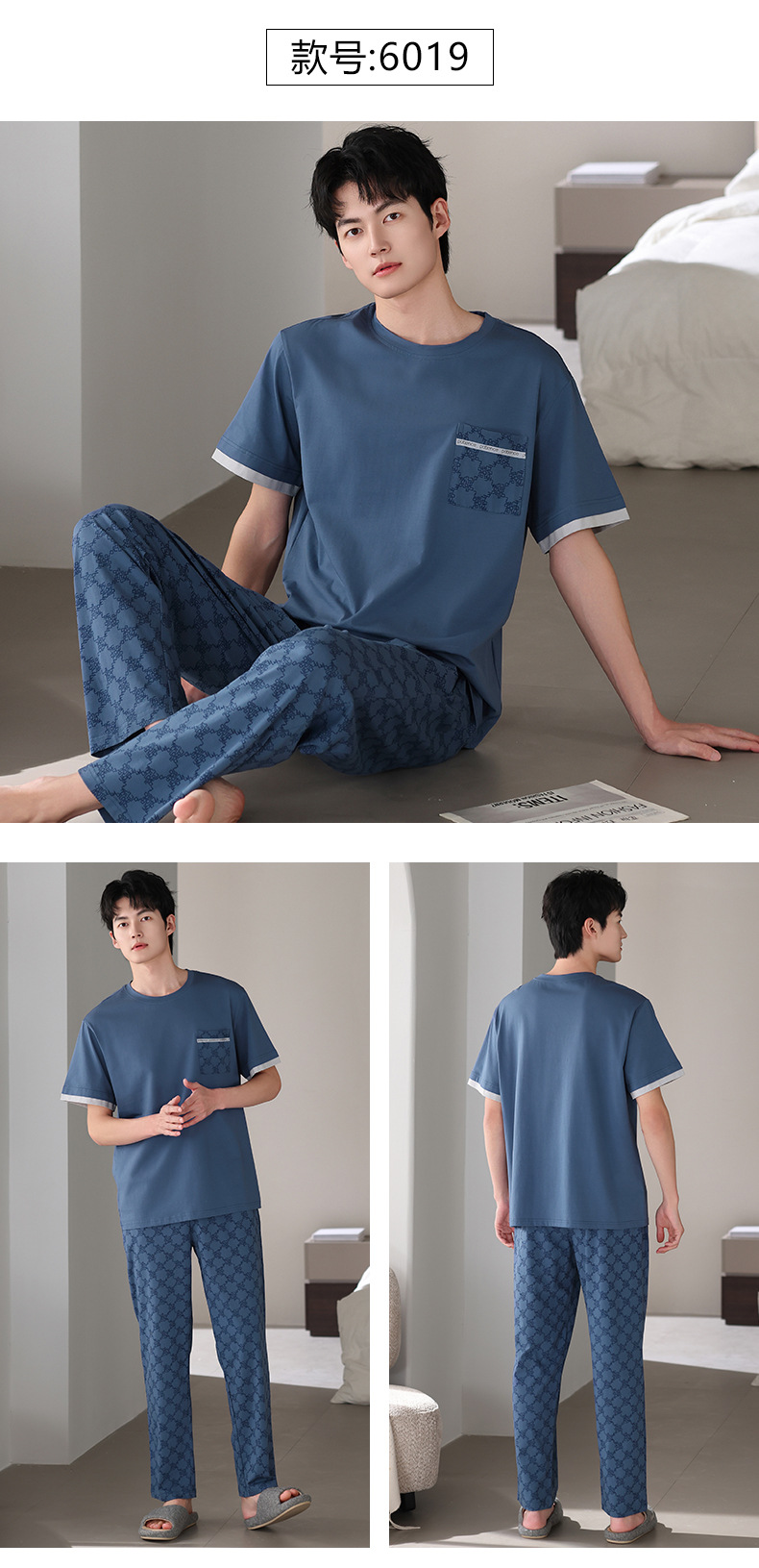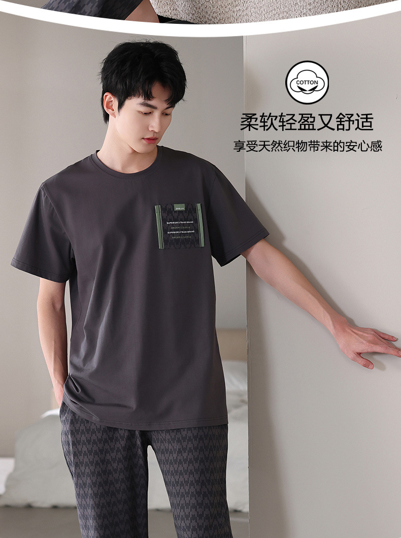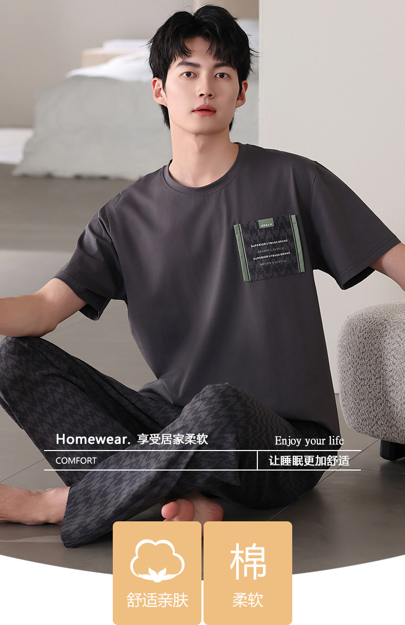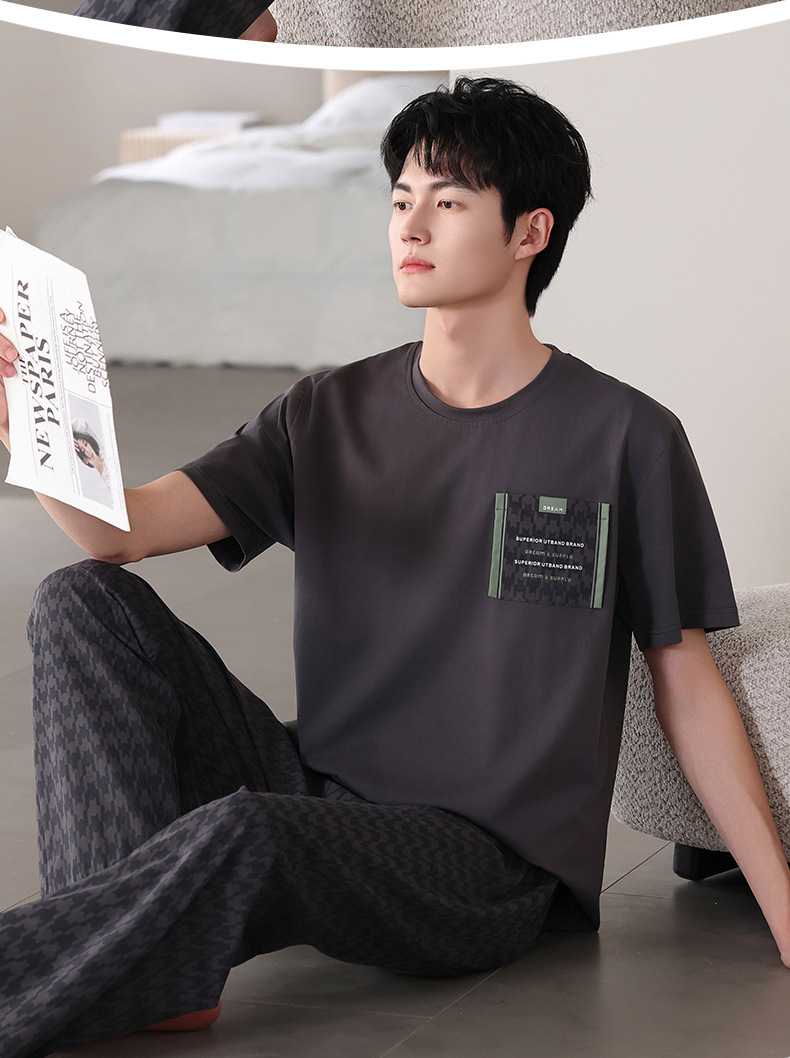 남성 잠옷 여름 순면 반팔 얇은 풀오버 대형 2025 새로운 여름 홈웨어 세트는 밖에서 착용 가능스토어 가기