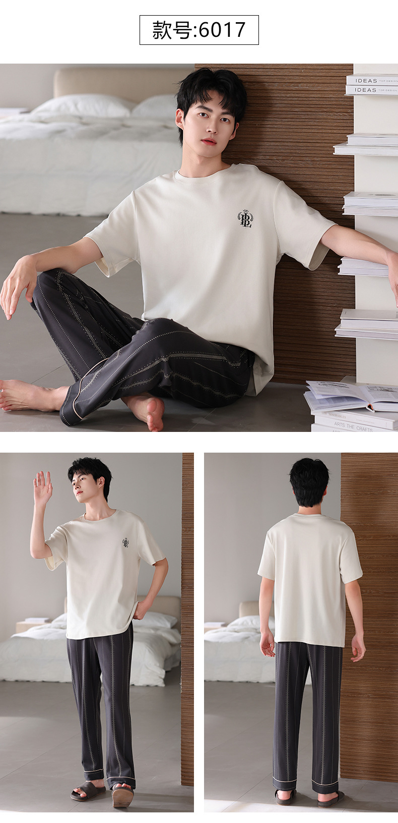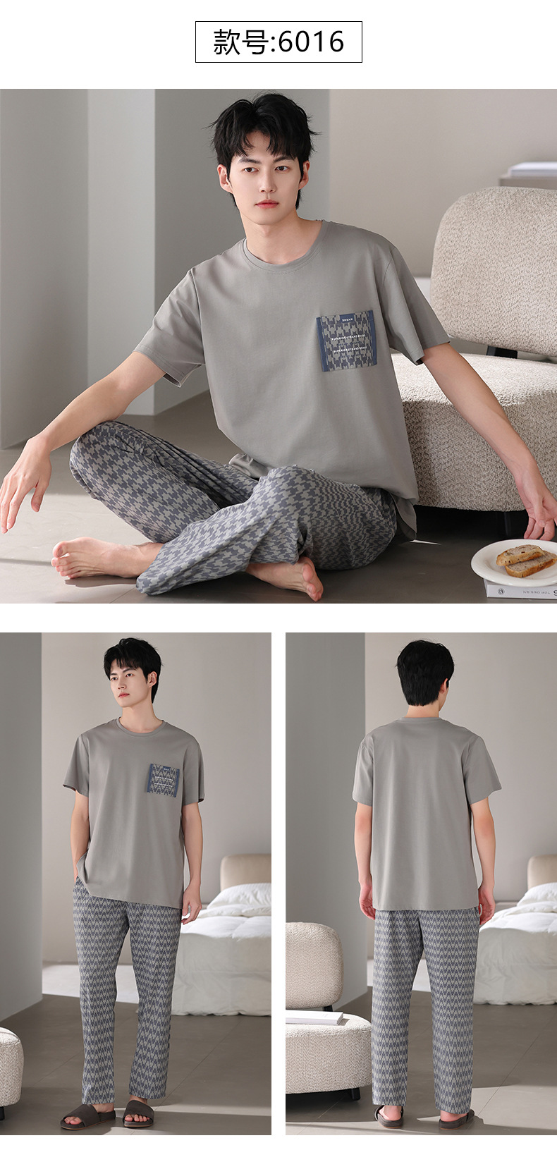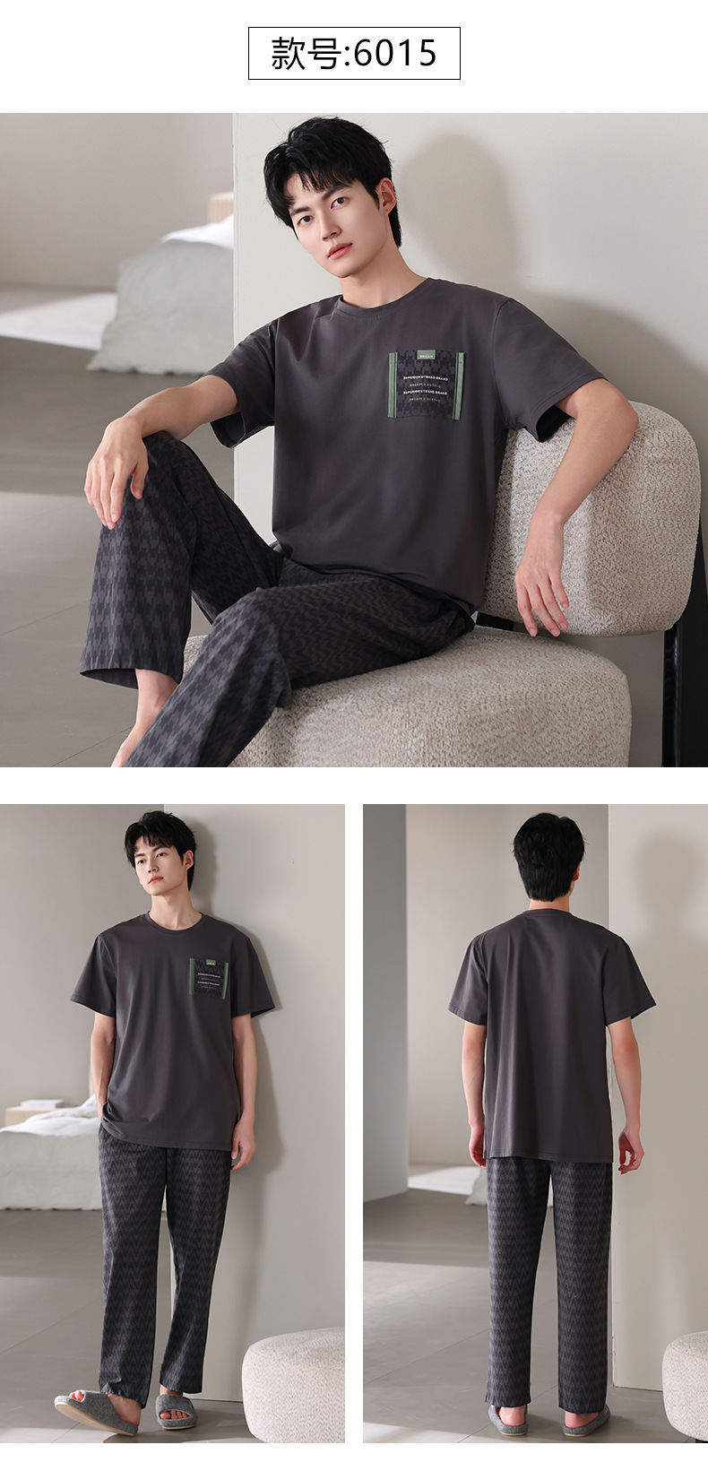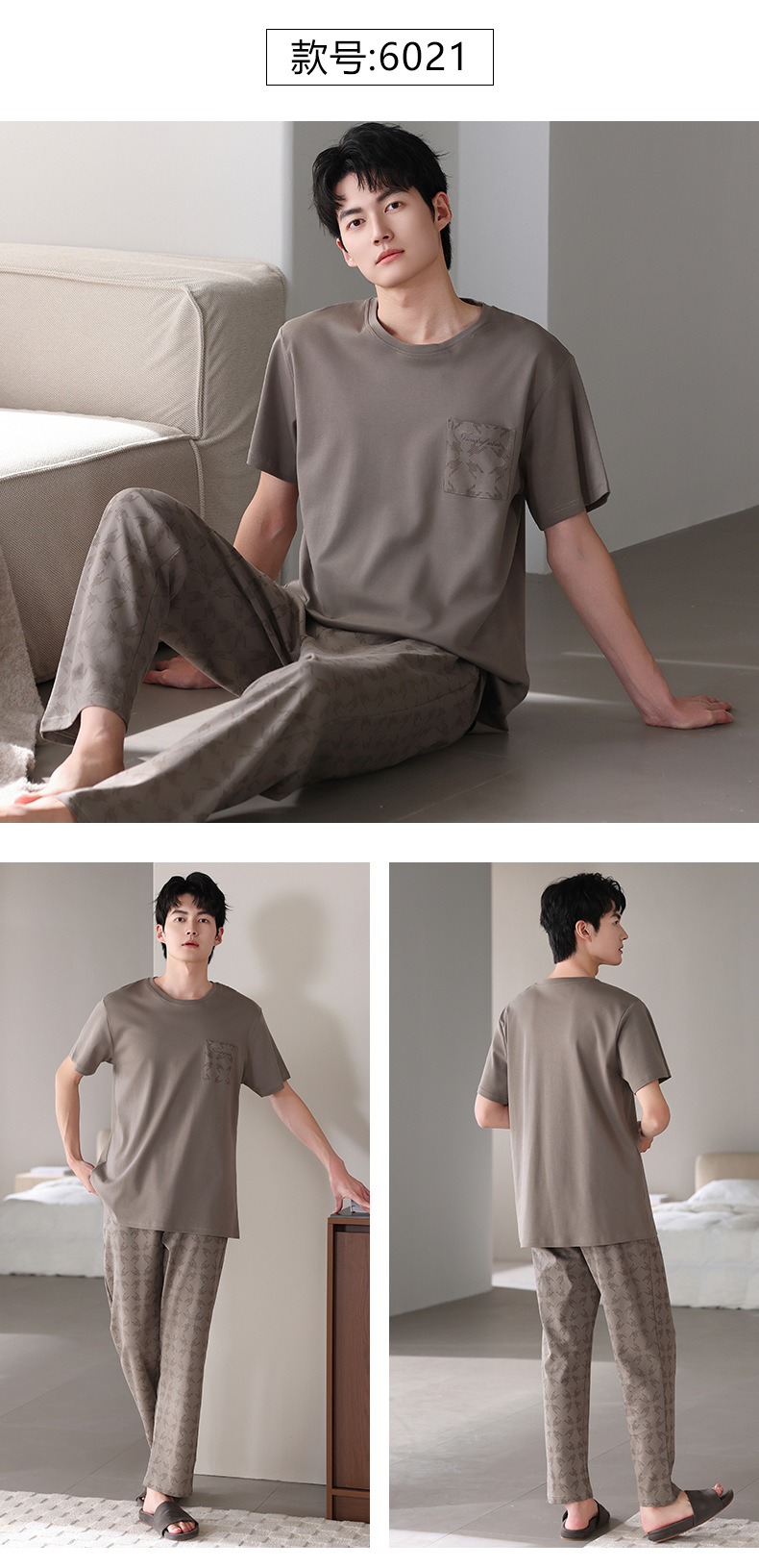 남성 잠옷 여름 순면 반팔 얇은 풀오버 대형 2025 새로운 여름 홈웨어 세트는 밖에서 착용 가능스토어 가기
