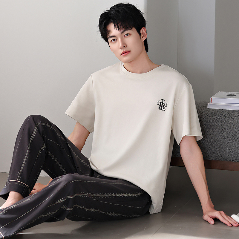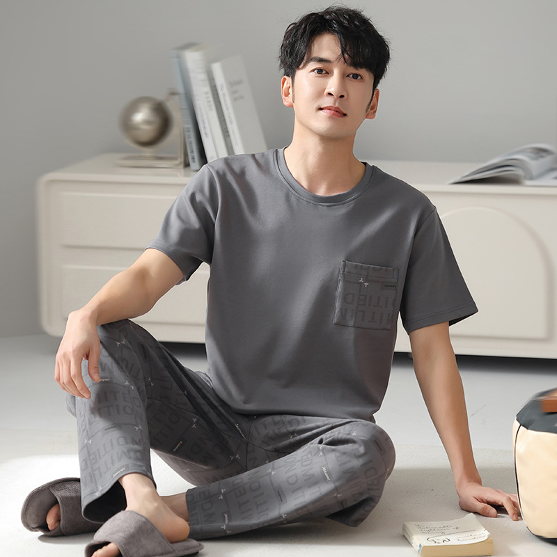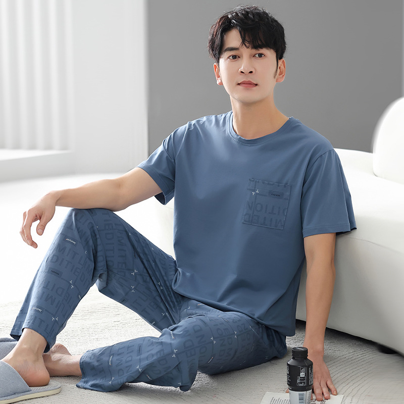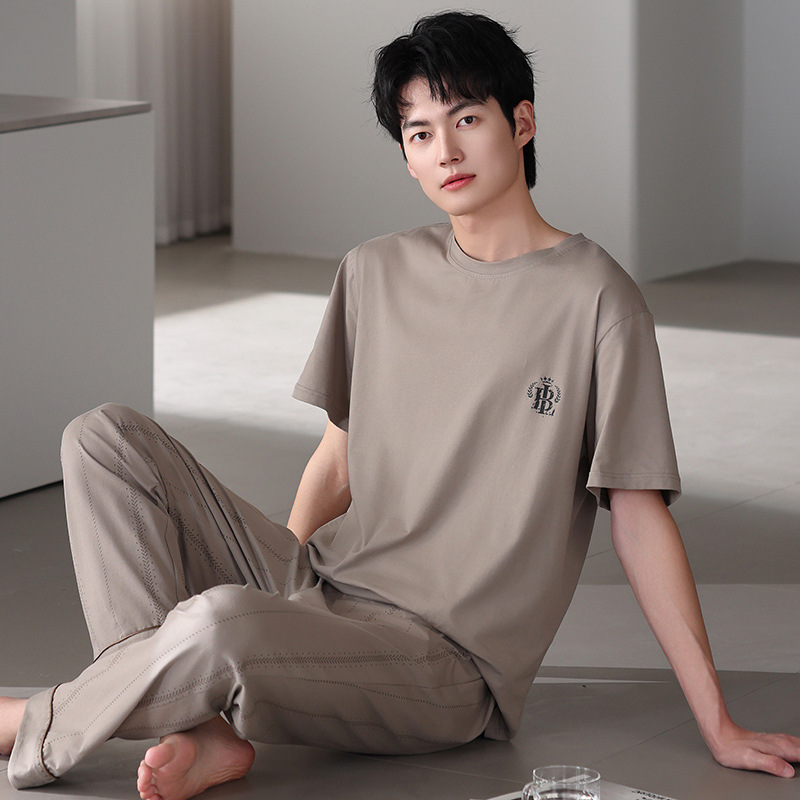남성 잠옷 여름 순면 반팔 얇은 풀오버 대형 2025 새로운 여름 홈웨어 세트는 밖에서 착용 가능