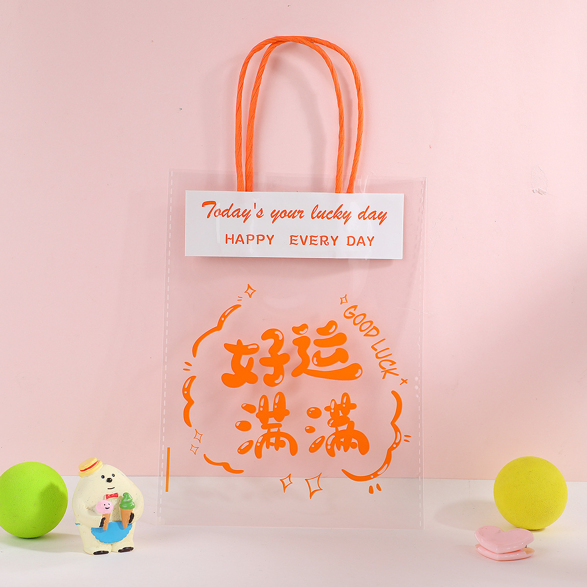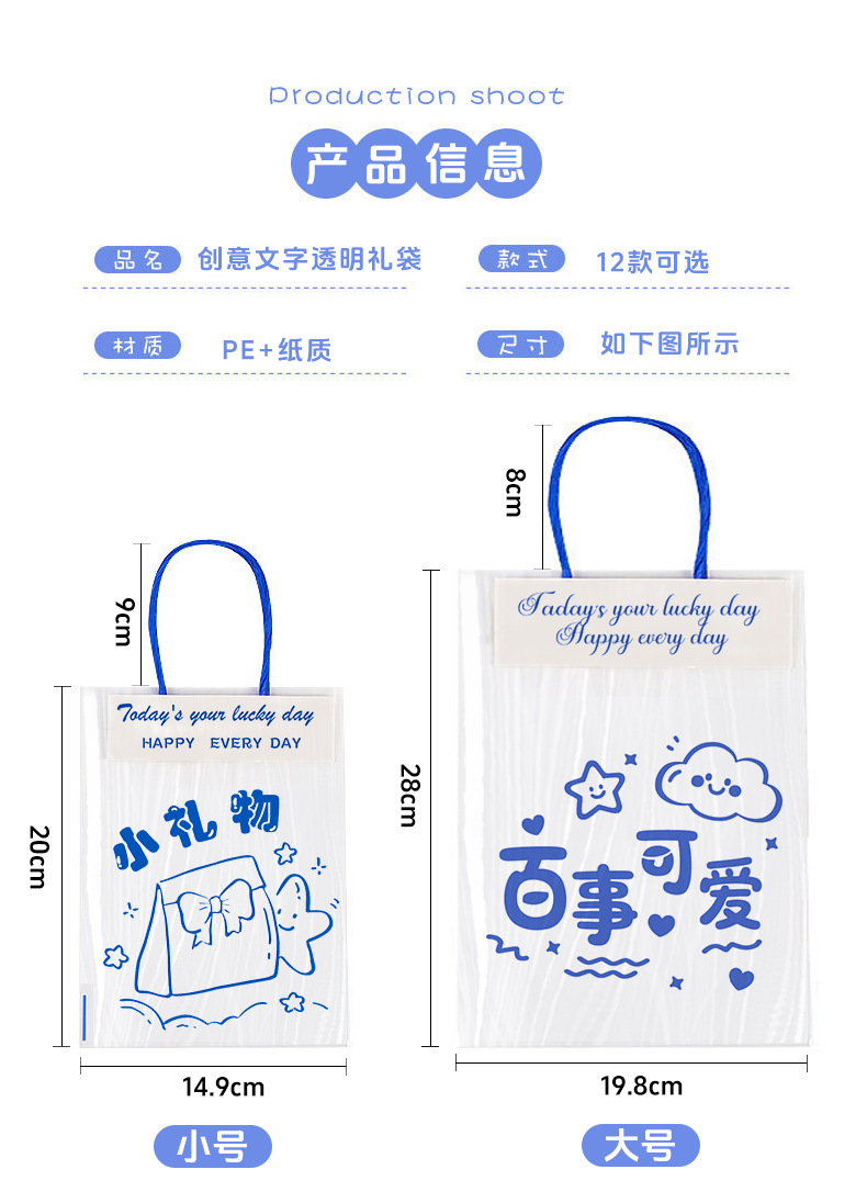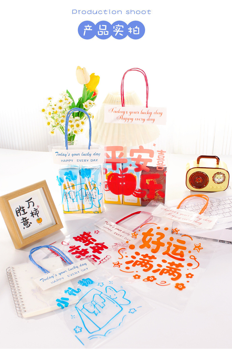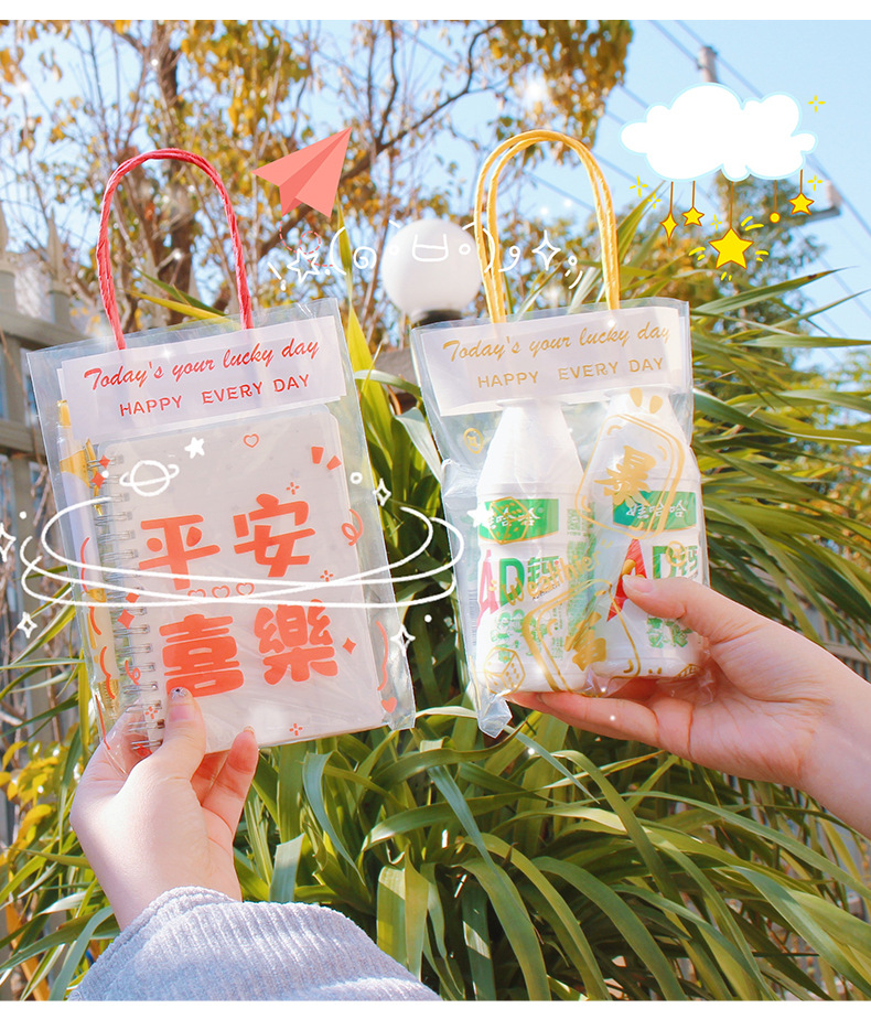 창의적인 텍스트 기념품 핸드백, 귀여운 선물 스낵 플라스틱 포장 백, 축복 투명 선물 포장 백스토어 가기