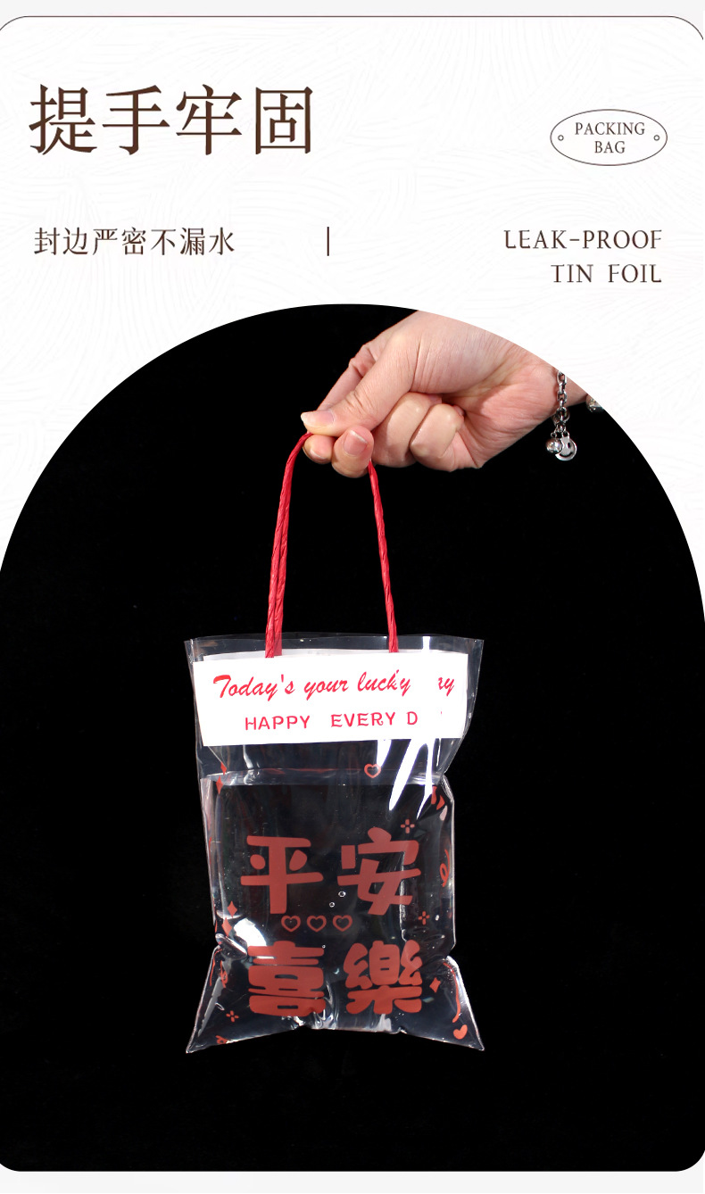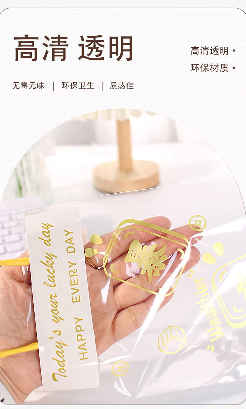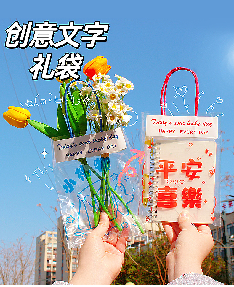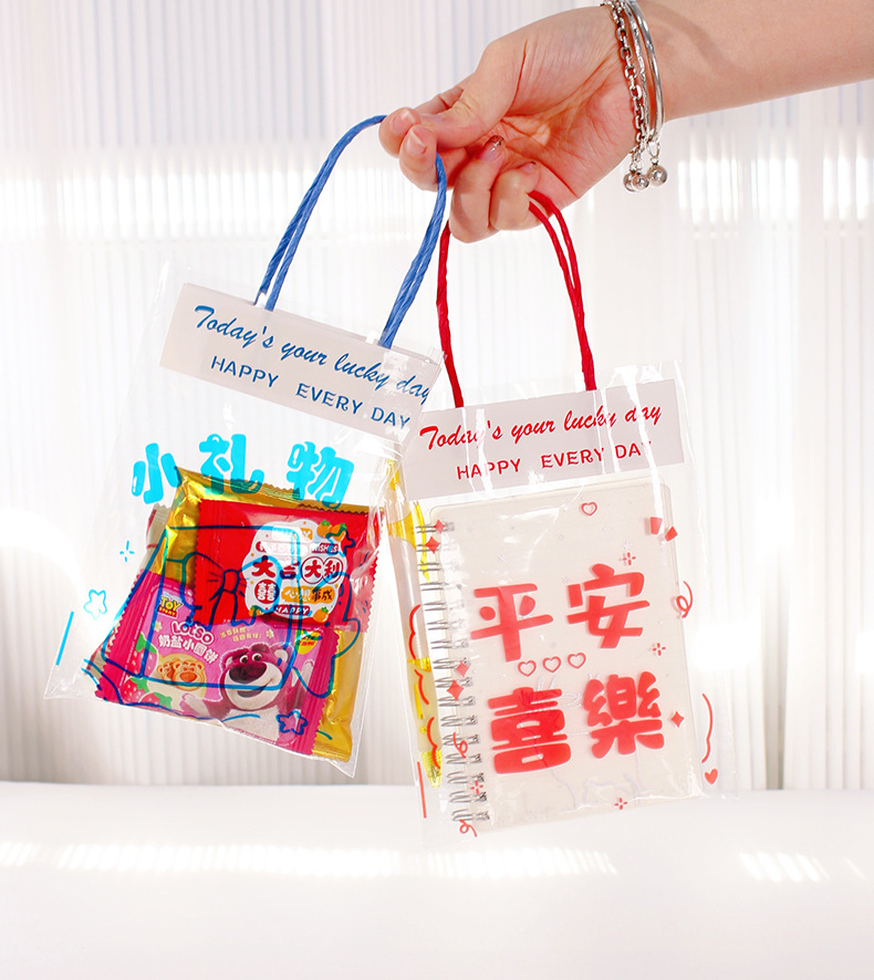 창의적인 텍스트 기념품 핸드백, 귀여운 선물 스낵 플라스틱 포장 백, 축복 투명 선물 포장 백