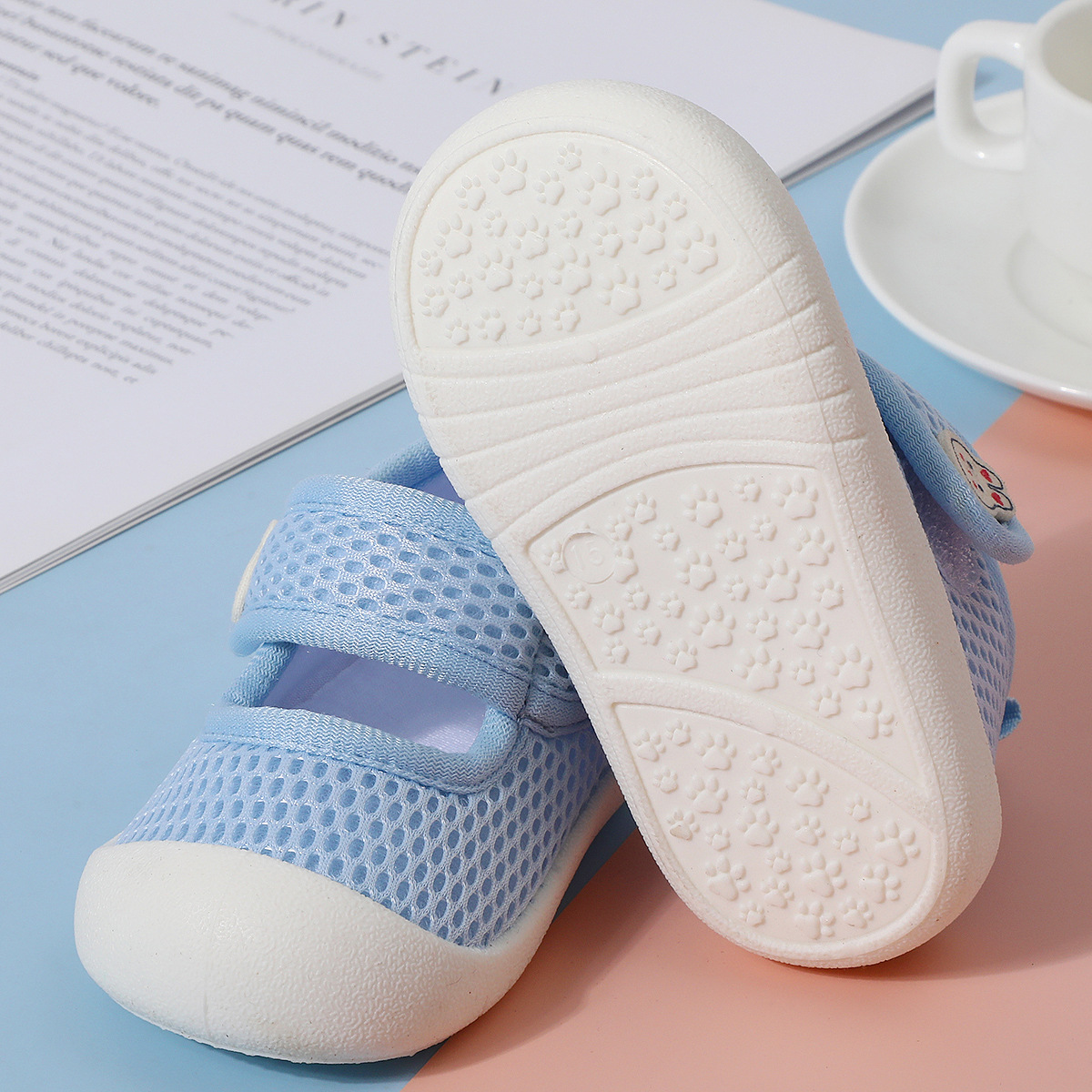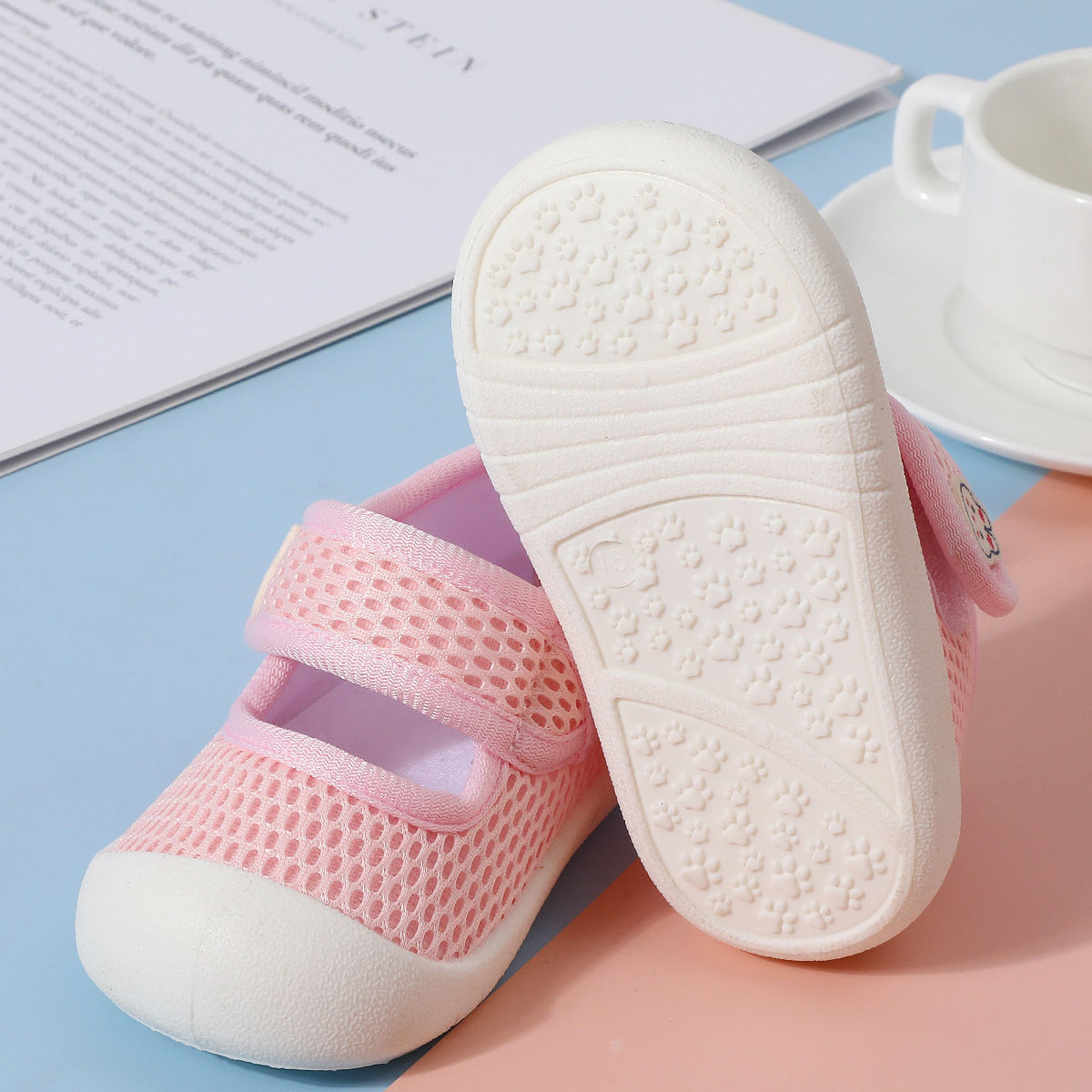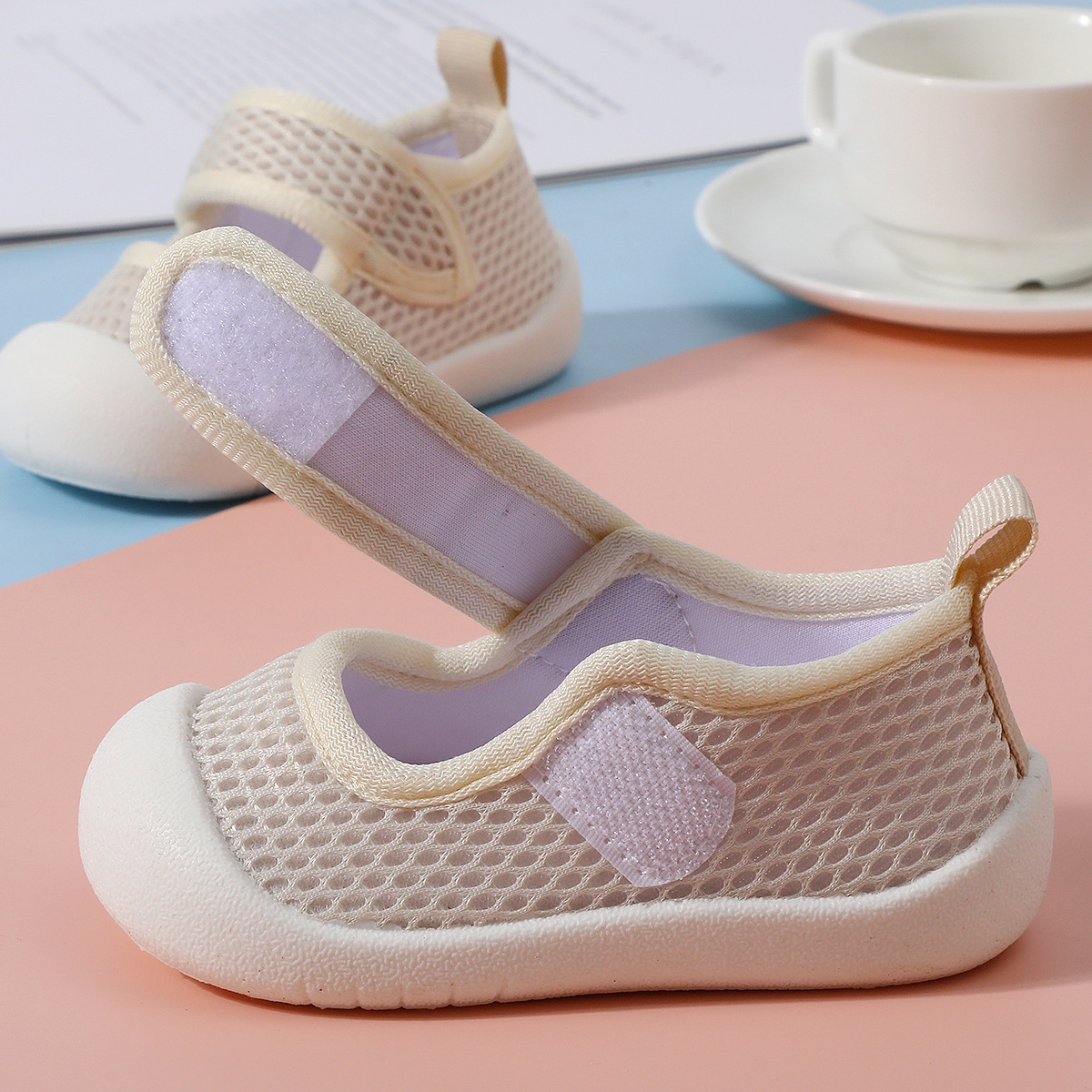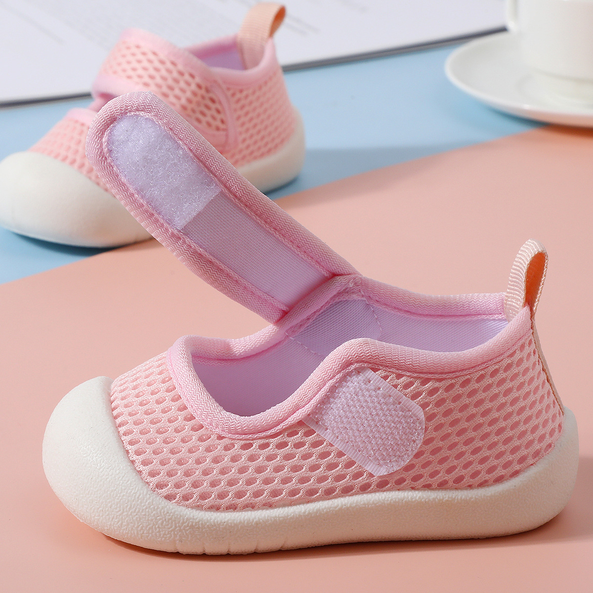 봄과 여름 새로운 얇은 유아 신발 미끄럼 방지 부드러운 바닥 아기 통기성 양말 남성과 여성을위한 슬립 온 아기 메쉬 바닥 양말