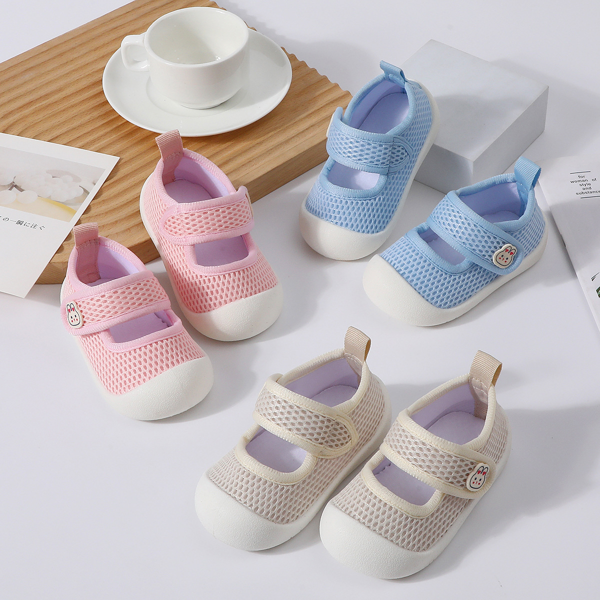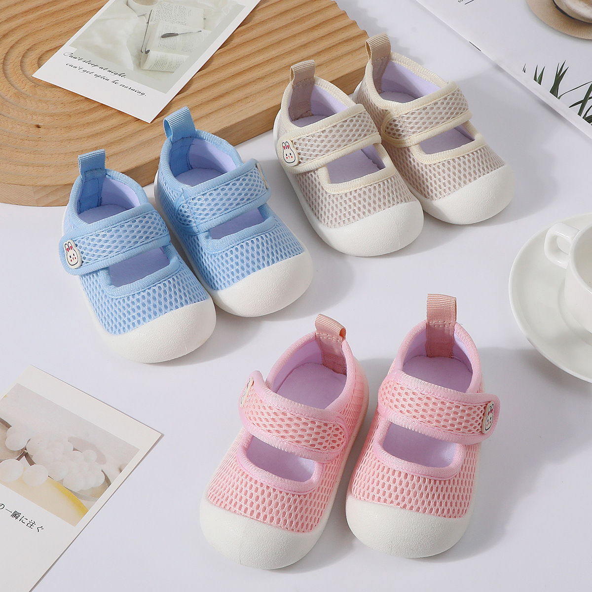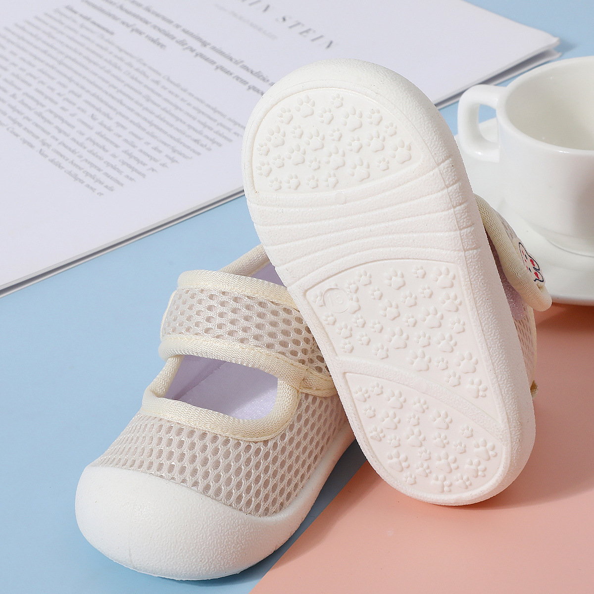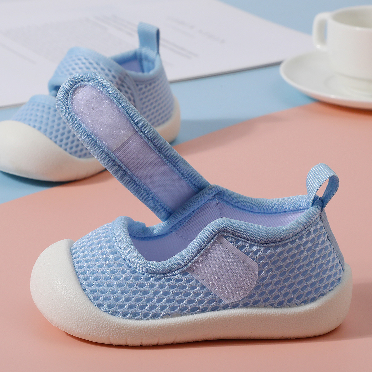 봄과 여름 새로운 얇은 유아 신발 미끄럼 방지 부드러운 바닥 아기 통기성 양말 남성과 여성을위한 슬립 온 아기 메쉬 바닥 양말