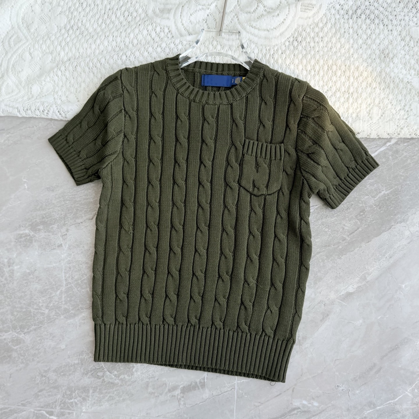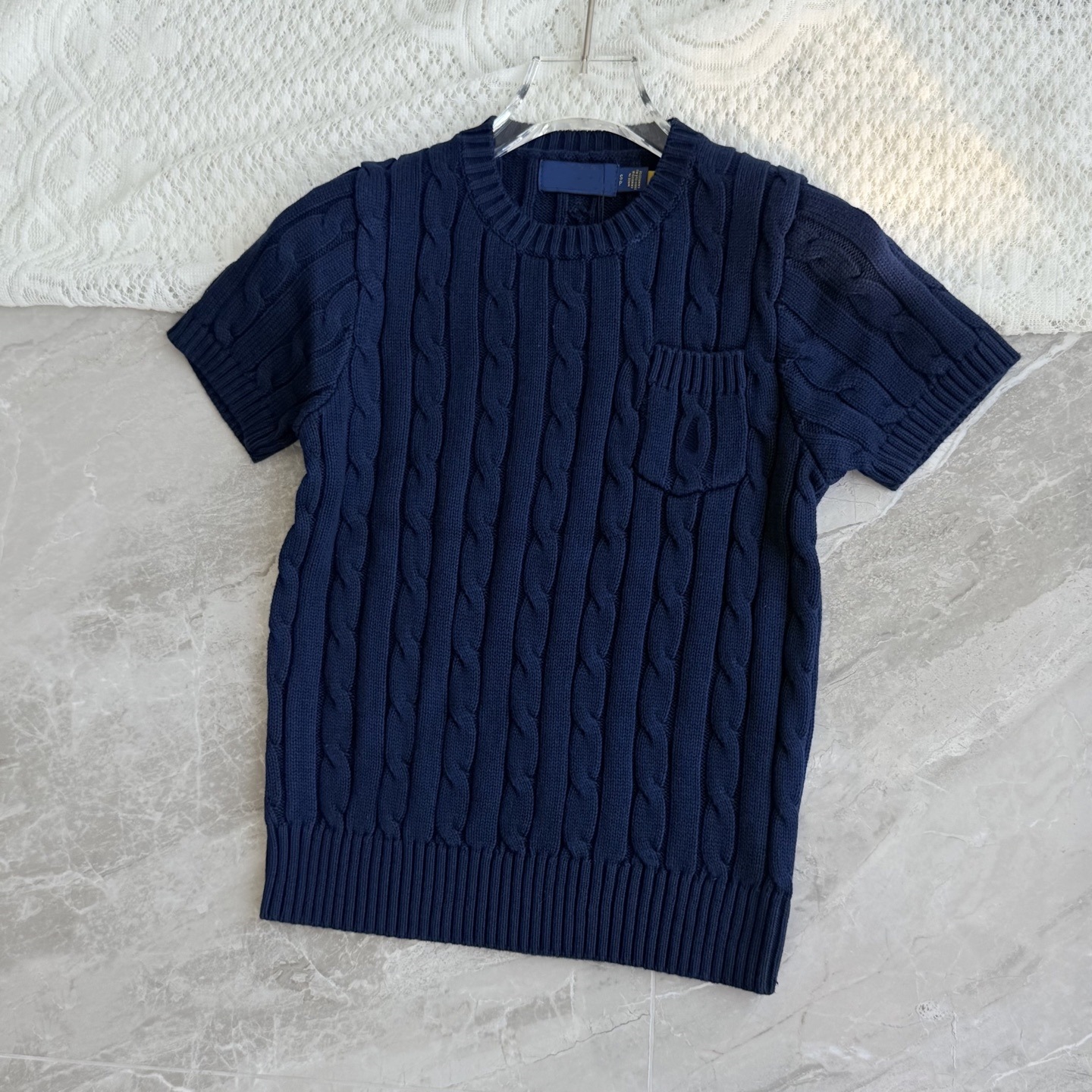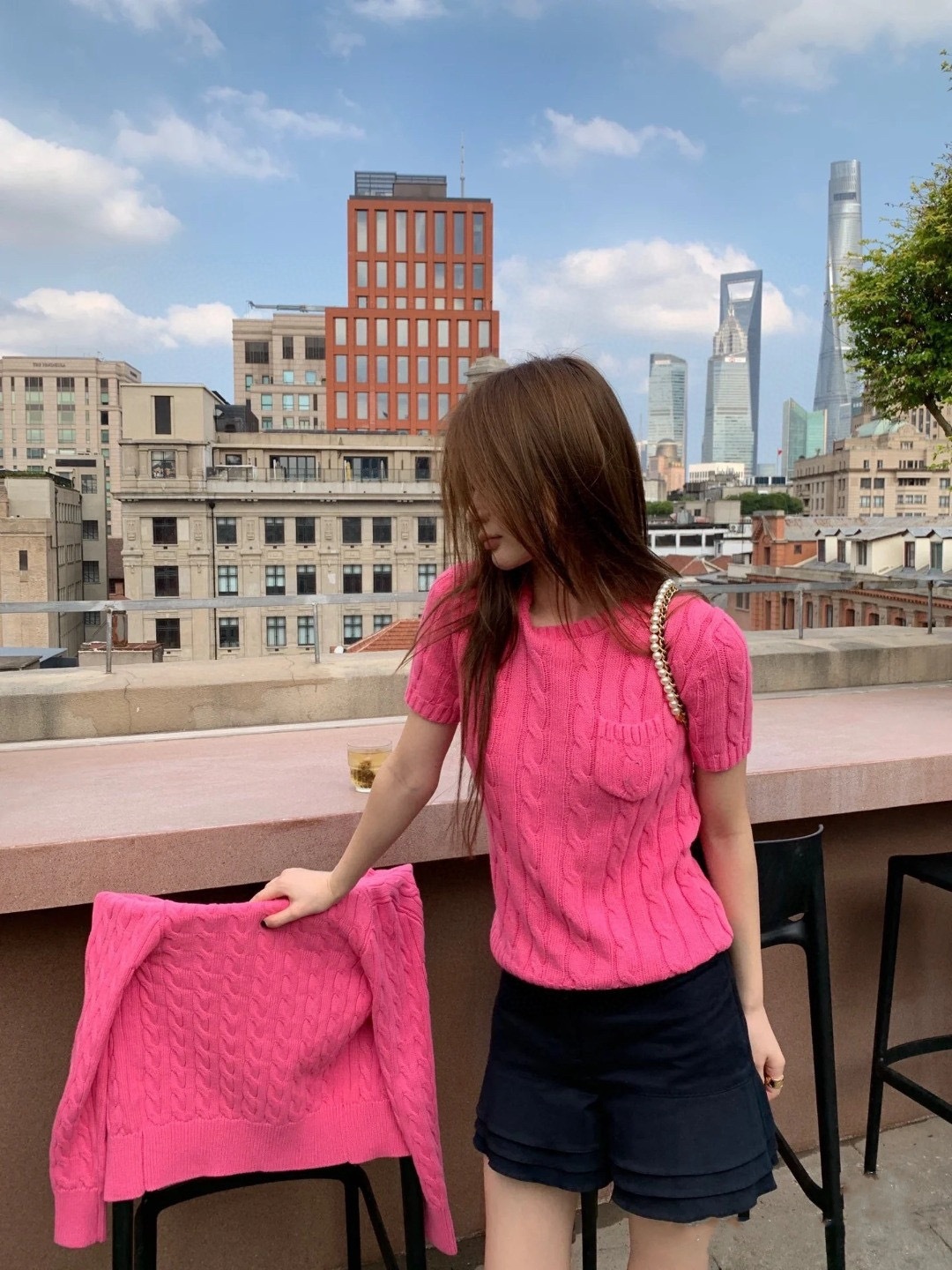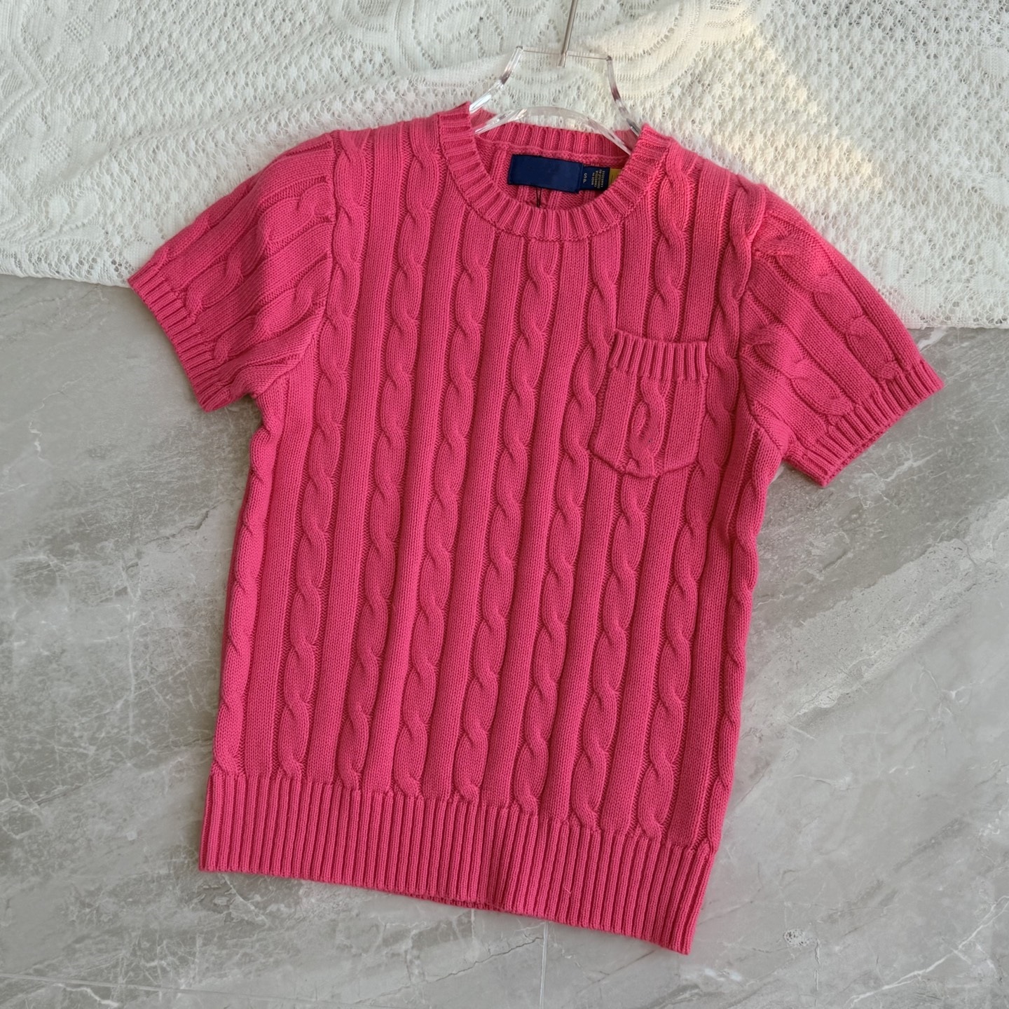 고품질/스캔코드 가능 라프 라운드넥 포켓 소마자수 니트 반팔 트위스트 상의 여성용스토어 가기